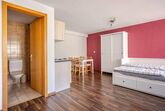 Das 25 qm gorsse Studio besitzt über eine Vollwertige Küche und einem Bad.