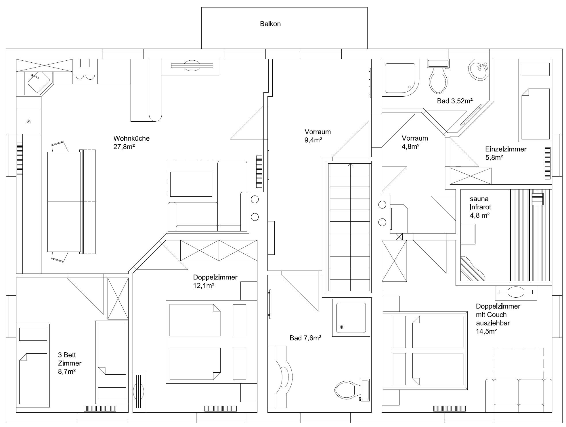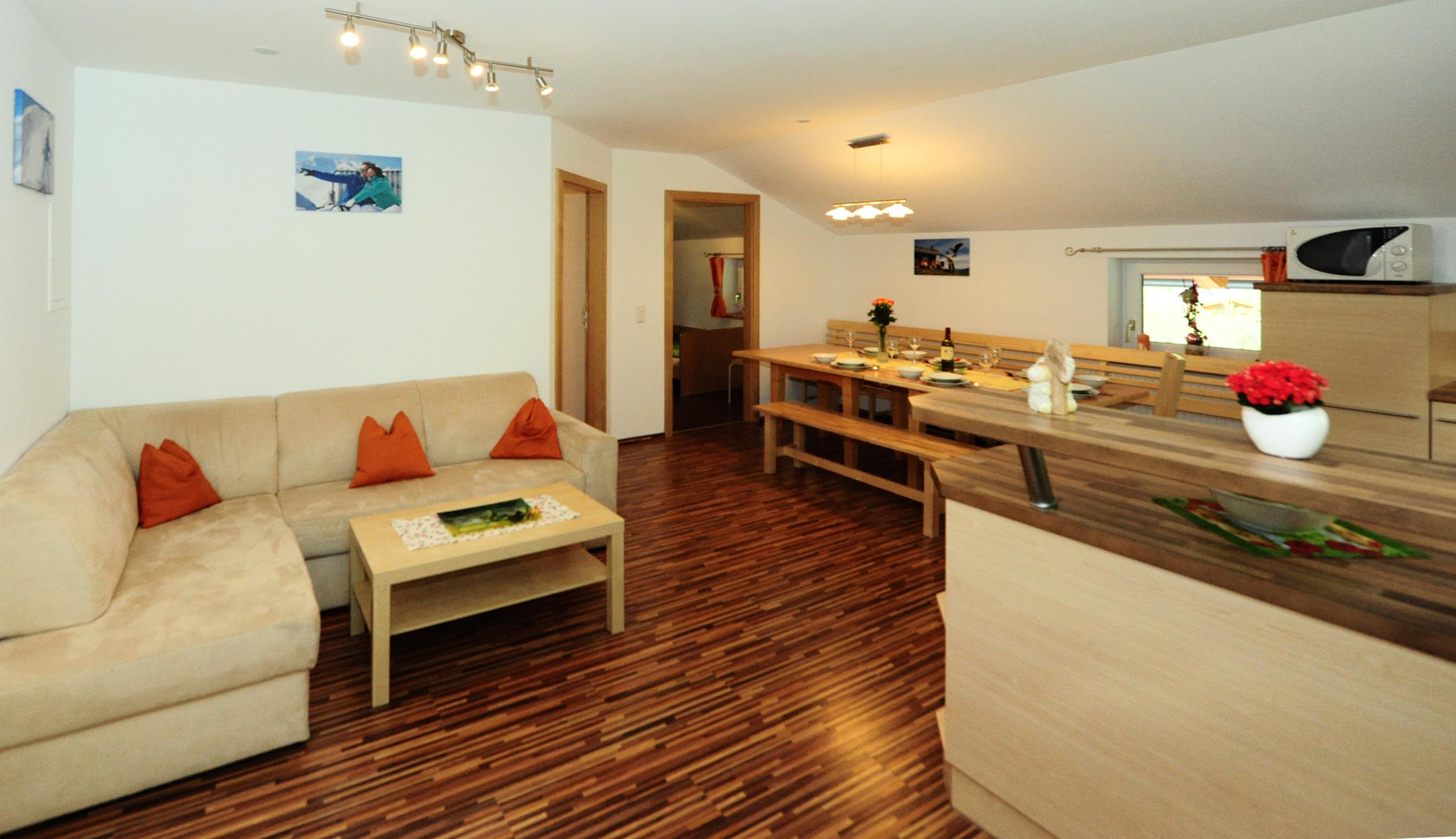 Unser neu errichtetes Appartement bietet Platz für bis zu 9 Personen und besteht aus 4 Schlafräumen, einer Wohnküche und 2 Badezimmern mit Dusche und WC.
