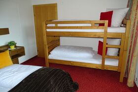 - Schlafzimmer mit Doppelbett und Etagenbett