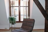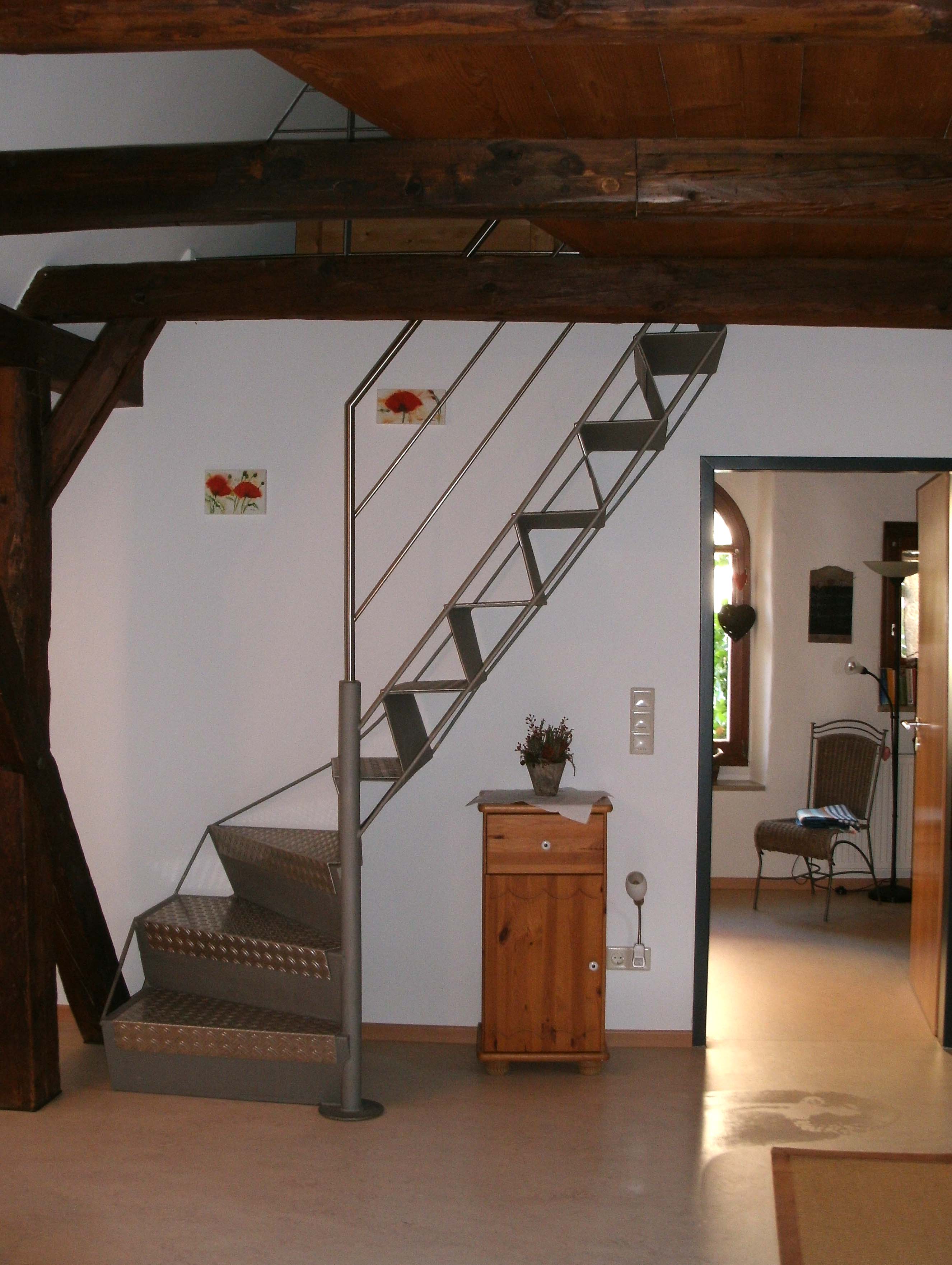 Es ist eine helle Galeriewohnung...mit großen Fenstern.