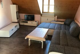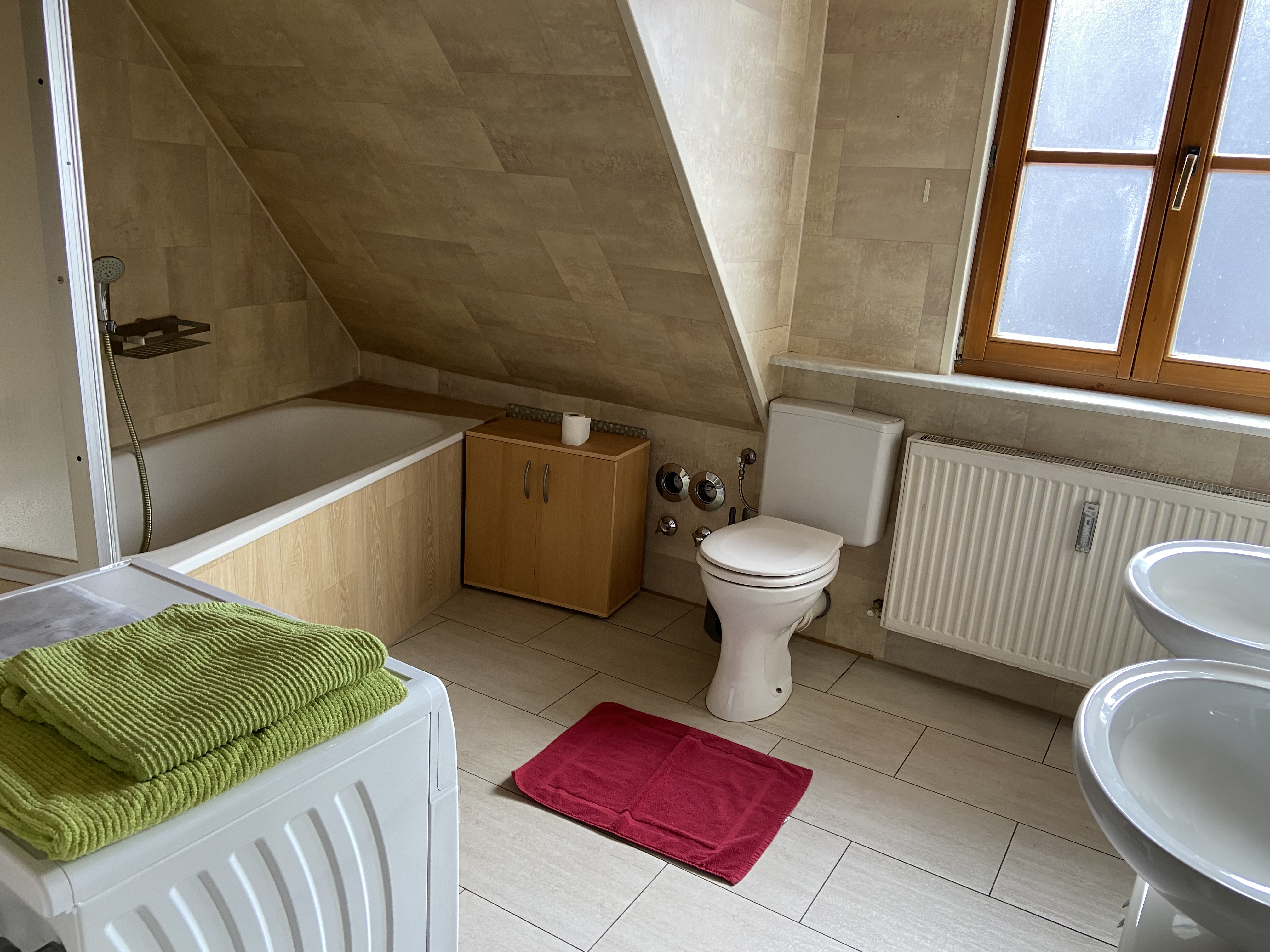 Diese charmante 80 m² große Dachgeschosswohnung bietet eine einladende Atmosphäre und viel Platz für einen komfortablen Aufenthalt. Sie verfügt über zwei gemütliche Schlafzimmer – eines mit einem Einzelbett und das andere mit zwei Einzelbetten – ideal für Familien, Freunde oder Kollegen. Das großzügige Wohnzimmer lädt zum Entspannen ein, während die voll ausgestattete Küche alles bietet, was man für die Zubereitung eigener Mahlzeiten benötigt. Das moderne Badezimmer überzeugt mit einer Dusche und einer Badewanne, sodass sowohl schnelle Erfrischungen als auch entspannende Bäder möglich sind. Ein perfektes Zuhause auf Zeit mit gemütlichem Flair!