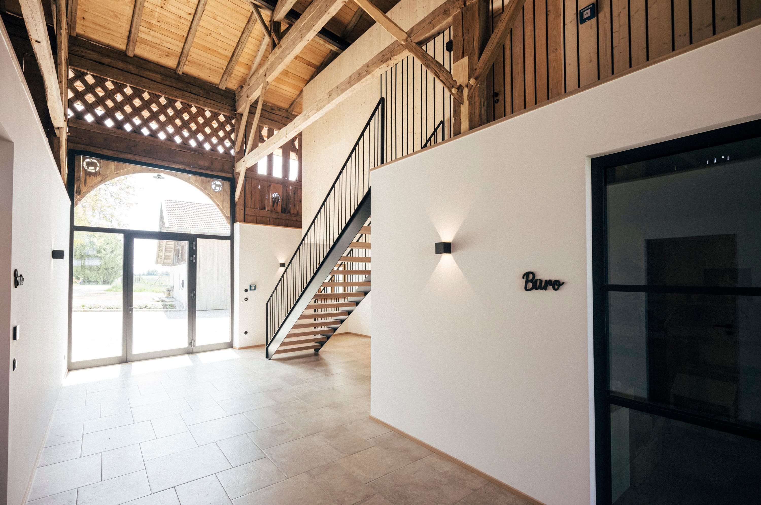 Wir haben ein ehemaliges Stallgebäude in zwei großzügige Haushälften mit Platz für je 10 Personen verwandelt. Im historischen Bundwerkstadel haben wir zwei moderne, gemütliche Wohnungen für je 4-5 personen untergebracht. Alle Wohnungen sind in Holzbauweise im Passivhausstandard in ökologischer Bauweise errichtet.
