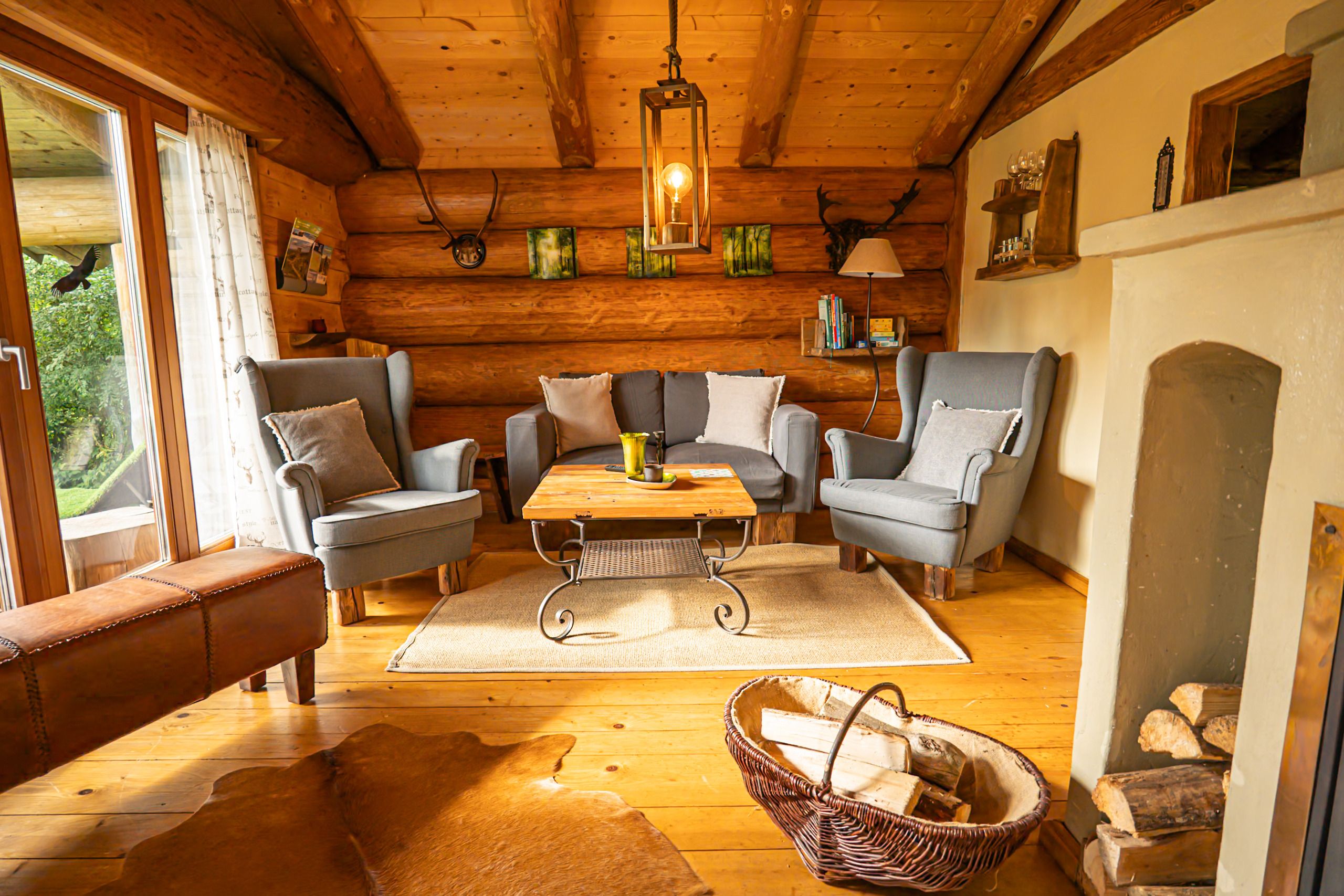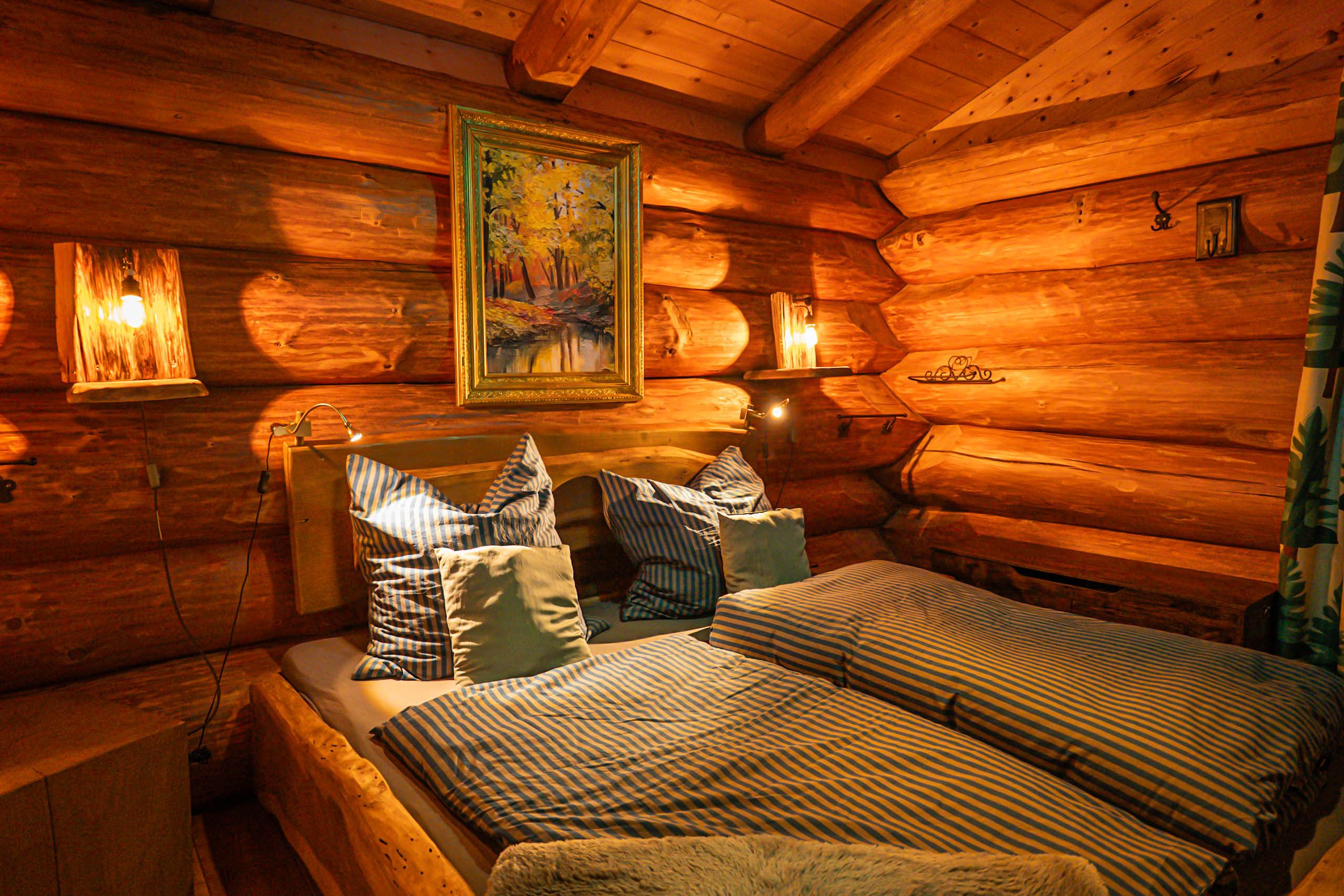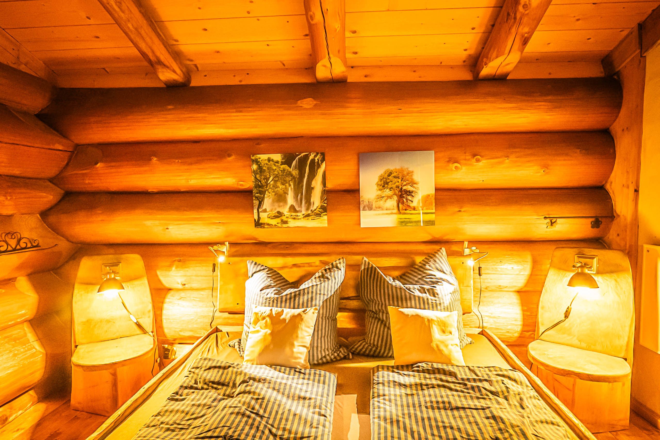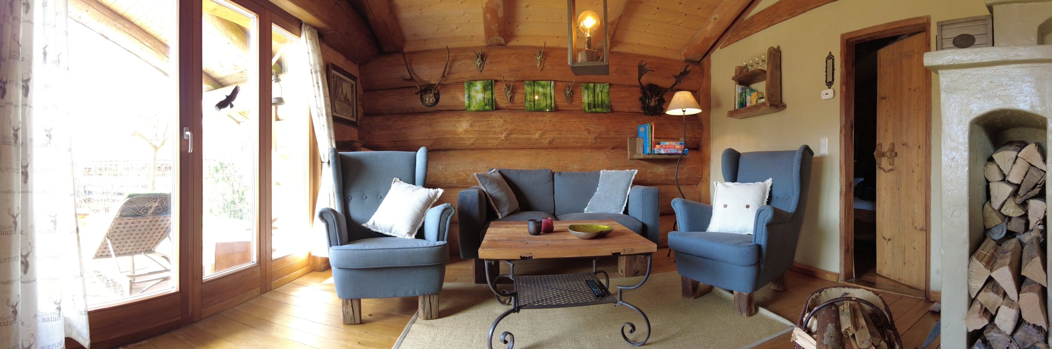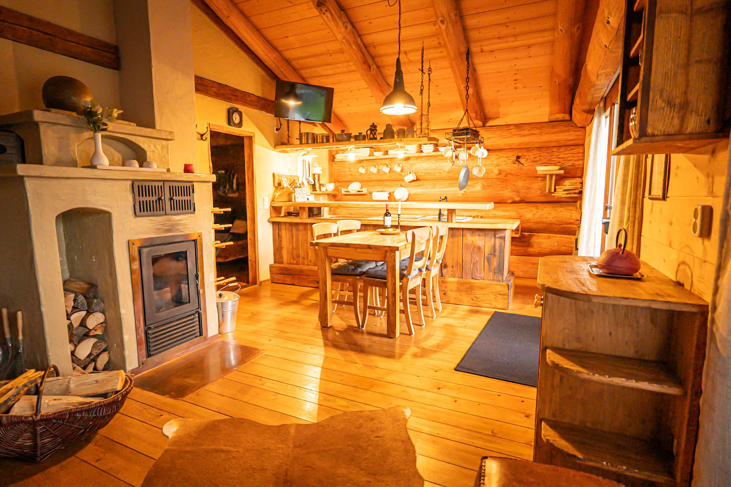 Blockhaus-Atmosphäre mit viel Holz, warmem Ambiente und Wohlfühlcharakter