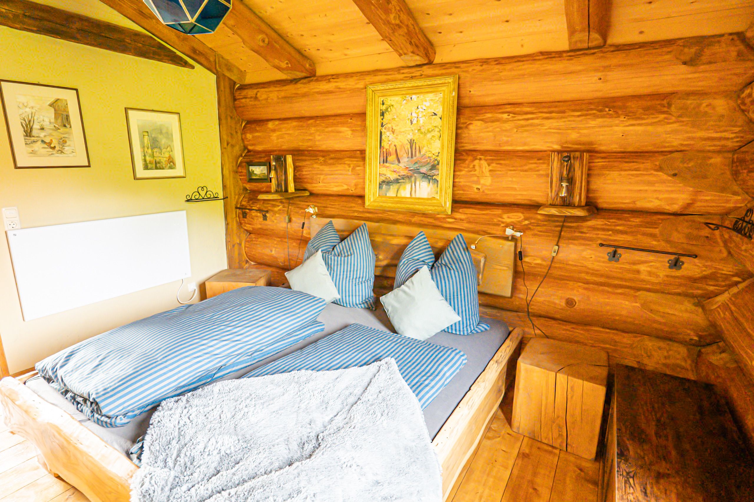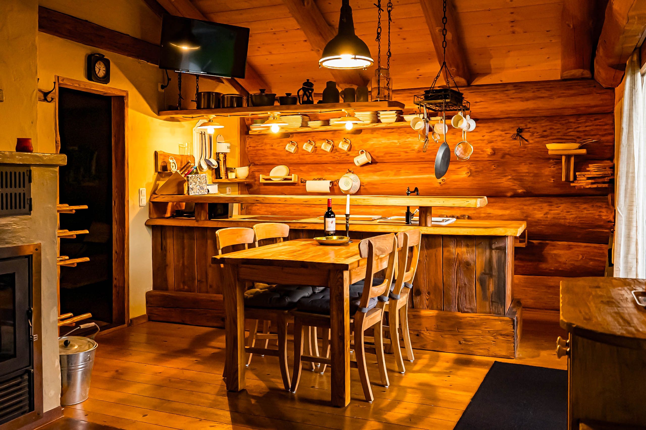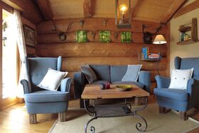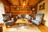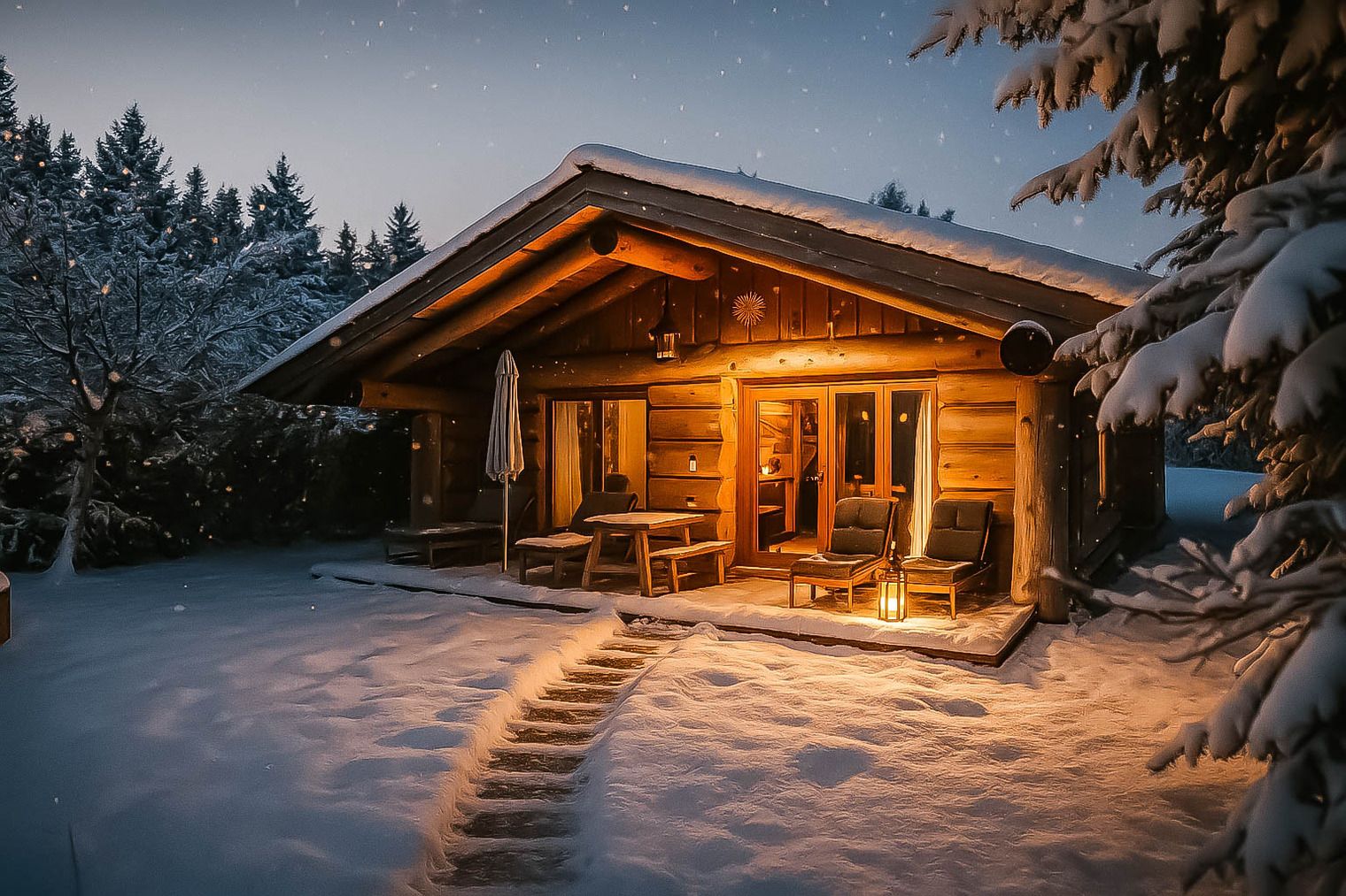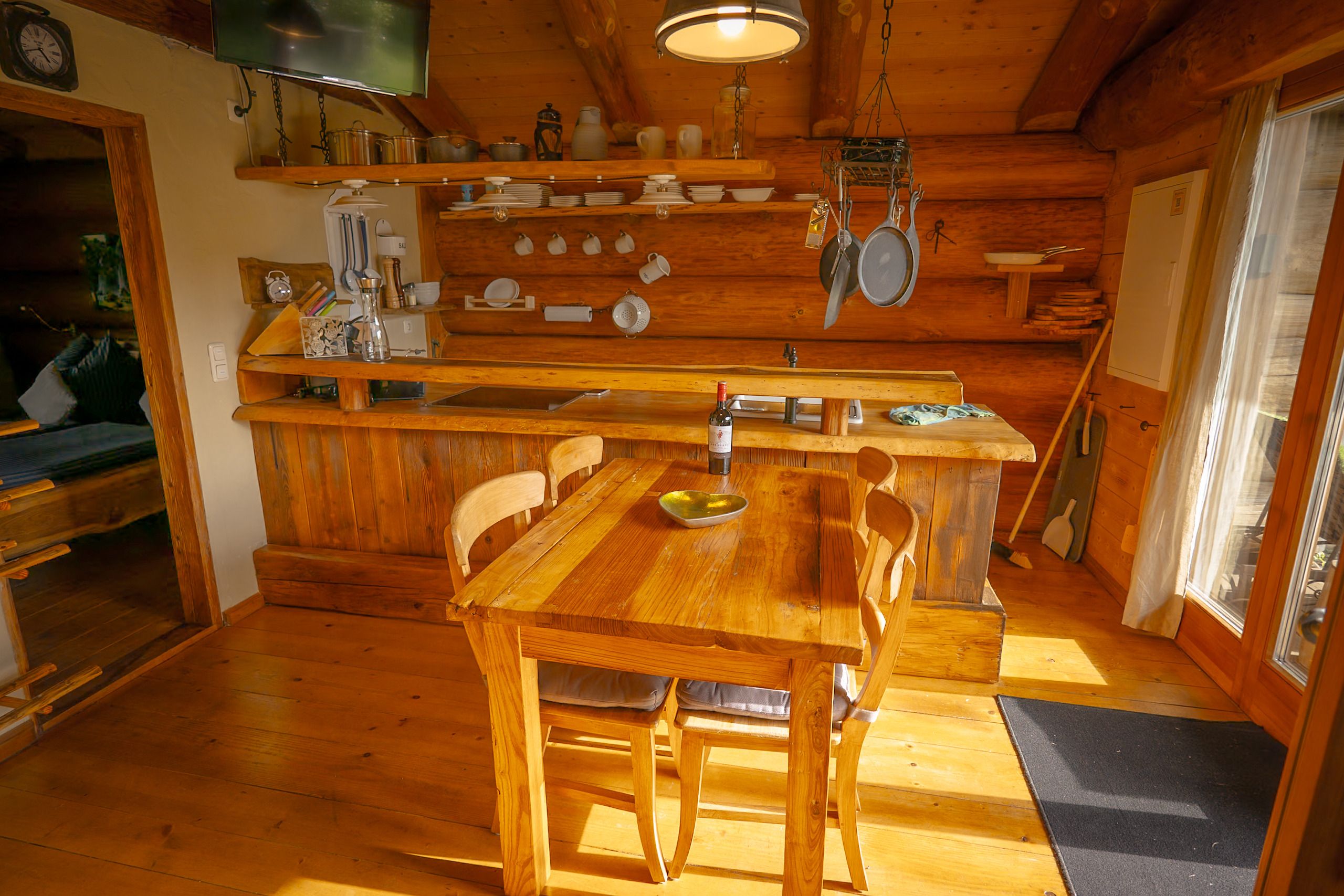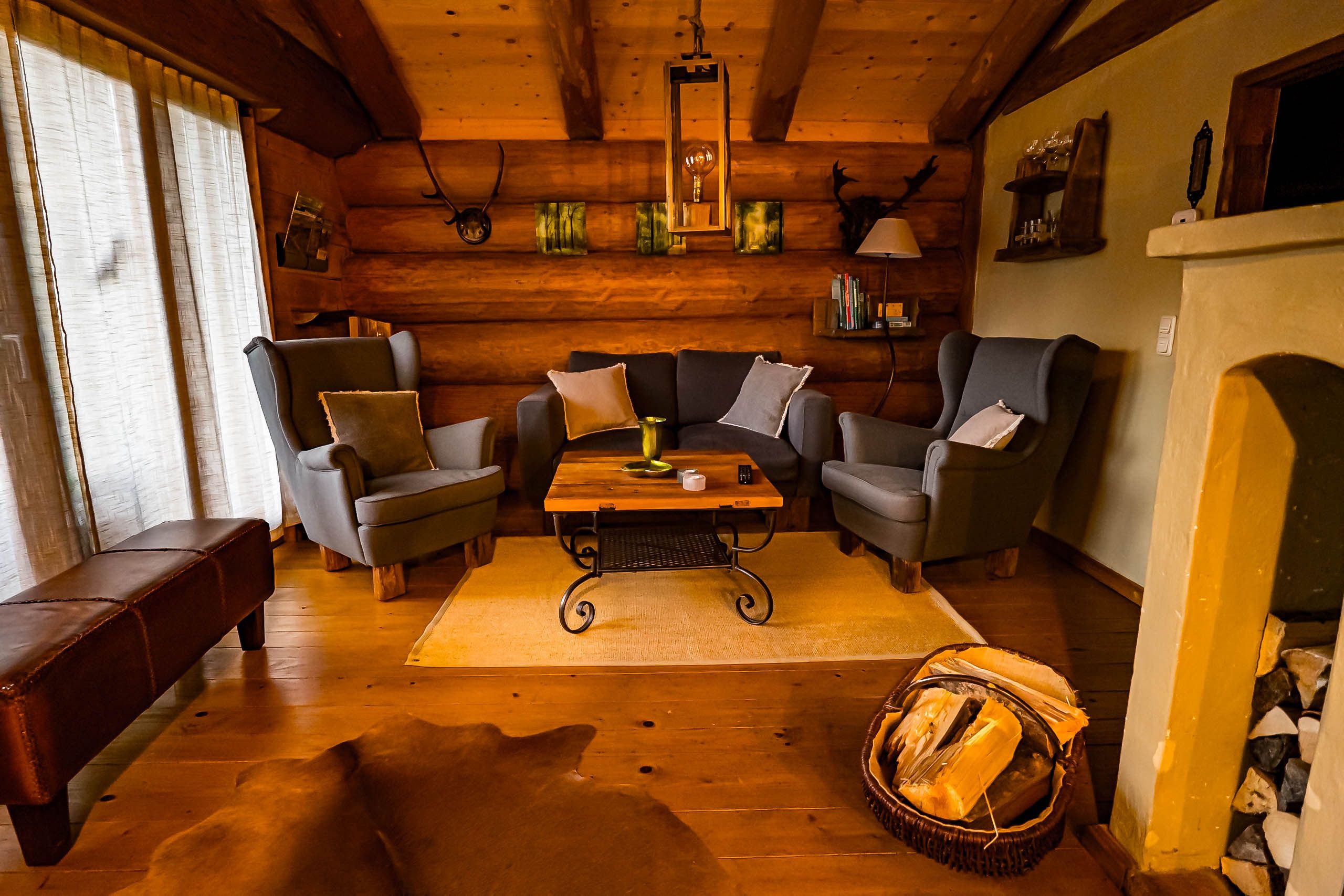 Blockhaus-Atmosphäre mit viel Holz, warmem Ambiente und Wohlfühlcharakter