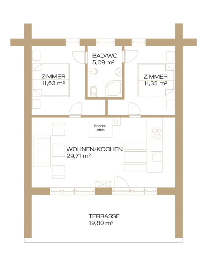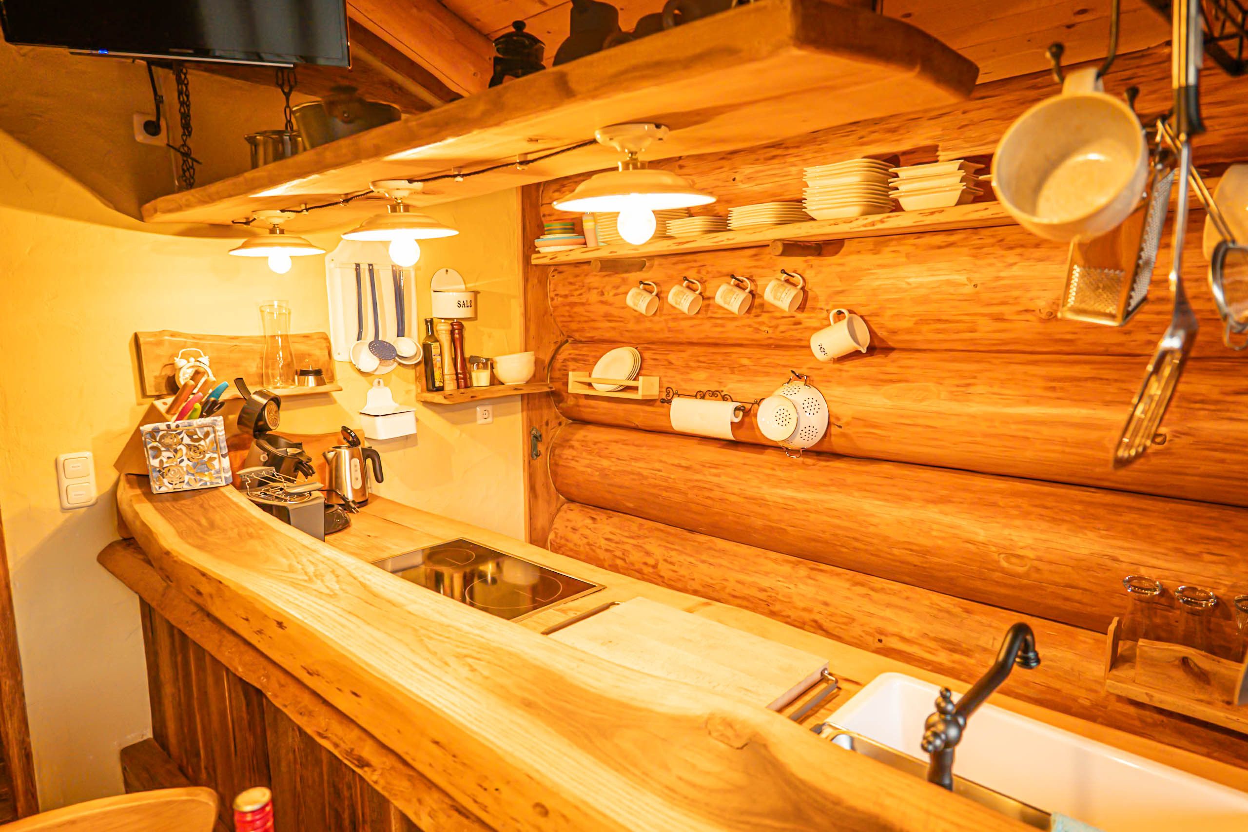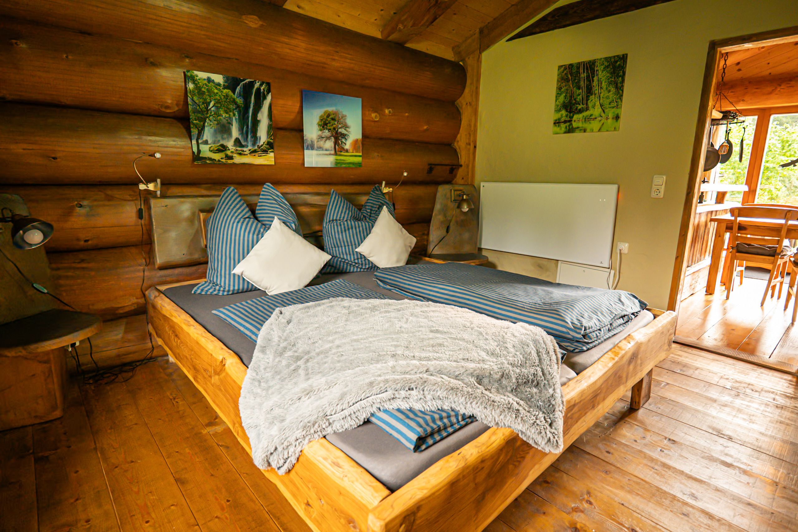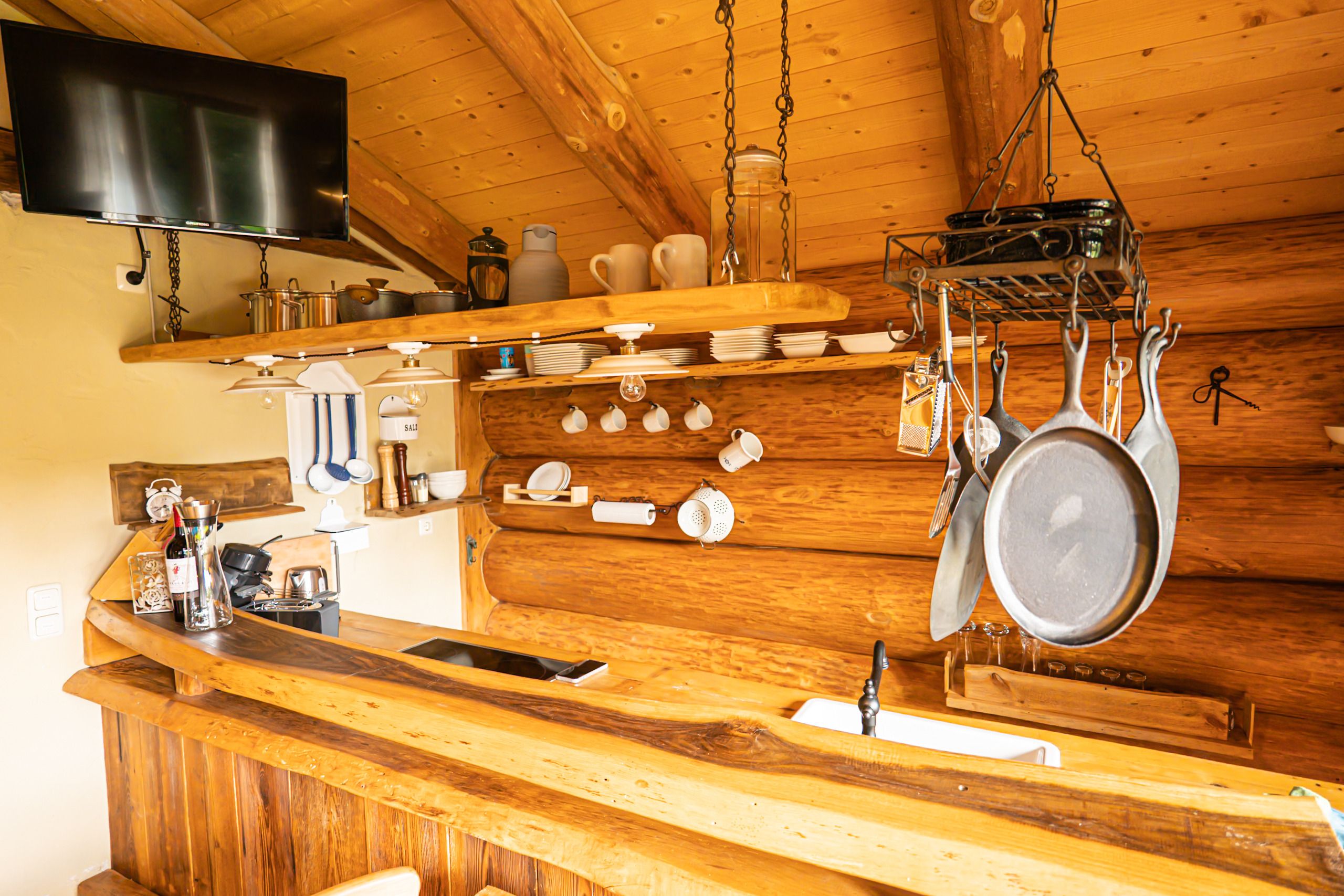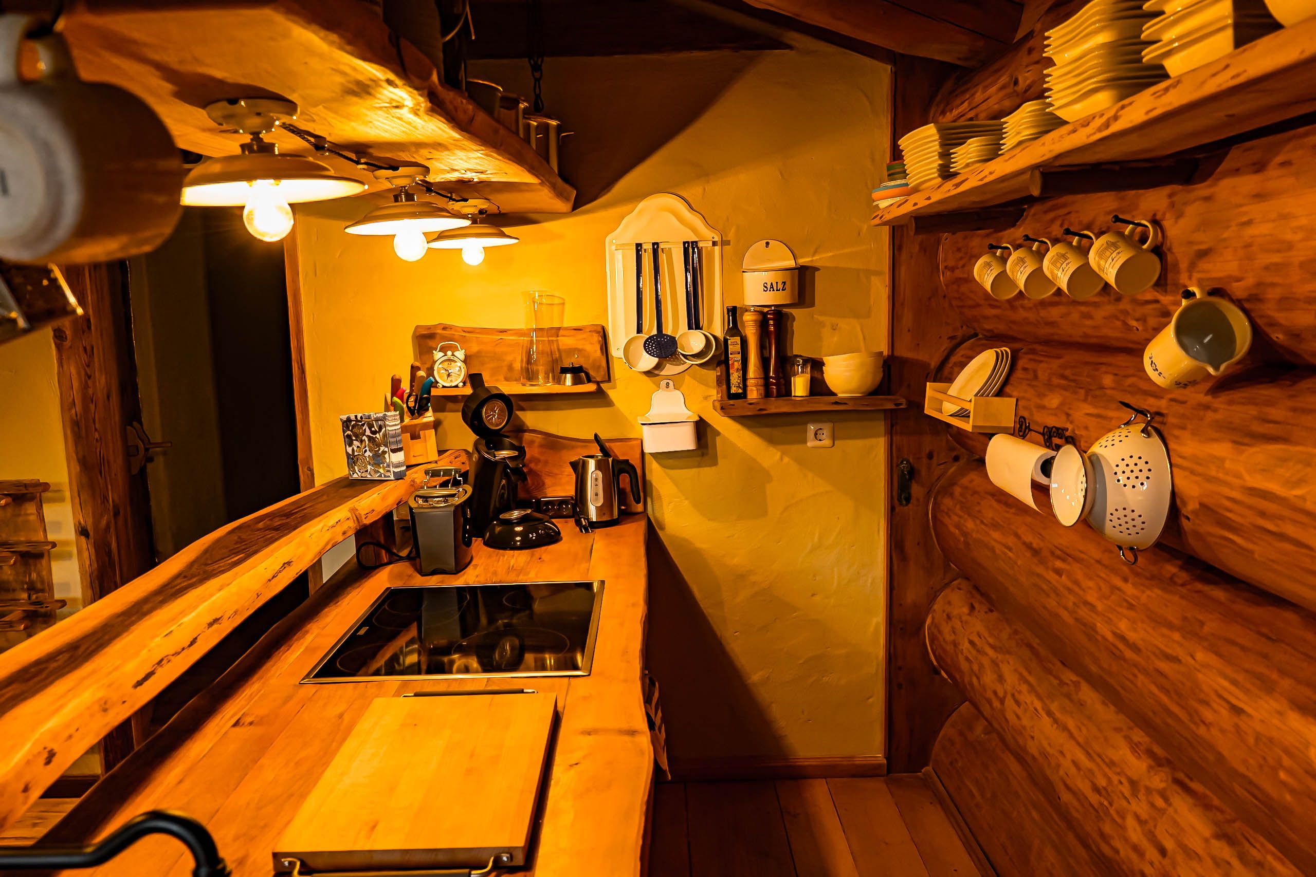 Blockhaus-Atmosphäre mit viel Holz, warmem Ambiente und Wohlfühlcharakter