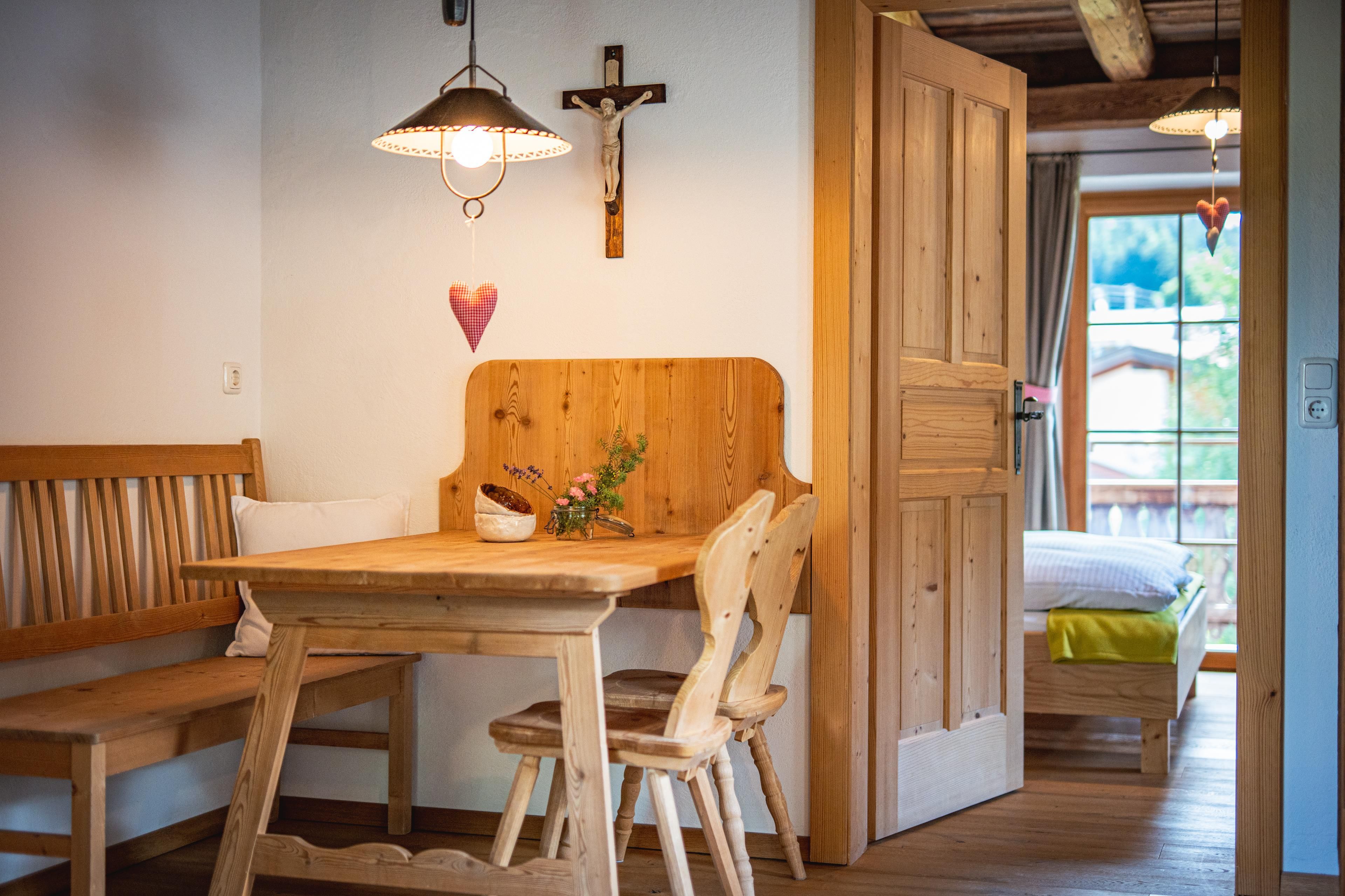 Genieße die luxuriöse Ausstattung mit höchstem Niveau unserer Doppelzimmer, Ferienwohnungen und Junior Suiten, die mit viel Liebe im Alpin Chalet Stil gestaltet sind. Starte deinen Tag mit einem köstlichen Frühstücksbuffet und tanke neue Energie für aufregende Wanderungen oder entspannende Stunden im Wald und auf den Wiesen in der Nähe.