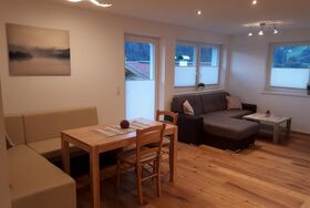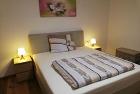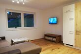 Unser Haus wurde im Juni 2020 fertiggestellt; die Ferienwohnung befindet sich im Untergeschoss und verfügt über einen eigenen Eingang und eine eigene Terrasse. Die Wohnung (75 qm) hat ein Schlafzimmer mit Doppelbett für Erwachsene / Eltern , ein Kinderschlafzimmer mit einem Doppelstockbett, ein großes Wohnzimmer mit einer Küche / einer Eckbank u. einem Esstisch. Im Wohnzimmer ist auch eine große ausziehbare Couch. Das Bad ist sehr räumig mit Dusche, außerdem gibt es noch eine zusätzliche WC.
