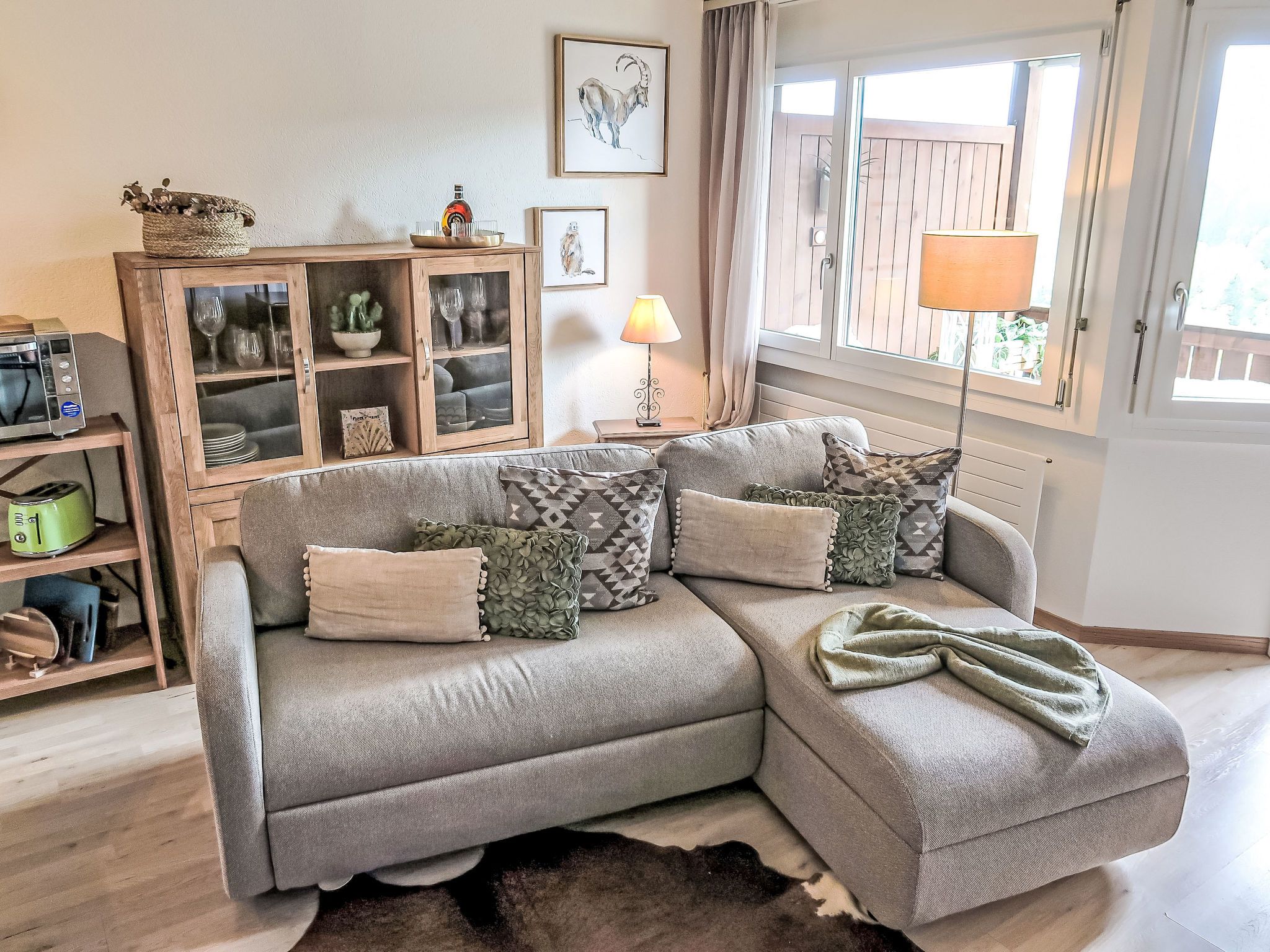 Casa Tavaun A22, 3-Zimmer-Wohnung 63 m2 im 2. Stock. Objekt geeignet für 4 Erwachsene + 2 Kinder. Renoviert im Jahre 2024, komfortabel und gemütlich eingerichtet: Wohn-/Esszimmer mit 1 Doppeldiwanbett (140 cm, Länge 200 cm), Kabel-TV (Flachbildschirm). Ausgang zum Garten. 1 Doppelzimmer. 1 Zimmer mit 2 Betten. Offene Küche (Mini-Backofen, Geschirrspüler, 4 Glaskeramikplatten, Toaster, Wasserkocher, Mikrowelle, elektrische Kaffeemaschine, Kapseln für die Kaffeemaschine (Nespresso) extra). Dusche/WC. Balkon 8 m2, Südlage. Balkonmöbel. Sehr schöne Sicht auf die Berge, die Landschaft und die Ortschaft. Zur Verfügung: Babybett bis 2 Jahre (extra). Internet (WLAN, gratis). Garage (1 Auto) beim Haus. Bitte beachten: geeignet für Familien. Nichtraucher-Unterkunft. Maximal 1 Haustier/Hund erlaubt.