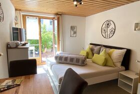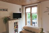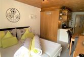 22 m2. Weitere Angaben des Anbieters: Gemütlich und preiswert: unser kleines Studio-Appartement (22m2) bietet für Alleinreisende oder auch Paare die ideale Unterkunft. Bereits ab 3 Tagen mietbar, günstig und doch sehr gemütlich, komfortabel, mit allem eingerichtet, was man für unbeschwerte Urlaubstage braucht. Im Studio-Appartement befinden sich zwei Betten je mit Nachttisch und -lampe sowie Nackenkissen, ein kleiner Esstisch, ein Dreitürenschrank sowie ein Büchergestell/Sideboard. Ein SAT-TV und ein Radio-/CD-Kassettengerät sind ebenfalls vorhanden sowie W-Lan. Die Nasszelle verfügt über Dusche, WC, Waschbecken, Spiegelschrank, Lüftung, Haartrockner und Handtuchwärmer. Toiletten-Papier, Kleenex, Watte sind für den Grundbedarf vorhanden. Die Küche ist eingerichtet mit Glaskeramikherd, Kühlschrank, Dampfabzug, Backofen, Padskaffeemaschine, Wasserkocher, Toaster etc. sowie allen üblichen Kochutensilien. Oel/Essig, Gewürze, Haushaltpapier, Kaffeepads, div. Tees etc. sind für den Grundbedarf ebenfalls vorhanden. Ein kleiner Wäscheständer steht zur Verfügung für das Trocknen der Ski- oder Badesachen. Staubsauger, Bodenwischer, kleines Bügelbrett und Bügeleisen sind vorhanden, ebenso Putzlappen und Reinigungsmittel. Die grosse Gartenterrasse ist komplett möbliert, verfügt über grosse Sonnenstoren, Liegestühle, einen Grill inkl. Holzkohle. Das Haus ist an ruhiger Lage situiert. Das Studio befindet sich im Hochparterre, der Eingang ist nordseits (kleiner Vorraum ist auch Hauseingang der Eigentümer). Inklusive sind Strom, Wasser, Heizung, 1 Parkplatz nordseits, Bettwäsche (bei Ankunft bezogen), Frotteewäsche, Küchenwäsche, Bademäntel, Badetücher fürs Erlebnisbad, Gästekarten, W-Lan. Nicht inbegriffen sind: - Vereinatunneltickets zu CHF 30.00 statt 42.00-45.00 (nur Winter), optional erhältlich bei Direkt-Kontakt ein paar Tage vor Ankunft.
