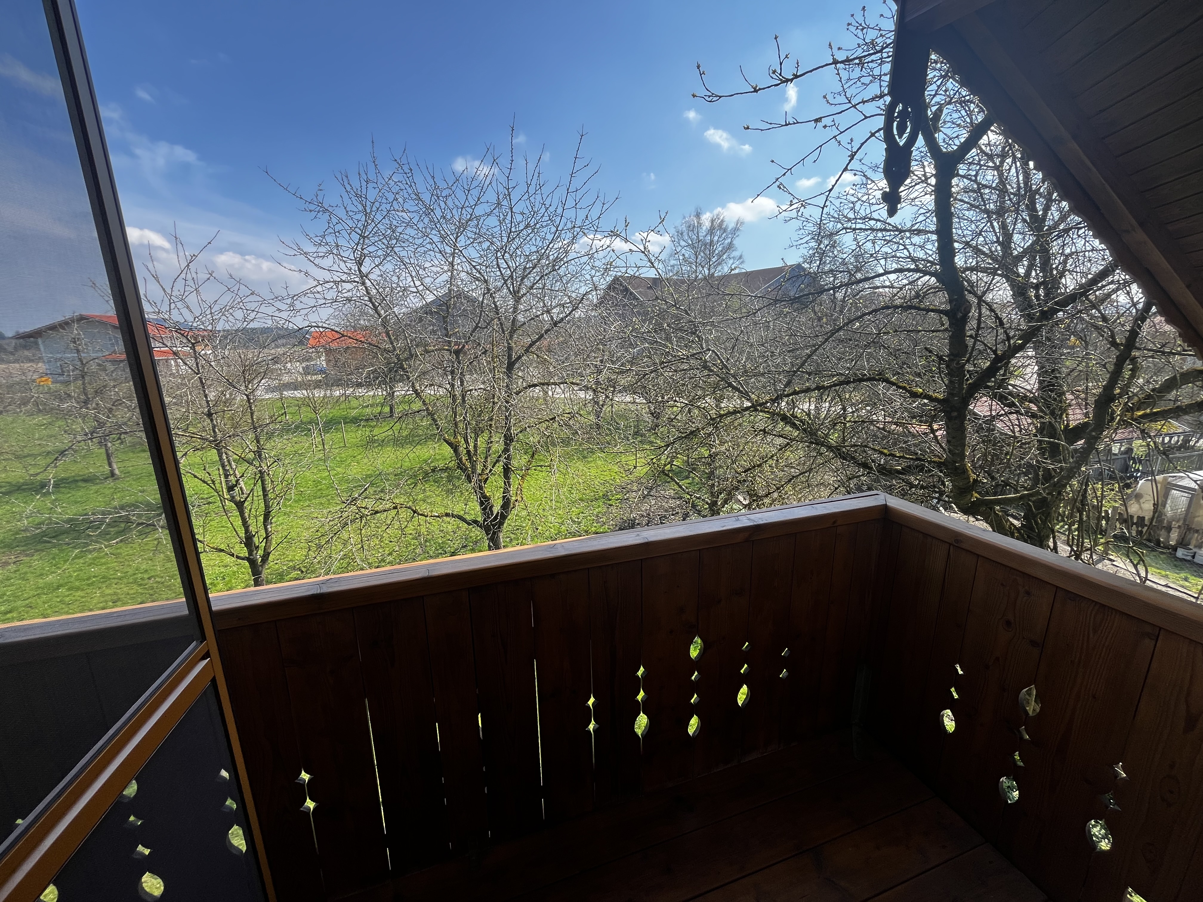 Tolle geräumige, ruhige, schöne und vorallem gemütliche Ferienwohnung im Dachgeschoss unseres Biobauernhofs mit separaten Eingang. Sie bietet Platz für 2-4 Personen. Über den Flur/Eingangsbereich der Wohnung gelangt man in die jeweiligen Räume. Die Wohnung verfügt über eine großes Wohn-/Esszimmer mit Küche, Schlafcouch und TV. Hierüber gelangt man auch auf den Balkon. Die Küche ist voll ausgestattet. Ein großes Doppelbett (180 cm) und eine Couch, welche als Schlafcouch dienen kann, bieten zusammen Platz für bis zu 4 Personen. Zusätzliches Kinderbett auf Anfrage.