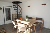Das Haus ist mit pflegeleichten und fußwarmen Bodenbelägen ausgestattet. Ein renoviertes Badezimmer mit Badewanne, Dusche und WC sowie eine separate Toilette stehen zur Verfügung. Ein Hauswirtschaftsraum mit Waschmaschine, Trockner und Bügelmöglichkeiten ergänzt die Ausstattung. Ein LCD-TV mit Internetanschluss befindet sich im Wohnzimmer, ein weiterer im Obergeschoss. Für Familien sind Hochstühle, ein Babybett sowie Spiele und Bücher vorhanden.