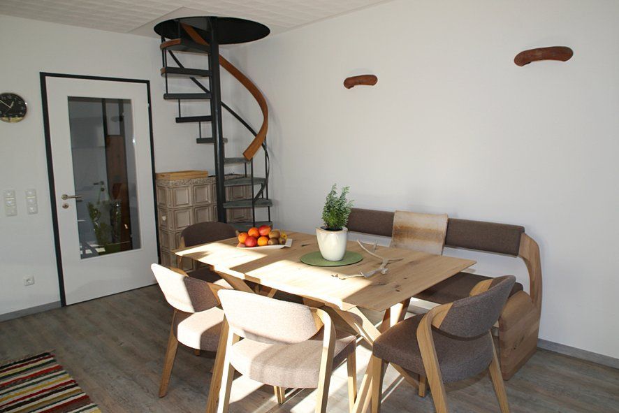 Das großzügige Ferienhaus verbindet modernen Landhausstil mit traditioneller Allgäuer Gemütlichkeit und bietet auf zwei Stockwerken Platz für bis zu acht Personen. Hochwertige Naturholzmöbel und schadstofffreie Materialien prägen die Einrichtung, während jedes der vier individuell gestalteten Schlafzimmer seinen eigenen Charme besitzt.