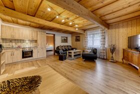 Schöne, geräumige Wohnungen für 2-4 Personen, 55 qm, 1 Schlafzimmer, 1 großer, sehr gemütlicher Wohnraum mit großer Küchenzeile, Essecke, Fernsehcouch, Dusche/WC, großer Balkon im 1. Stock.