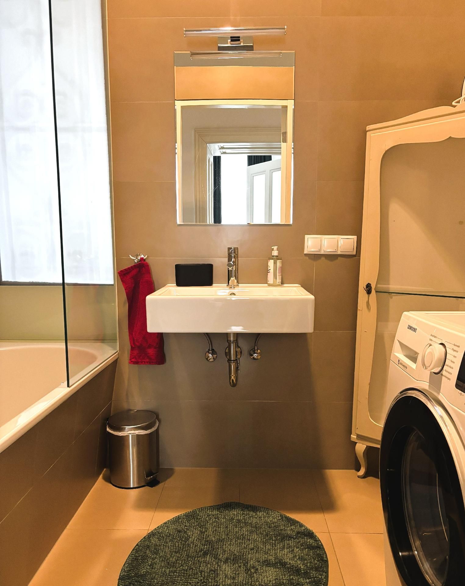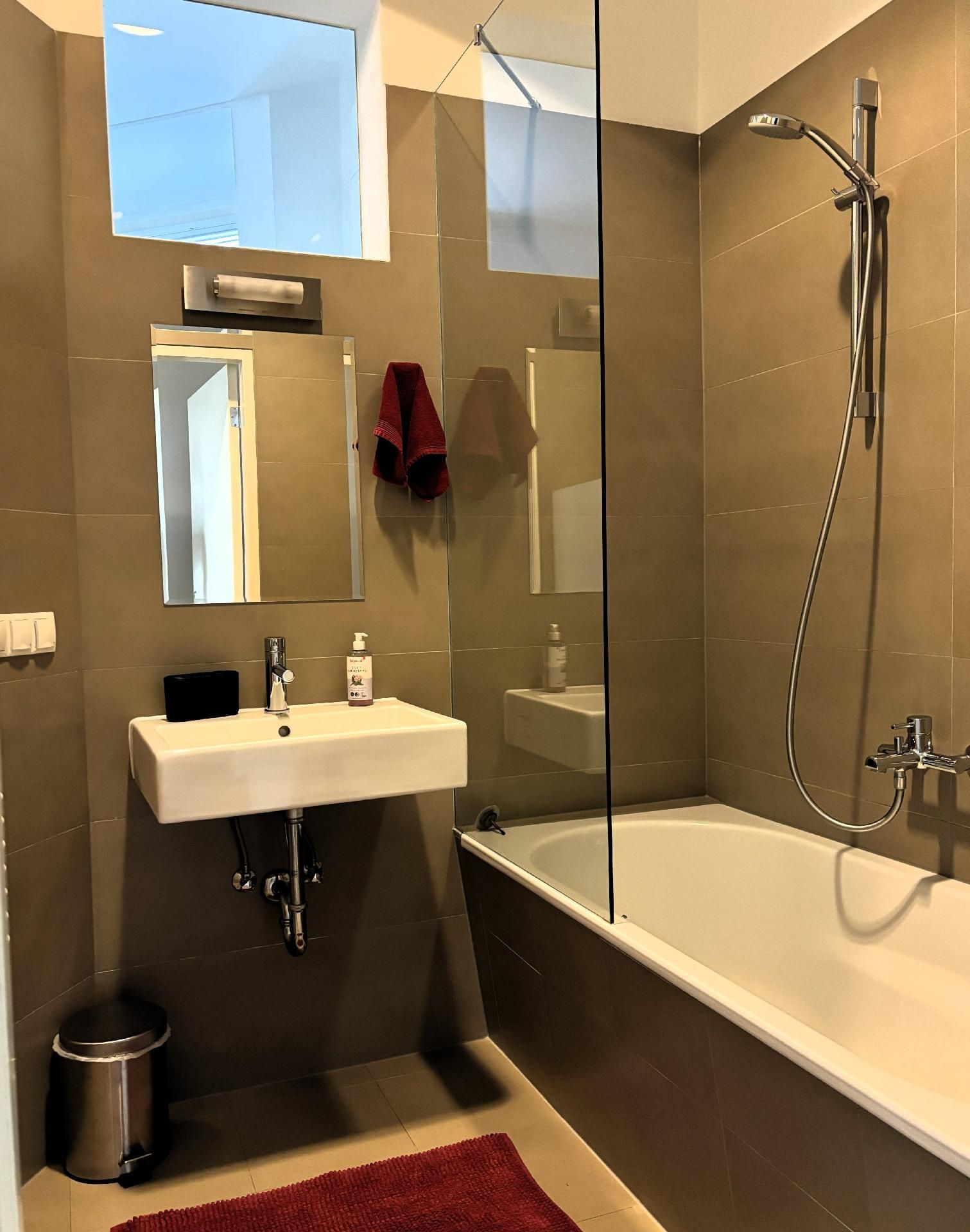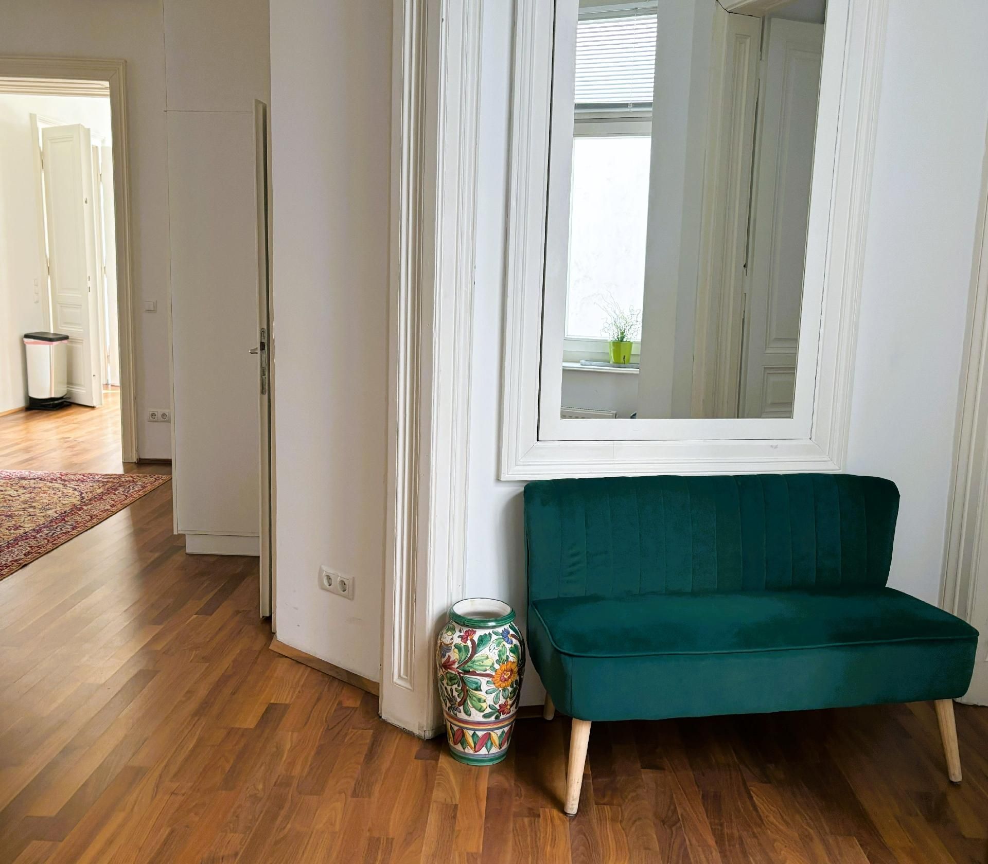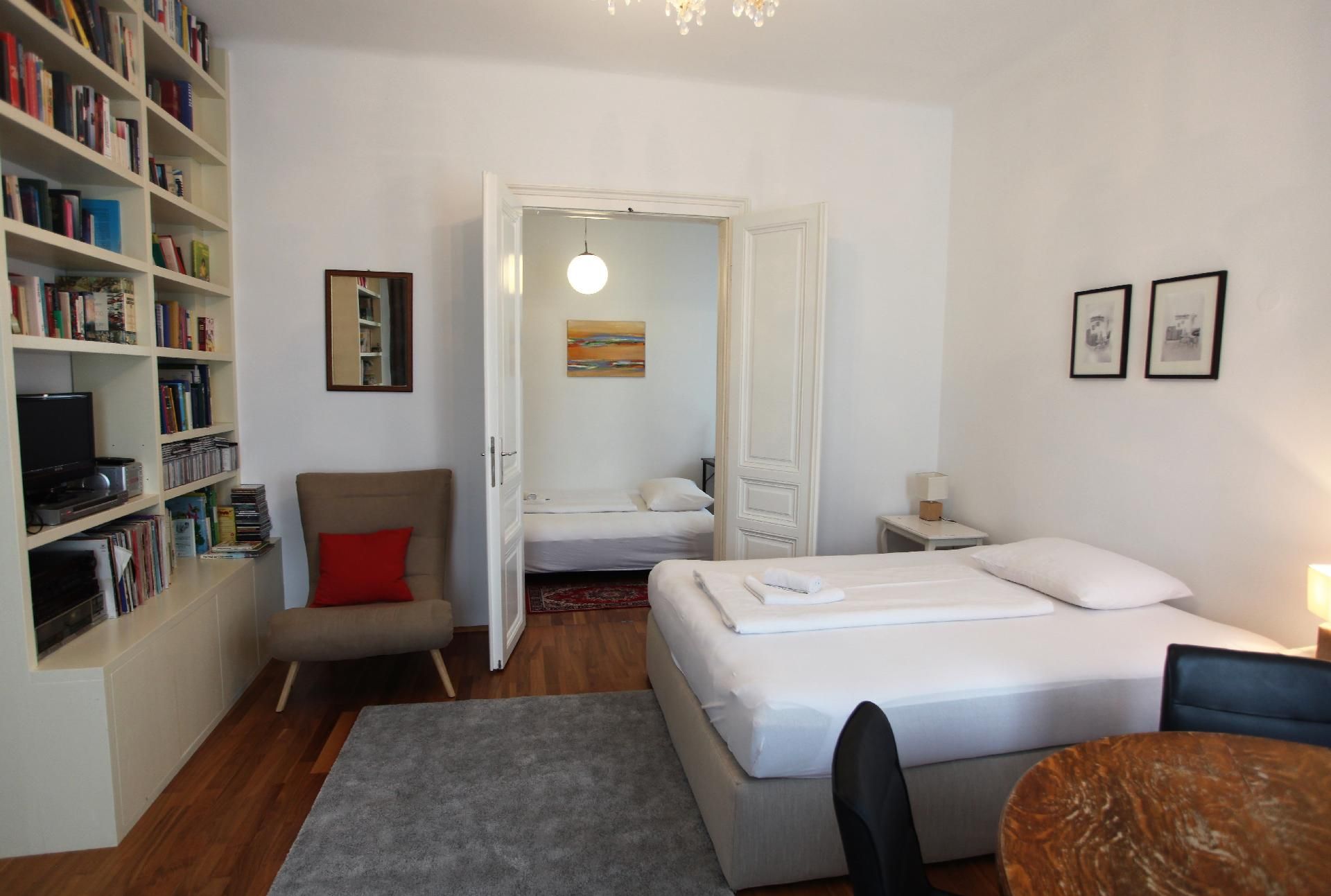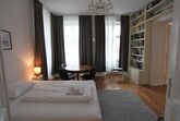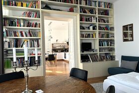 Ausgefallene, große Wohnung am Augarten. Sie wohnen in zentraler Lage in einem typischen Wiener Gründerzeithaus aus dem Jahre 1890. Das Haus ist im 20. Bezirk (Brigittenau) in einer ruhigen Gasse direkt am Augarten - der älteste und womöglich schönste Barockpark Wiens. Alle Geschäfte für den täglich Bedarf in maximal 5 Gehminuten. Drei Badezimmer (2x Badewanne, 1x Dusche), 2 WCs, kleiner Balkon zum Augarten, vollständig ausgestattete Küche und eine Bibliothek.