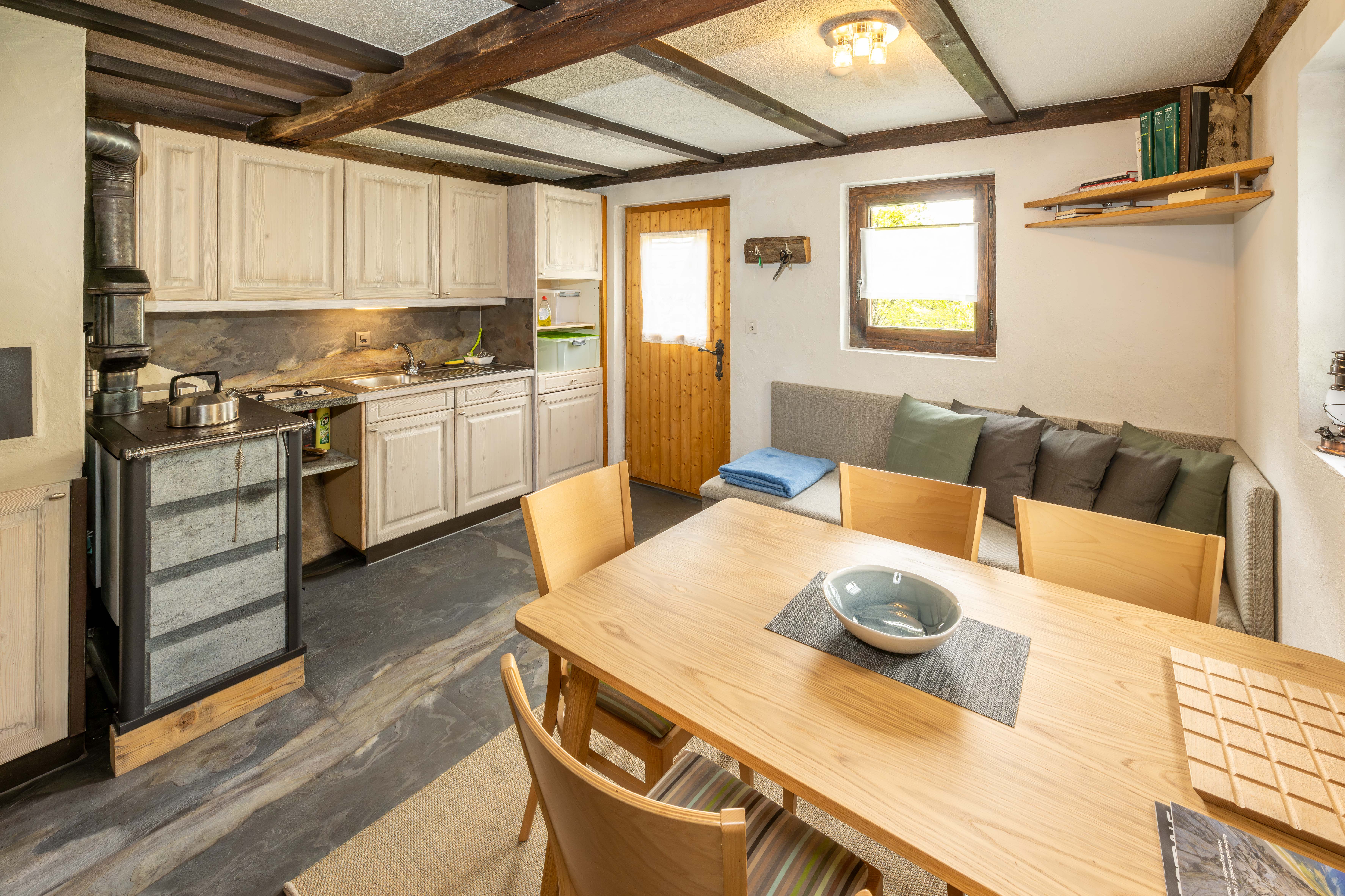 1 Schlafraum, Backofen, Balkon, Cheminée, Fondue-Set, Grillmöglichkeit, Haustiere auf Anfrage, Kachelofen, Kein Fernseher, Küche, Küche separat, Küchenwäsche, Kühlschrank, Nichtraucherzimmer-/wohnung, Online buchbar, Raclette-Set, Tisch- und Küchenwäsche, Töpfe Pfannen Geschirr