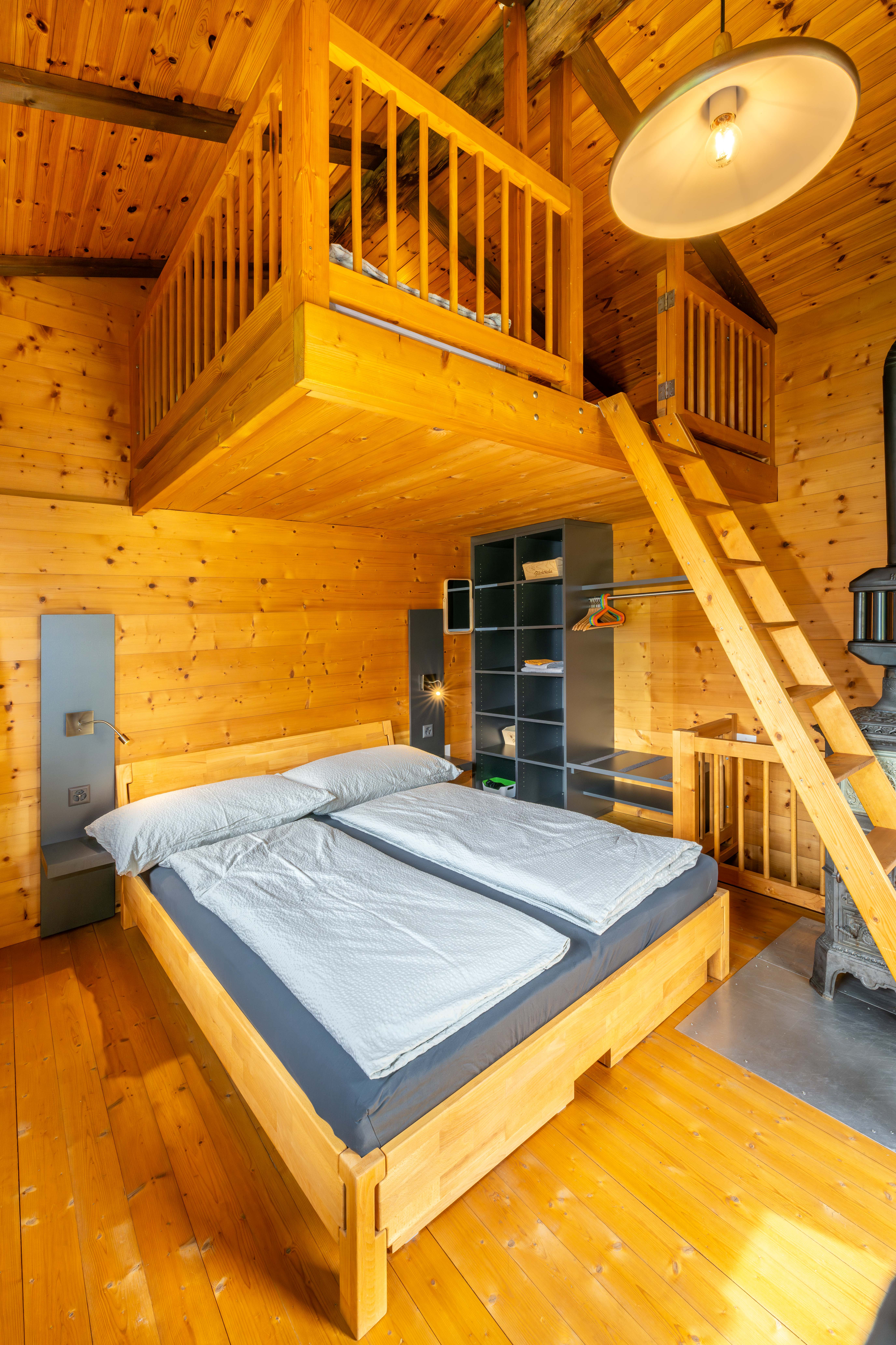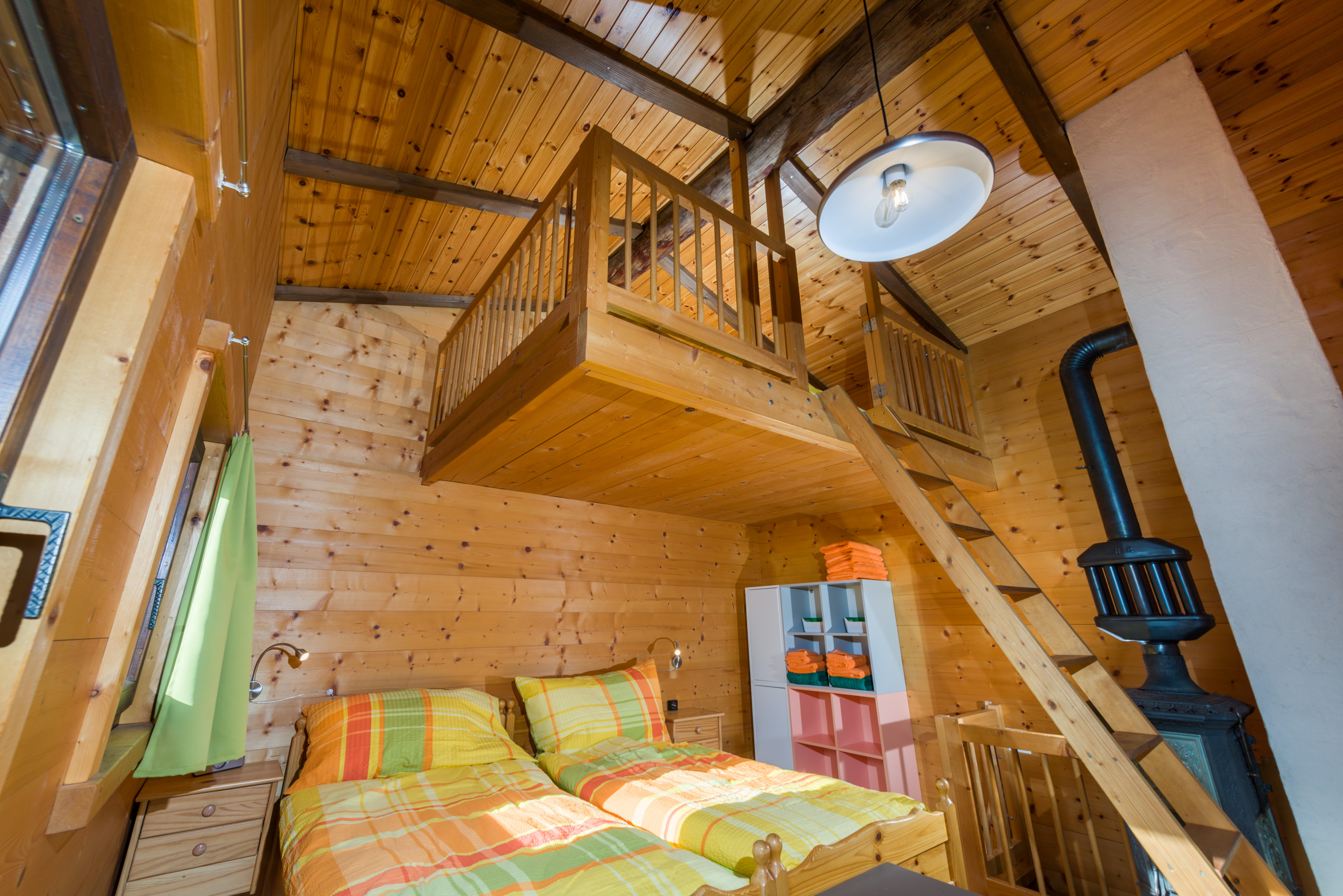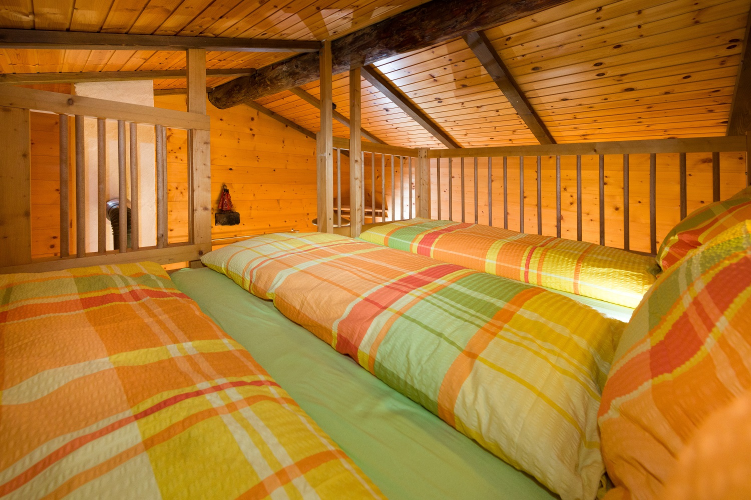 Der Umgebaute Stadel bietet Platz für 4 Personen. Es gibt 1 Schlafraum mit 1 Doppelbett und 2 Einzelbetten auf der Galerie.