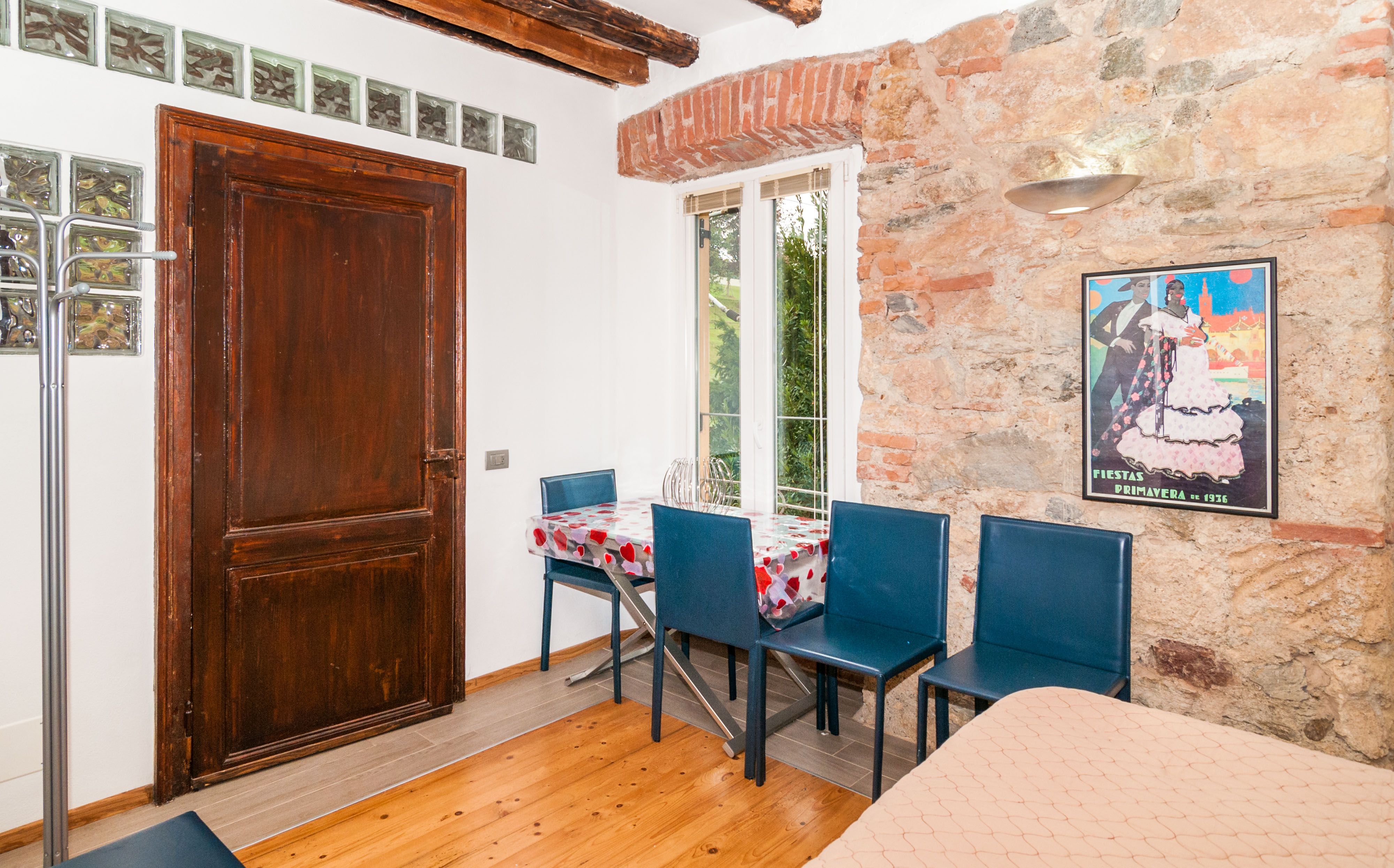Treten Sie ein in ein gepflegtes Interieur, in dem Funktionalität auf Komfort trifft. Das Hauptschlafzimmer und der Wohnbereich sind geschickt durch einen senkrechten Schrank getrennt, der Privatsphäre und Platz bietet. Die separate Küche ist mit einer Kapselkaffeemaschine, einem Wasserkocher und allem Notwendigen ausgestattet und steht für Ihren Aufenthalt bereit. Die gesamte Wohnung ist klimatisiert, so dass Sie sich zu jeder Jahreszeit wohlfühlen. Die Waschmaschine, die Sie exklusiv nutzen können, verleiht Ihrem Aufenthalt einen Hauch von häuslicher Gemütlichkeit.