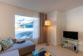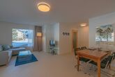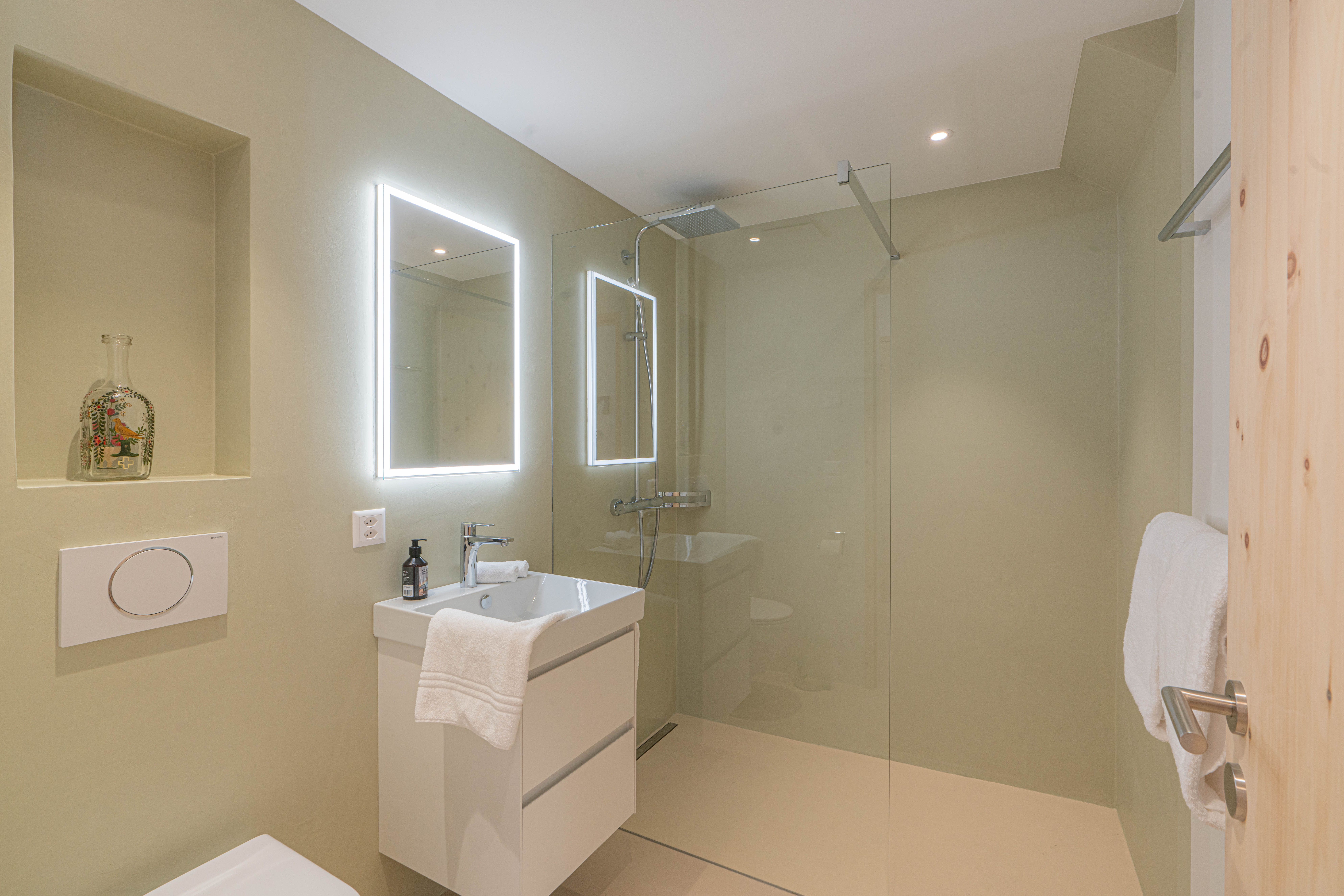 Die Innenausstattung der Wohnung spiegelt die Sorgfalt und Liebe zum Detail wider, die bei der Gestaltung dieser Räumlichkeiten an den Tag gelegt wurde. Die großzügigen Fenster im Wohnbereich lassen viel natürliches Licht herein und ermöglichen einen eindrucksvollen Blick auf die Bergwelt. Für ein angenehmes Ambiente sorgt zudem die überall verlegte Fußbodenheizung. Gemeinschaftliche Annehmlichkeiten wie eine Waschmaschine und ein Wäschetrockner stehen im Gebäude zur Verfügung und tragen zu einem sorgenfreien Aufenthalt bei.
