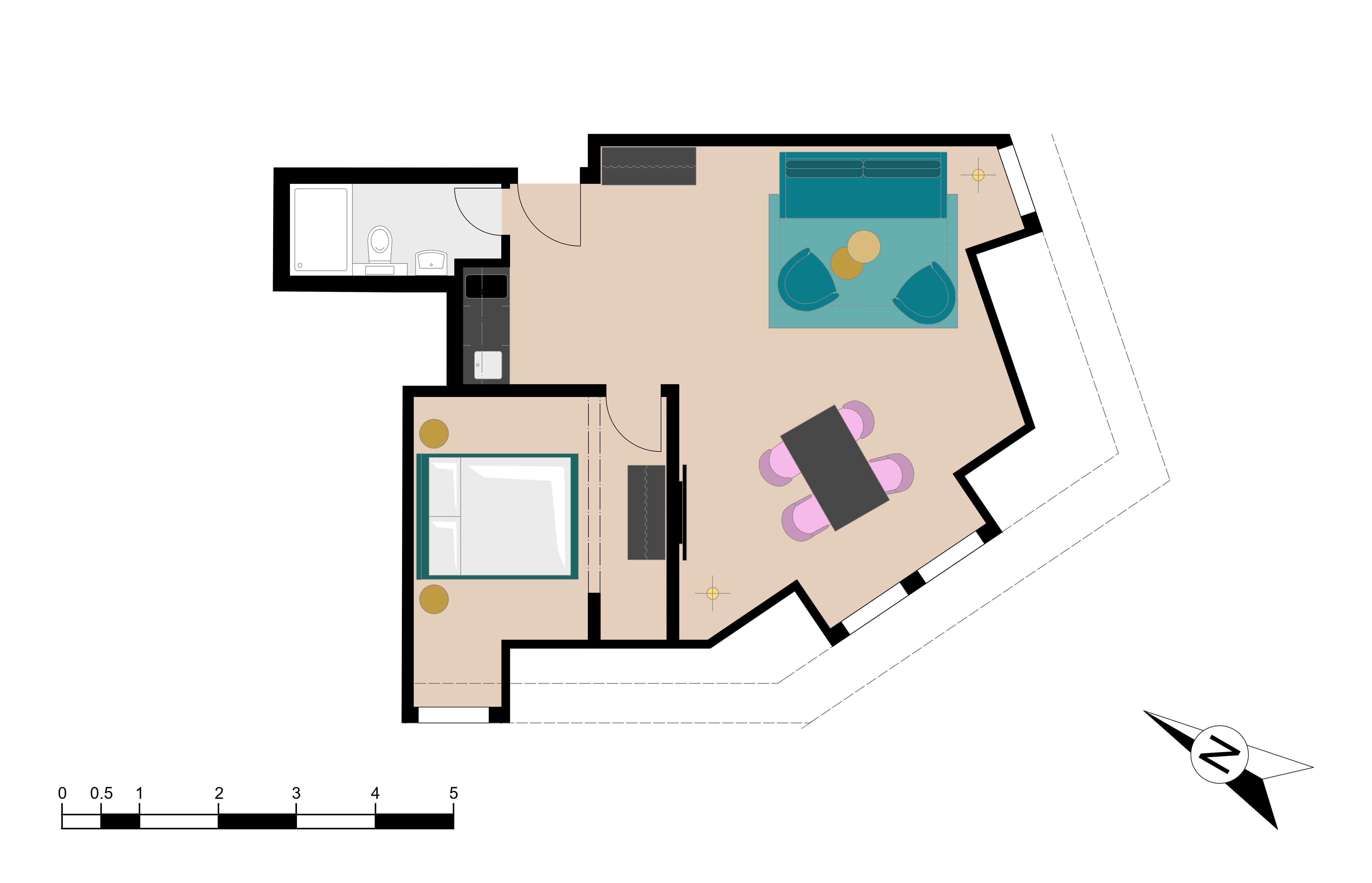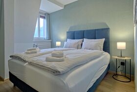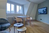 Das Apartment besticht durch seine Helligkeit, die durch die großen Fenster und die ausgewählte Farbgestaltung noch verstärkt wird. Die geschmackvolle und hochwertige Einrichtung sorgt für eine perfekte Mischung aus Funktionalität und Wohlfühlcharakter.