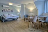Das moderne, klimatisierte Apartment (43 m2) im 4. Obergeschoss bietet Platz für bis zu 4 Personen. Durch die gelungene Kombination aus stilvollen Elementen und einer warmen, einladenden Atmosphäre sorgt die Wohnung für ein angenehmes Wohlfühlambiente.