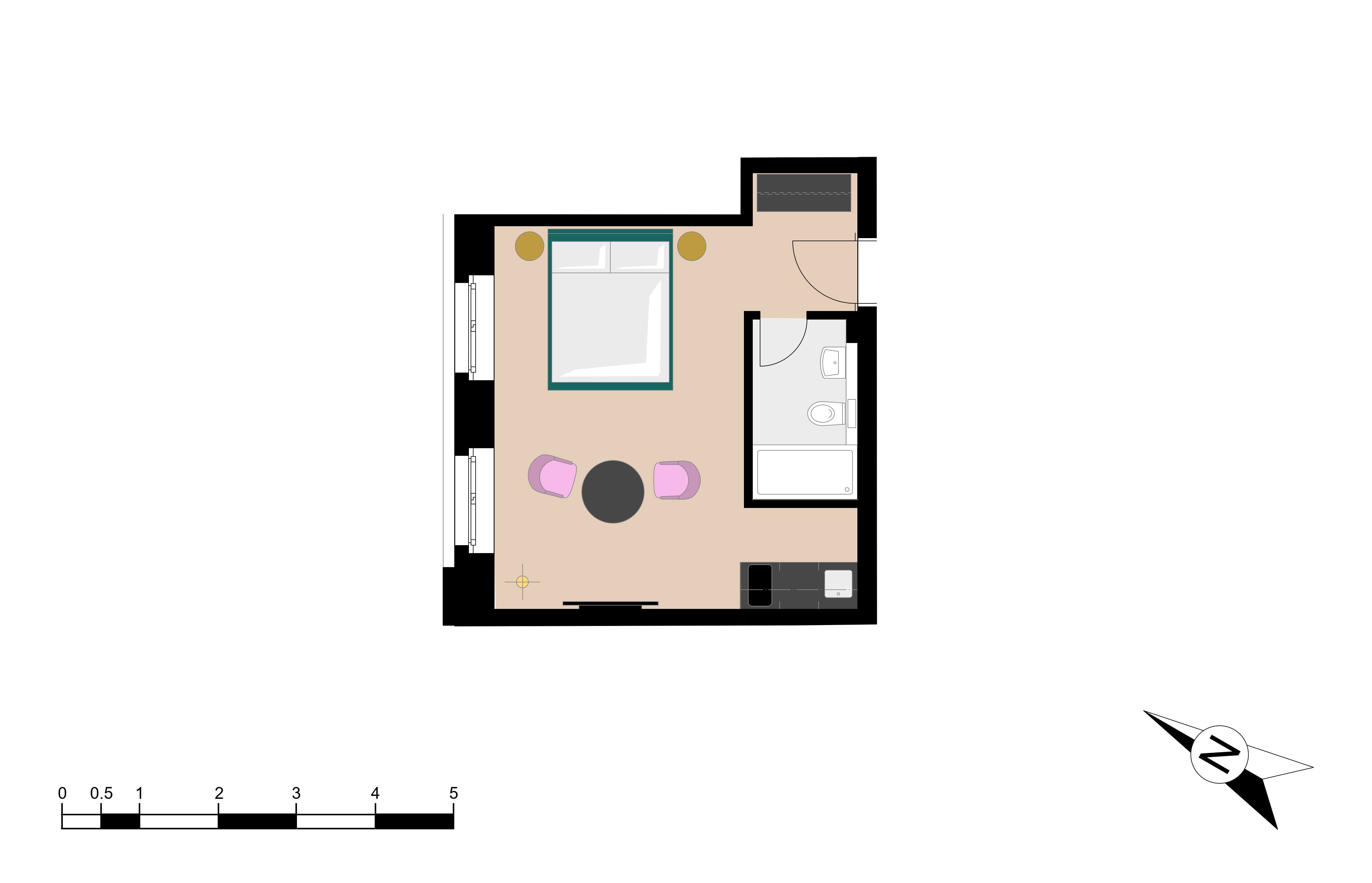 Unser modernes, lichtdurchflutetes und klimatisiertes Studio (23 m²) im 2. Obergeschoss bietet Platz für bis zu 2 Personen. Es ist die perfekte Wahl für Paare oder Alleinreisende, die einen entspannten und komfortablen Aufenthalt suchen. Die kürzlich renovierte Wohnung überzeugt durch ihre moderne Ausstattung sowie durchdachte Raumaufteilung.