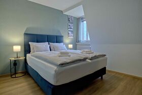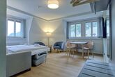 Das Apartment besticht durch seine Helligkeit, die durch die großen Fenster und die ausgewählte Farbgestaltung noch verstärkt wird. Die geschmackvolle und hochwertige Einrichtung sorgt für eine perfekte Mischung aus Funktionalität und Wohlfühlcharakter.