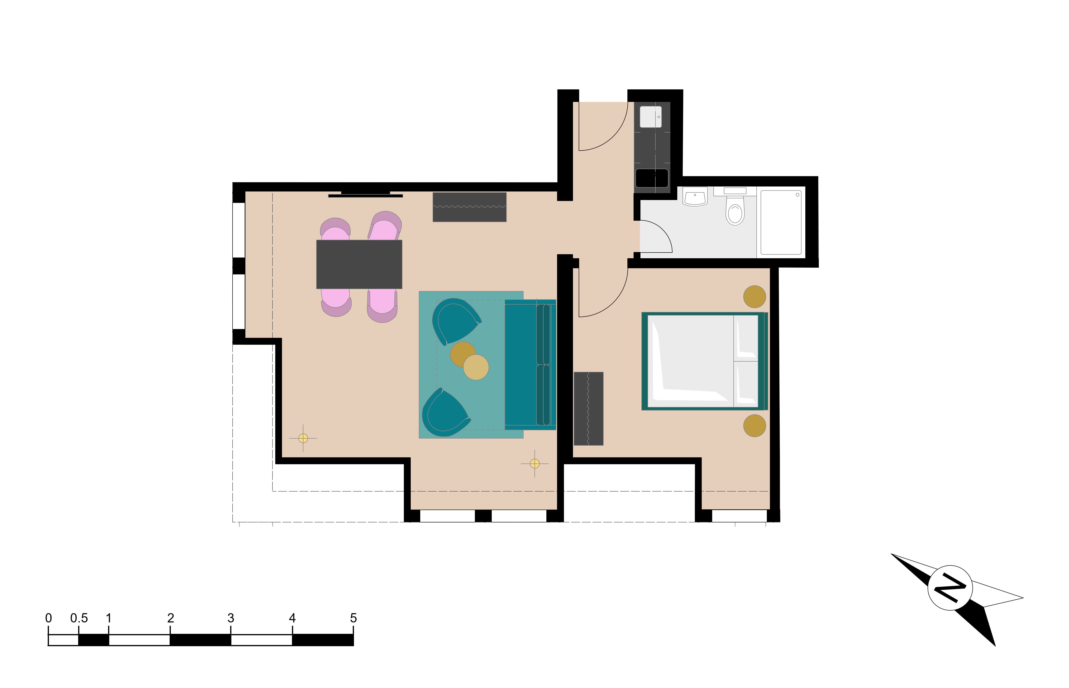 Das moderne, klimatisierte Apartment (40 m2) im 4. Obergeschoss bietet Platz für bis zu 4 Personen. Durch die gelungene Kombination aus stilvollen Elementen und einer warmen, einladenden Atmosphäre sorgt die Wohnung für ein angenehmes Wohlfühlambiente.