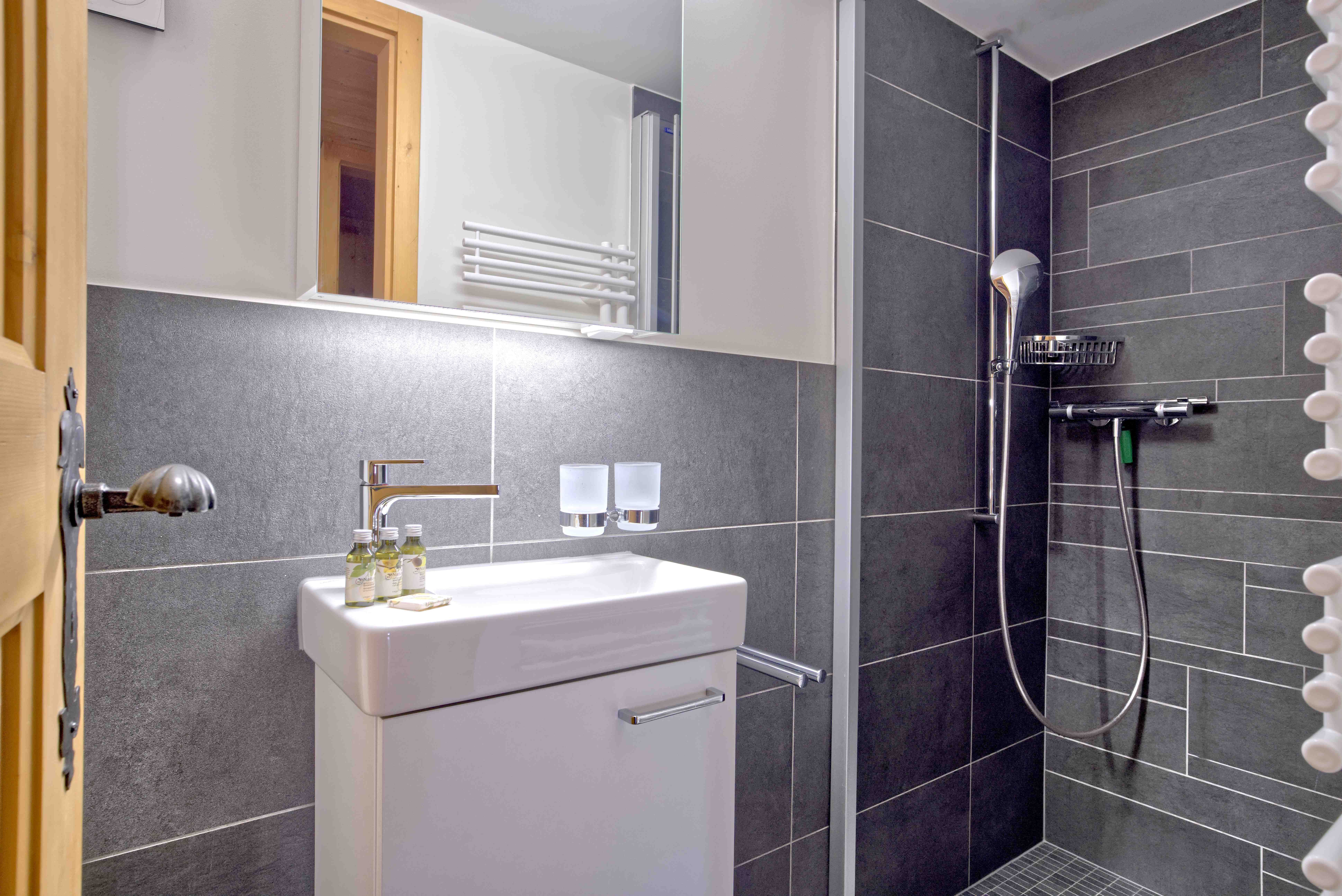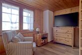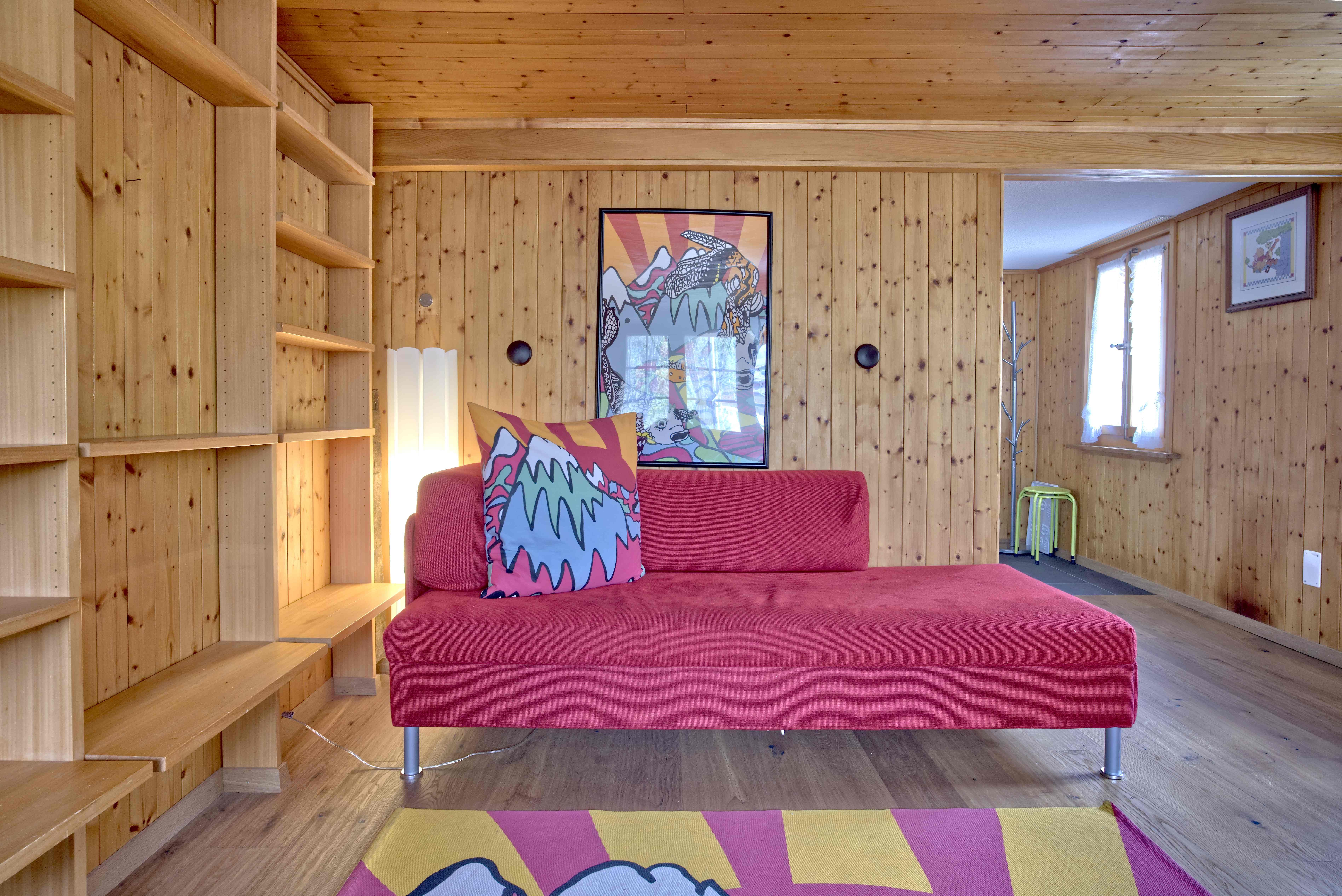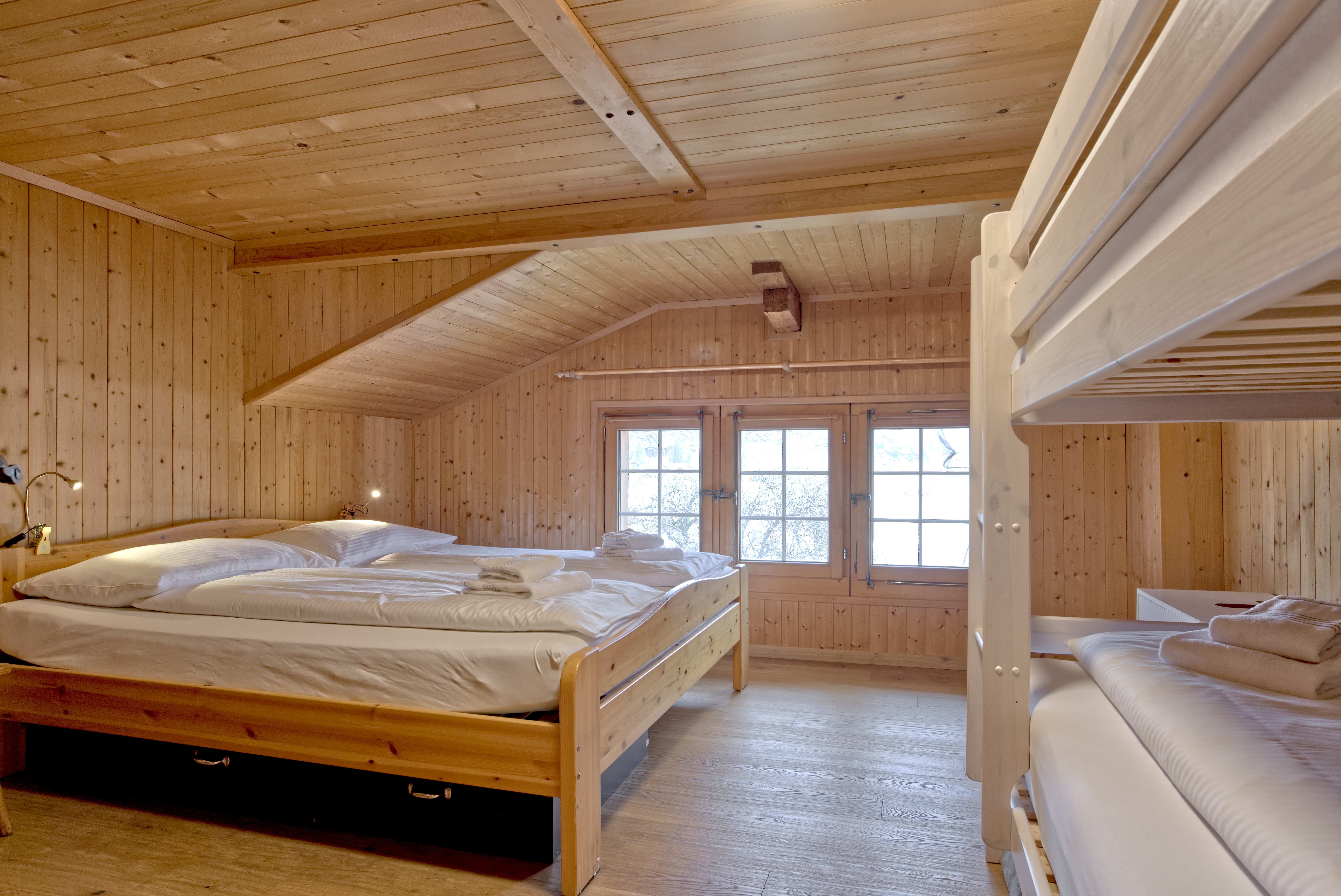 Die gemütliche 3.5-Zimmerwohnung im Obergeschoss bietet auf 70m2 ein Schlafzimmer mit Doppelbett, ein Schlafzimmer mit Doppelbett und Stockbett, ein Badezimmer mit Dusche/WC, ein Badezimmer mit Dusche sowie ein separates WC. Die gut ausgestattete Küche öffnet sich zu einem gemütlichen Wohn- und Essbereich. Auf der Terrasse geniessen Sie die Aussicht auf das wunderbare Bergpanorama.