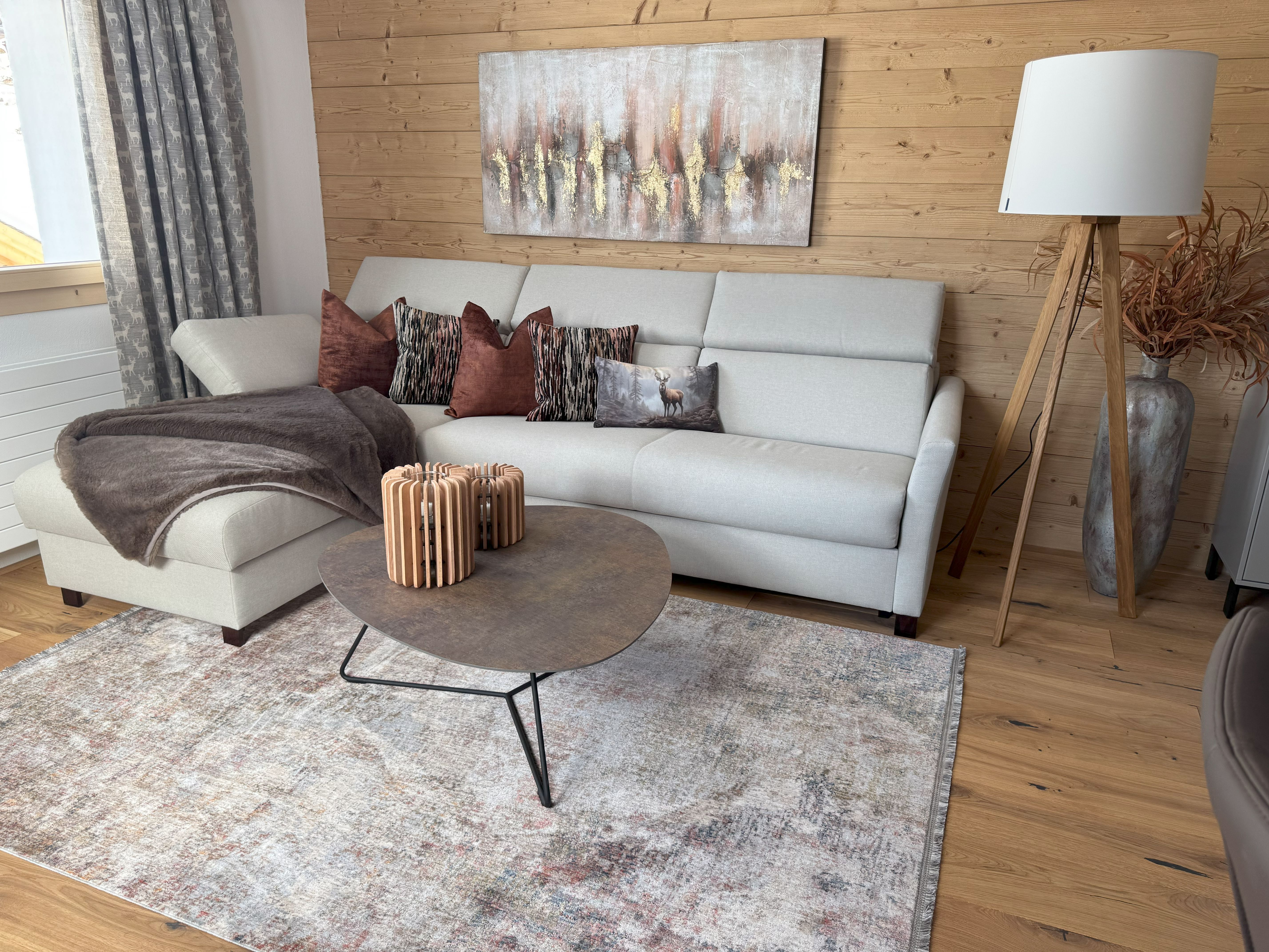 Es wurde unter dem Motto: modernes Design mit alpinem Charme eingerichtet. Sehr komfortable und stylische Möbel und Accessoires von bekannten Brands machen die Urlaubstage zum Erlebnis.
