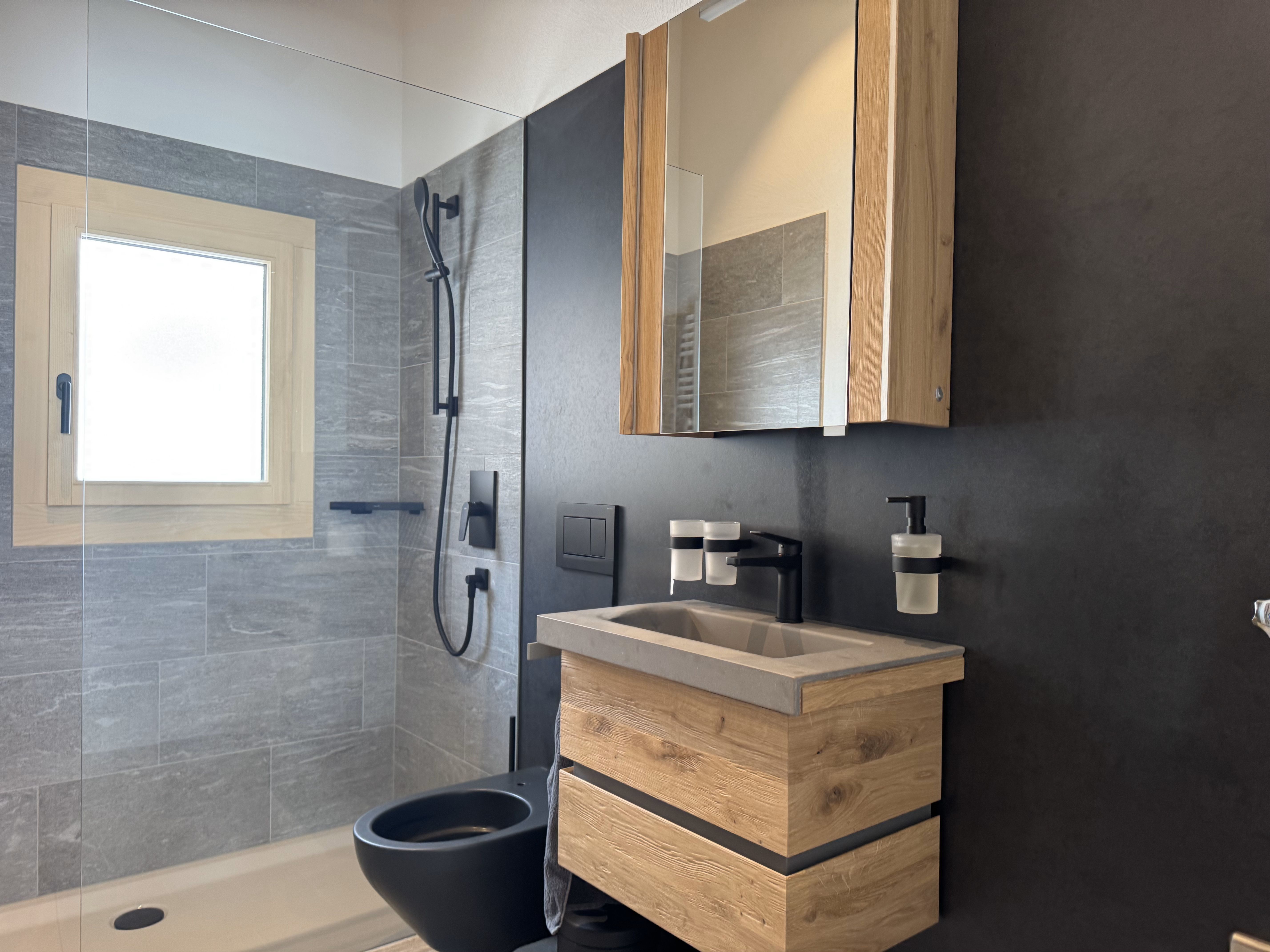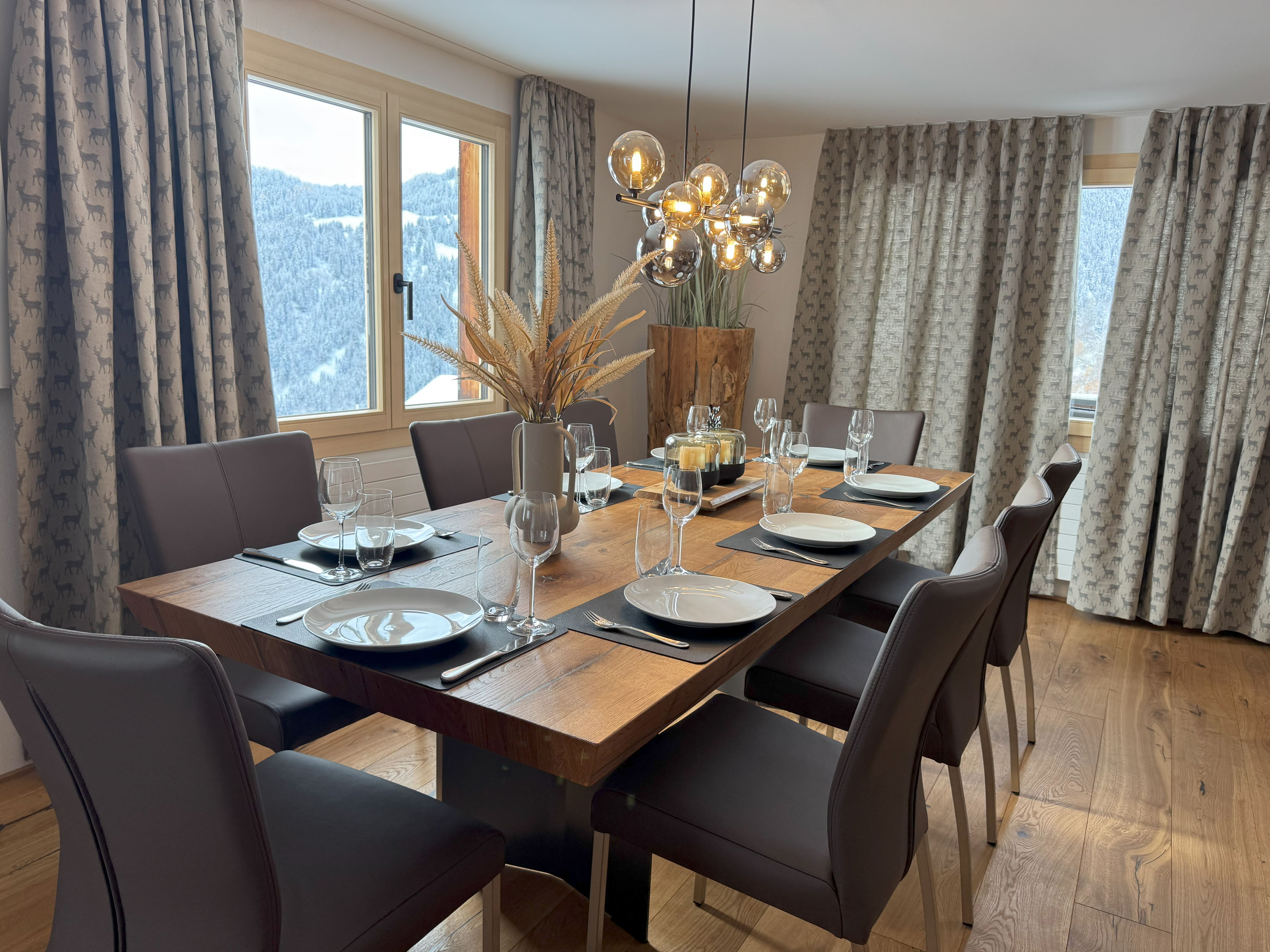 Diese stilvolle 4,5-Zimmer-Wohnung (121m2) in Falera wurde im November 2024 komplett umgebaut und renoviert. Die Wohnung bietet Platz für 8 Personen. Es wurden nur hochwertige und moderne Materialien verwendet. Die gesamte neue Einrichtung stammt vom renommierten Zürcher-Möbelhaus Schubiger Möbel.