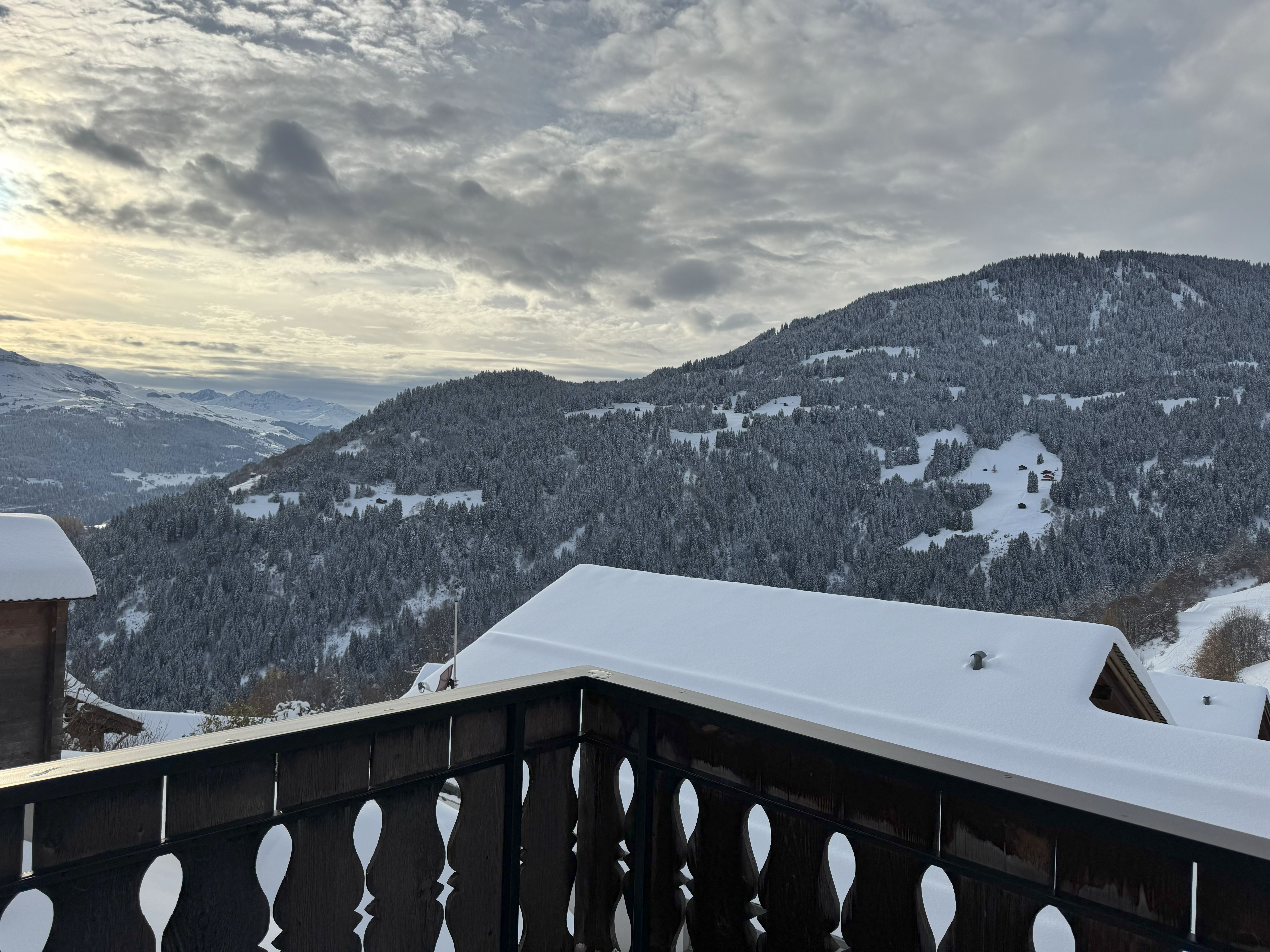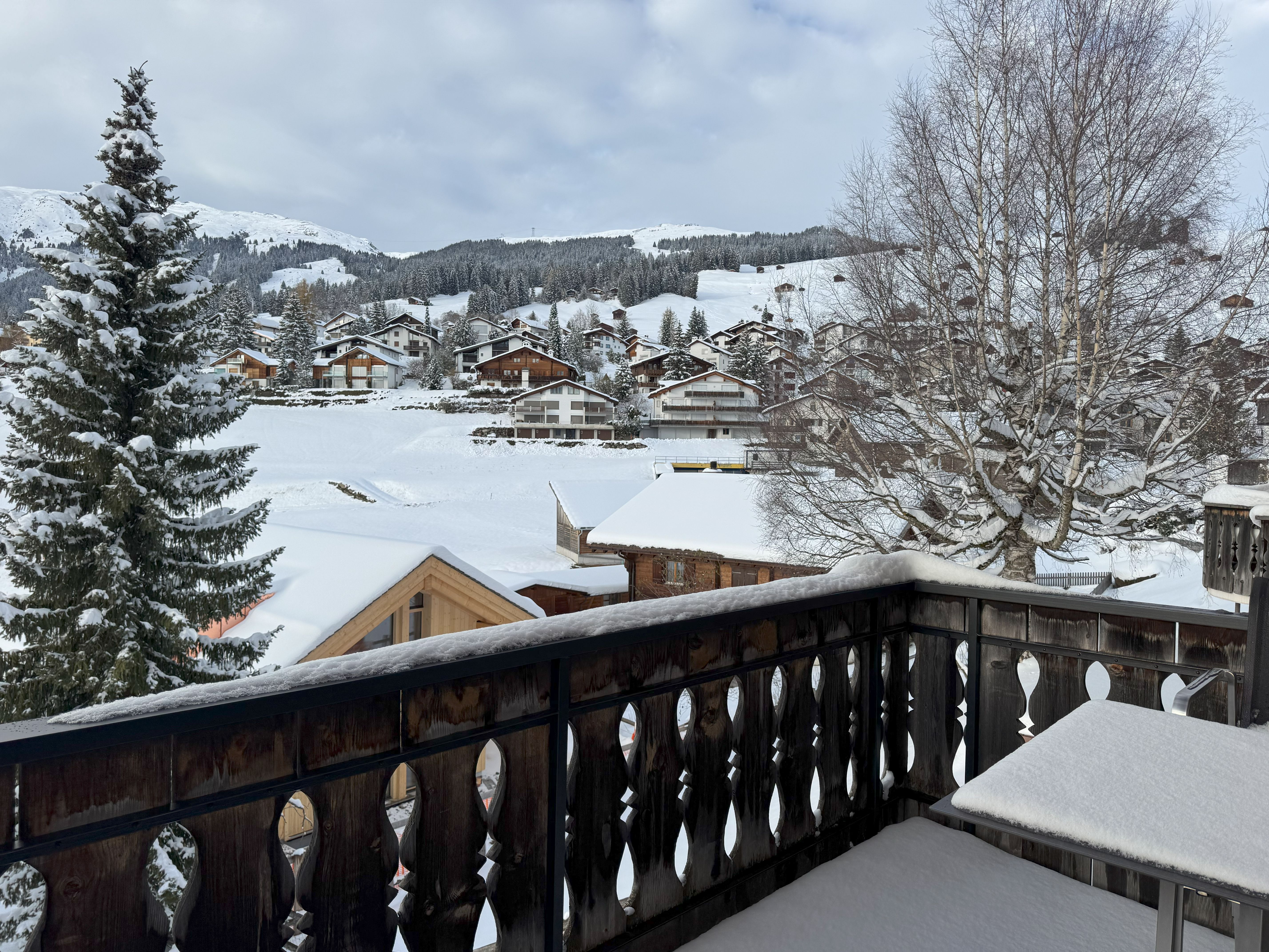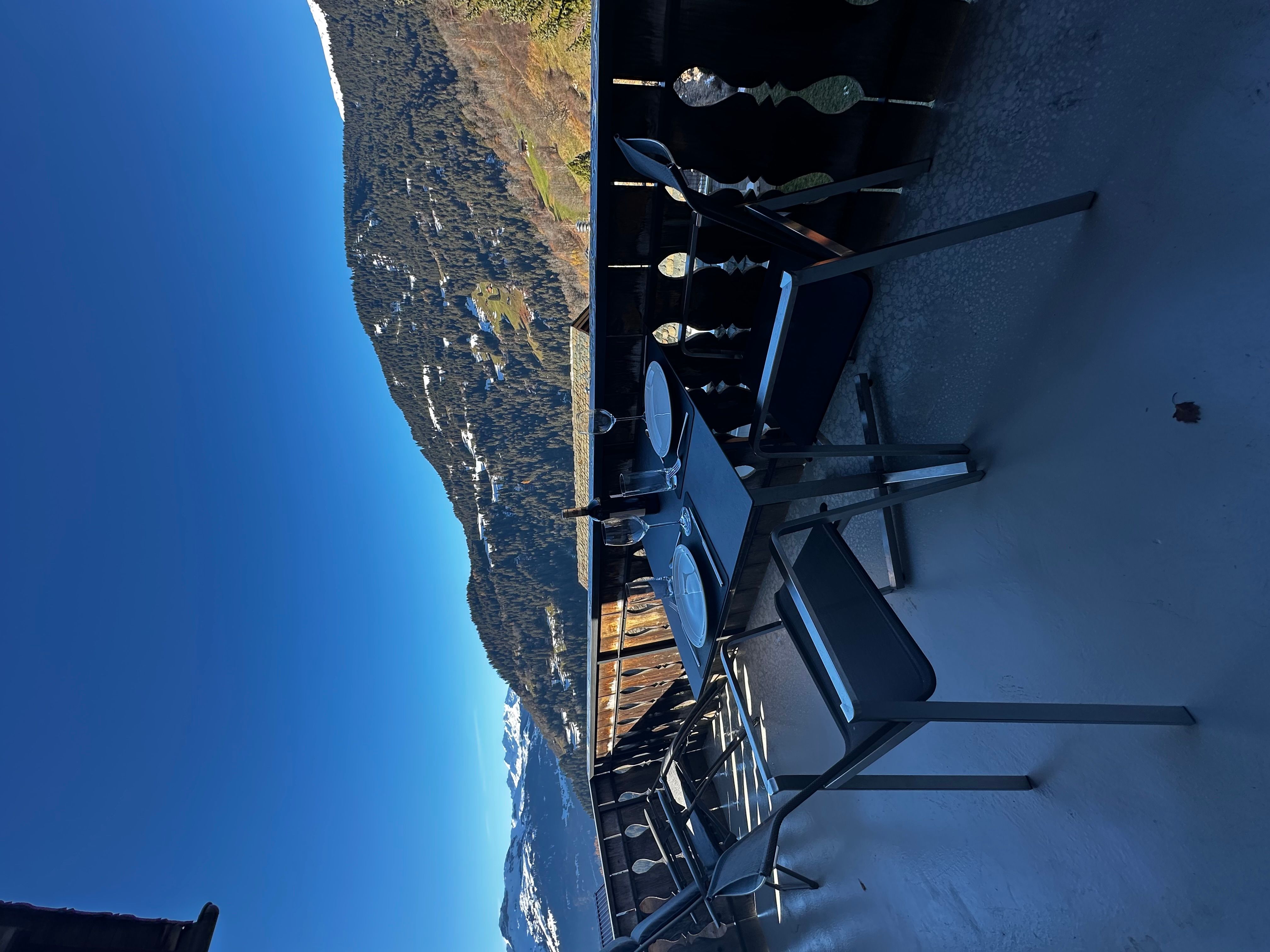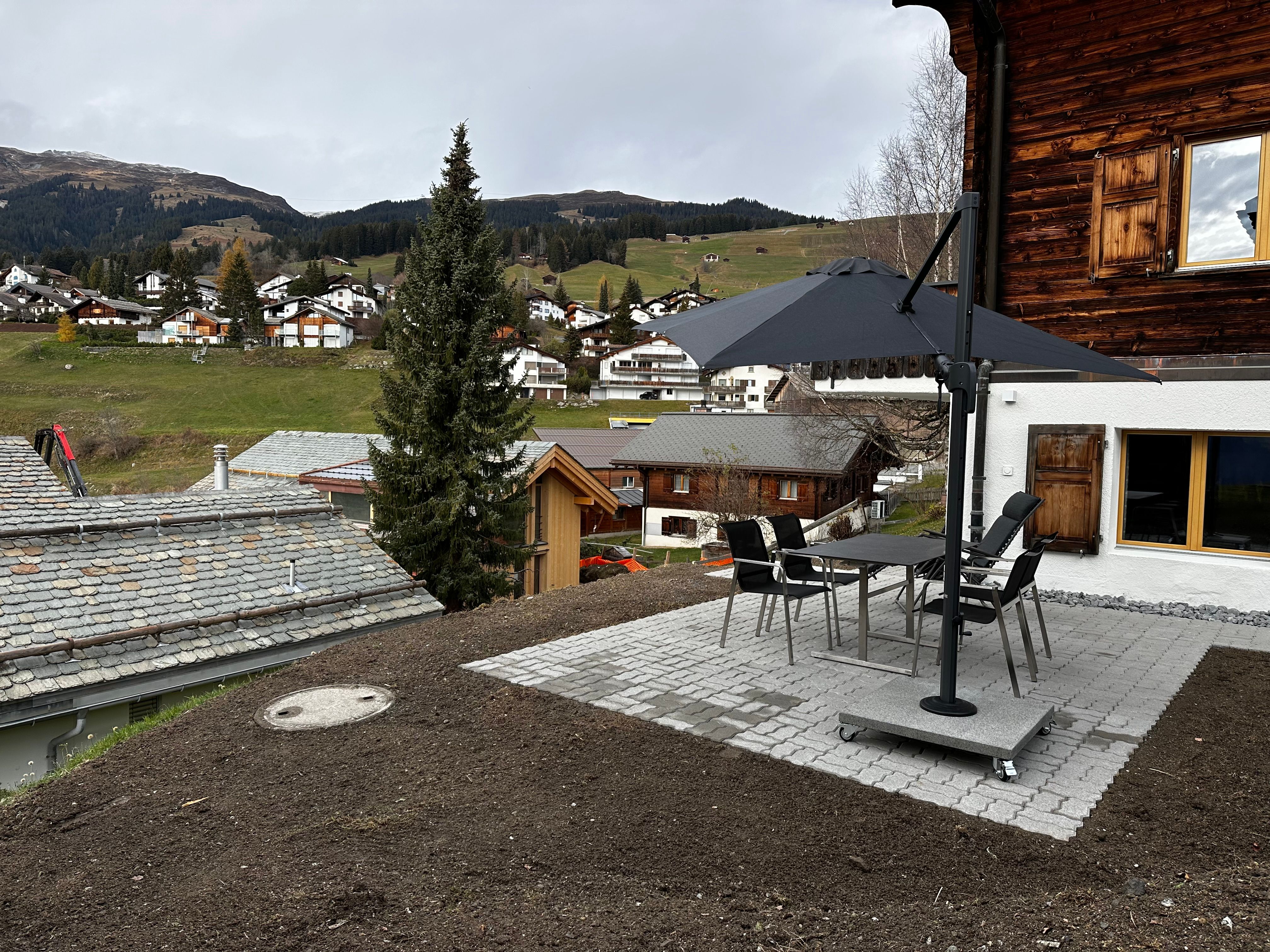 Vom Balkon aus geniessen Sie eine herrliche Aussicht auf die Bergwelt. Es steht ausserdem Ihnen zusammen mit der Wohnung Casa Ladina 2 eine schöne Terrasse für Barbeques zur Verfügung.