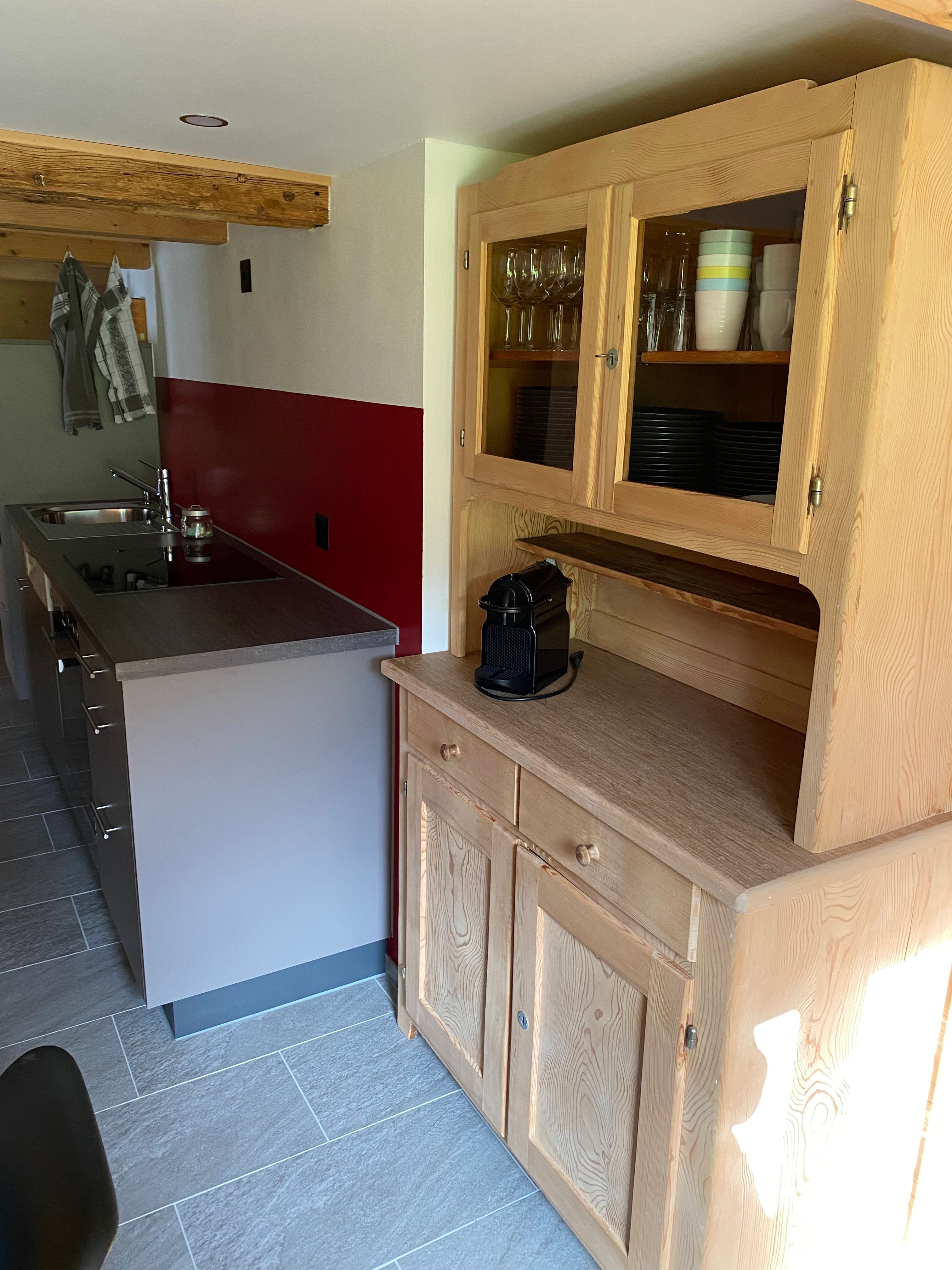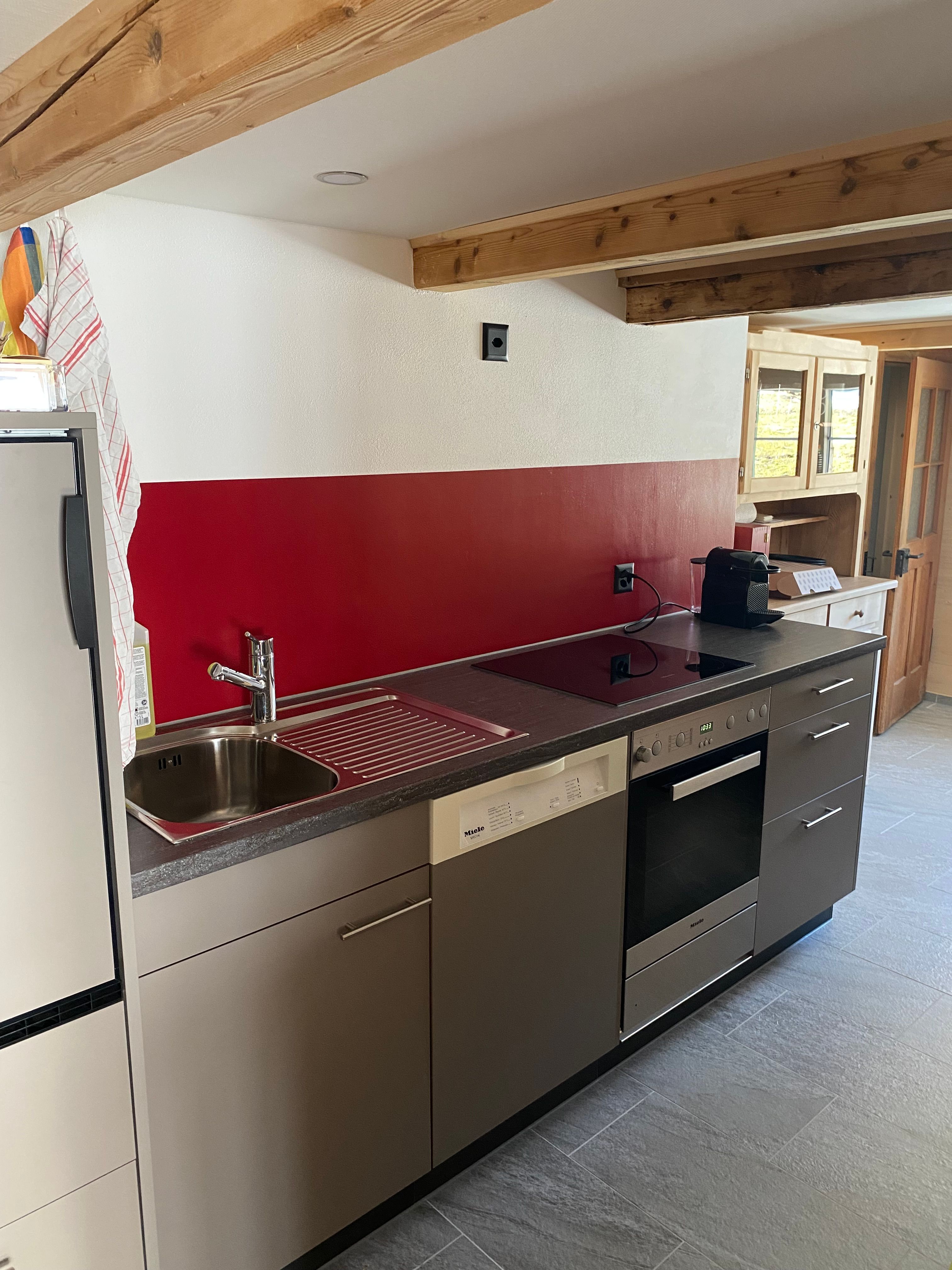 Im Inneren der Wohnung erwarten Sie ein behagliches Wohnzimmer, eine voll ausgestattete Küche, ein komfortables Schlafzimmer und ein modernes Badezimmer mit Dusche. Die Küche lässt keine Wünsche offen und ist mit einem Cerankochfeld, einem Backofen, einem Geschirrspüler, einer Kapsel-Kaffeemaschine, einem Wasserkocher sowie ausreichend Geschirr bestückt. So wird die Selbstverpflegung zum reinen Vergnügen. Zusätzlich sind Geschirrtücher, Lappen, Frottéwäsche und Bettwäsche vorhanden. Ein besonderes Highlight ist der große Sitzofen im Wohnzimmer, der mit Holz befeuert eine wohlige Atmosphäre schafft.