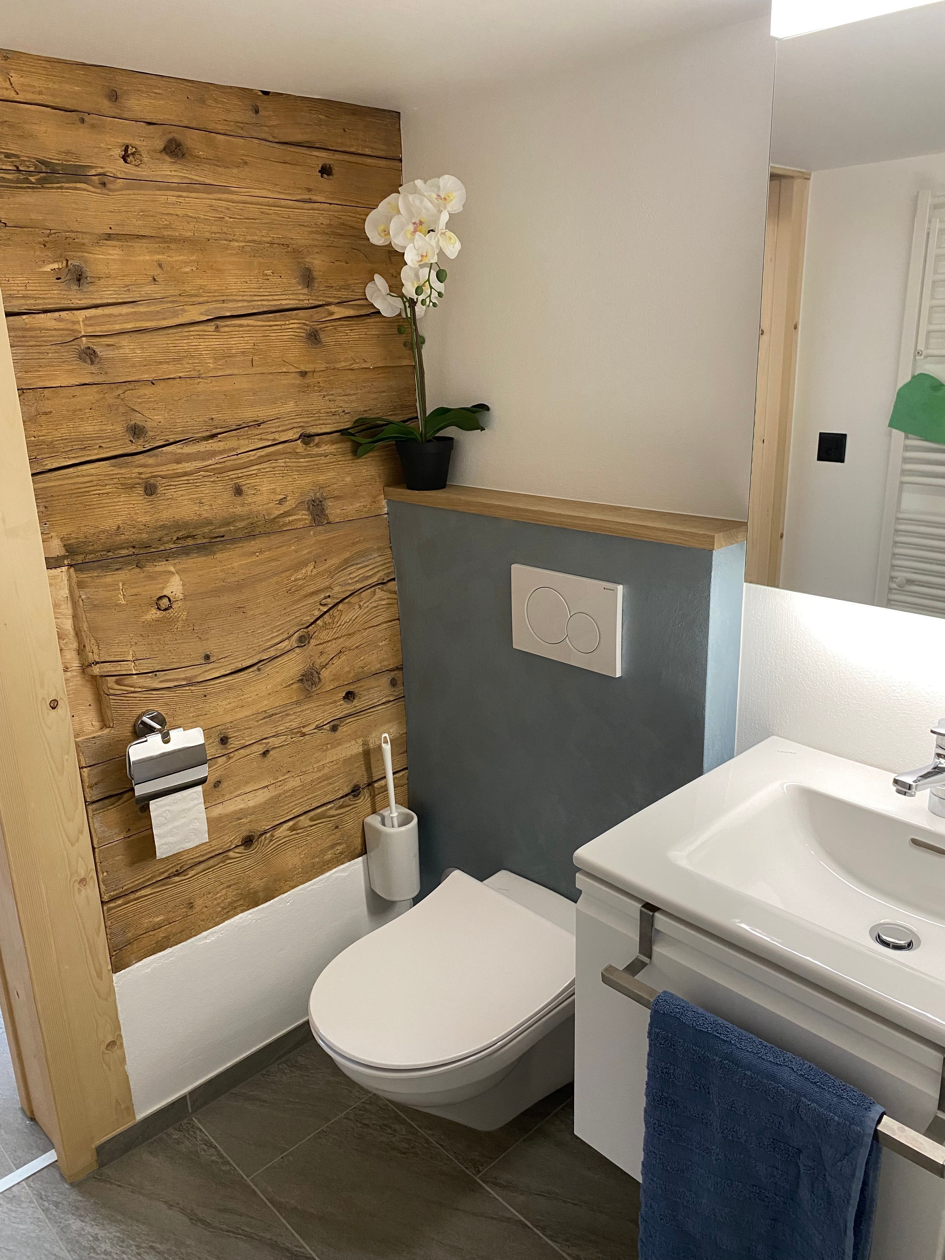 Der Außenbereich der Wohnung verführt mit einer einladenden Terrasse, die zum Entspannen und Genießen der frischen Bergluft einlädt. Dieser Ort bildet die perfekte Kulisse für entspannte Stunden im Freien, sei es bei einem Morgenkaffee oder einem abendlichen Glas Wein unter dem Sternenhimmel.