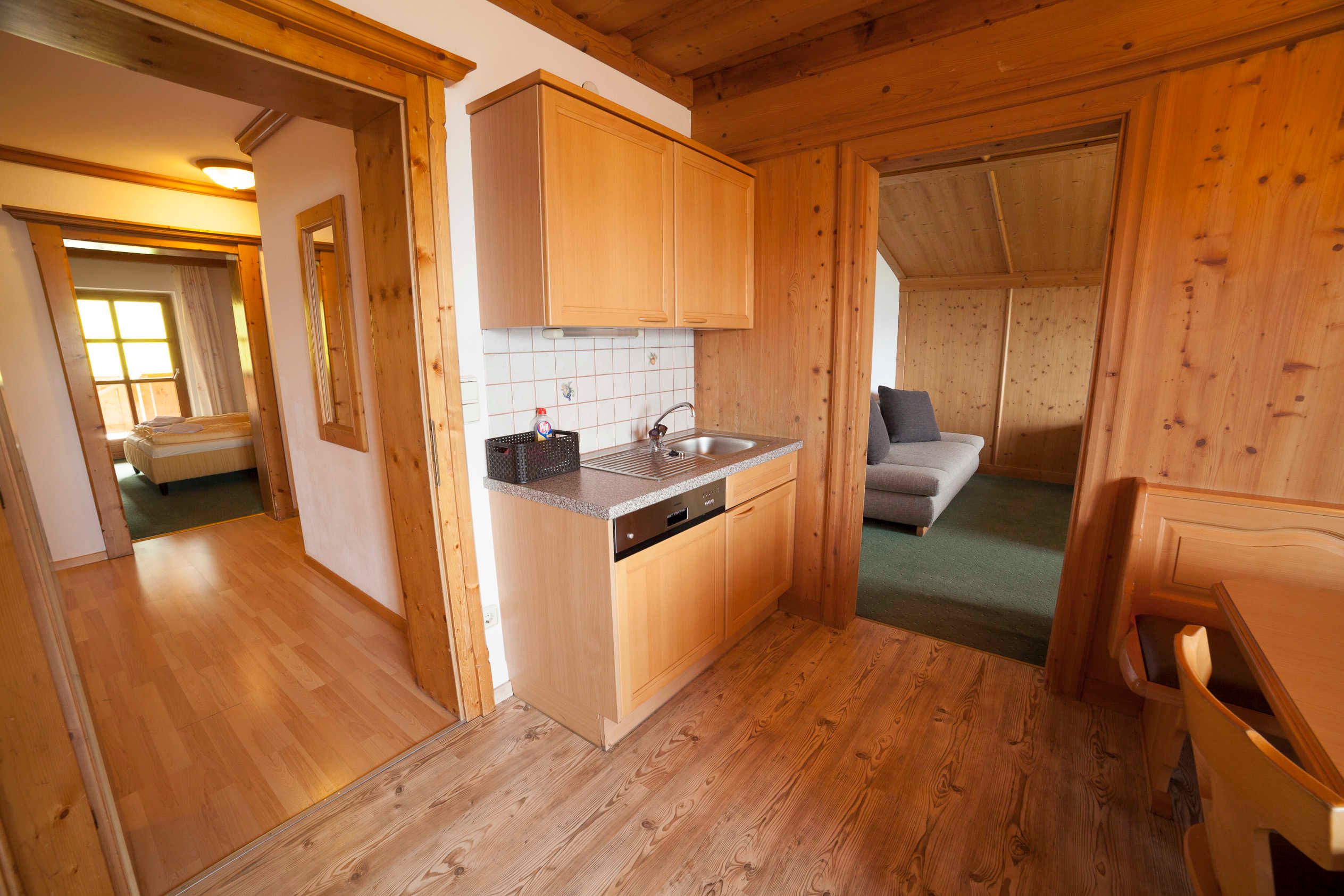 Ein Appartement für 6-8 Personen mit 3 getrennten Schlafzimmern, davon einmal mit 4 Betten und das Zweite mit 2 Betten, ein Schlafzimmer mit Doppelbett hat eine Ausziehcouch.
