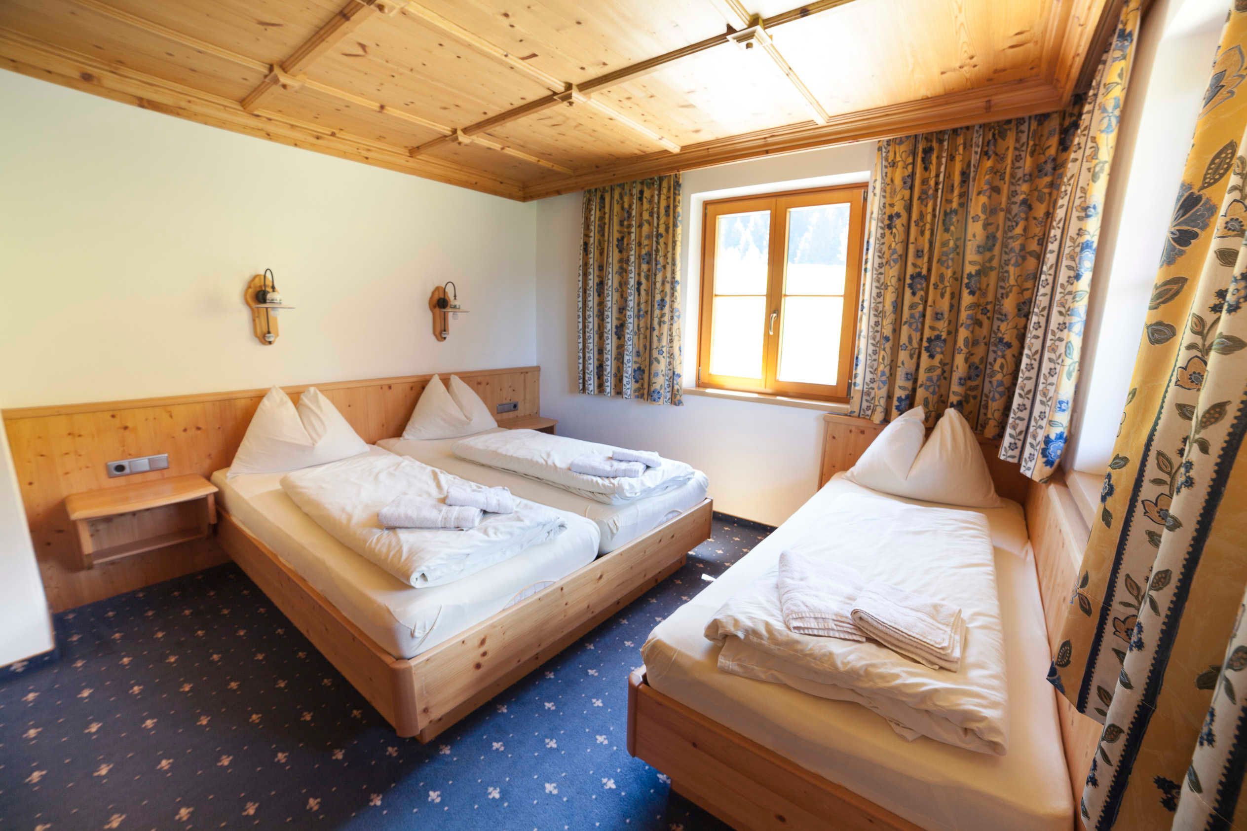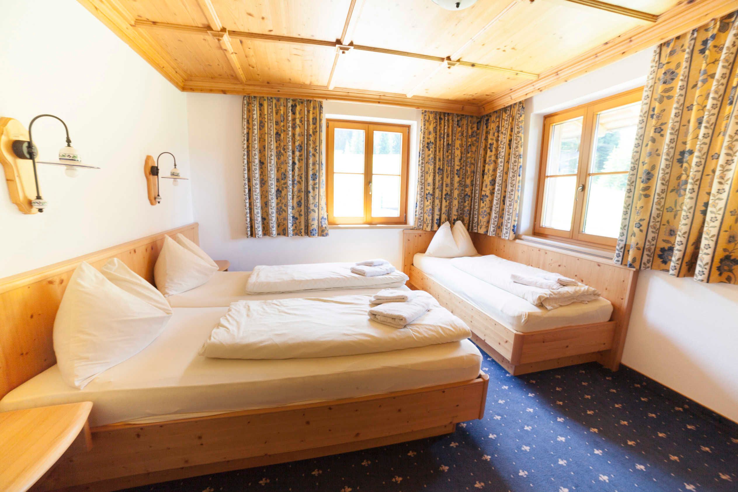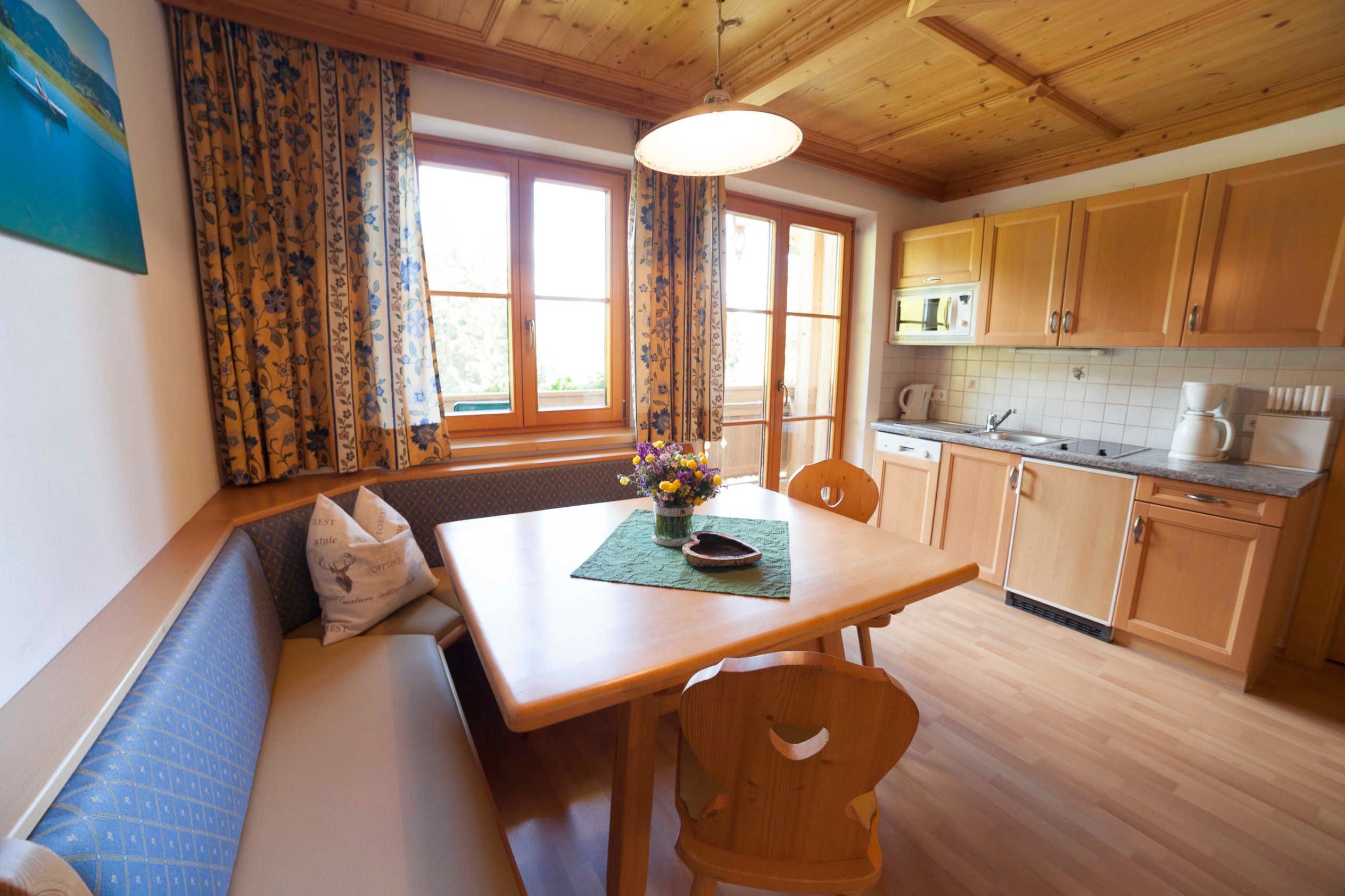 Das Appartement Lackenkogel für 4 bis 7 Personen ist ausgestattet mit 2 getrennten Schlafzimmern, davon eines mit 3 Betten und das andere mit 2 Betten; ein geräumiger Wohnschlafraum mit Doppelausziehcouch und voll ausgestatteter Kochecke.