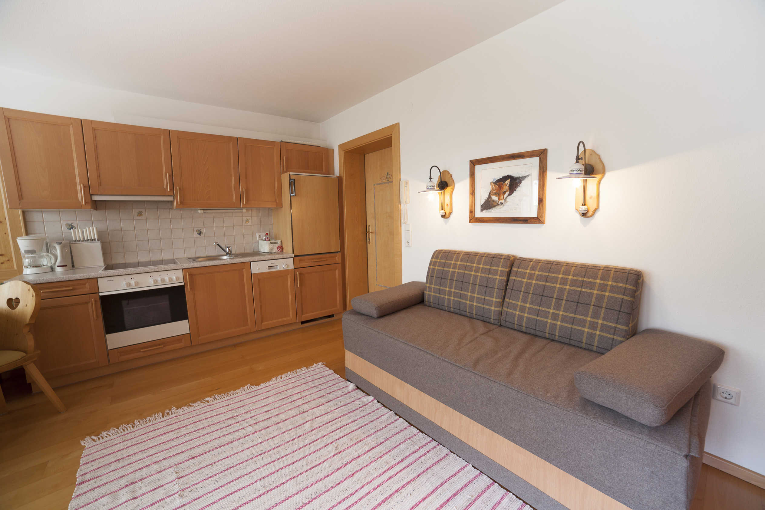 Das Appartement Fuchsbau ist für 2 bis 5 Personen, ausgestattet mit einem 3-bettigem Schlafzimmer, einem Wohnschlafzimmer mit Doppelausziehcouch und voll ausgestatteter Kochecke. Ein Badezimmer mit Dusche, WC. Großer Vorraum. Eine eigene Terrasse steht ihnen zur Verfügung.
