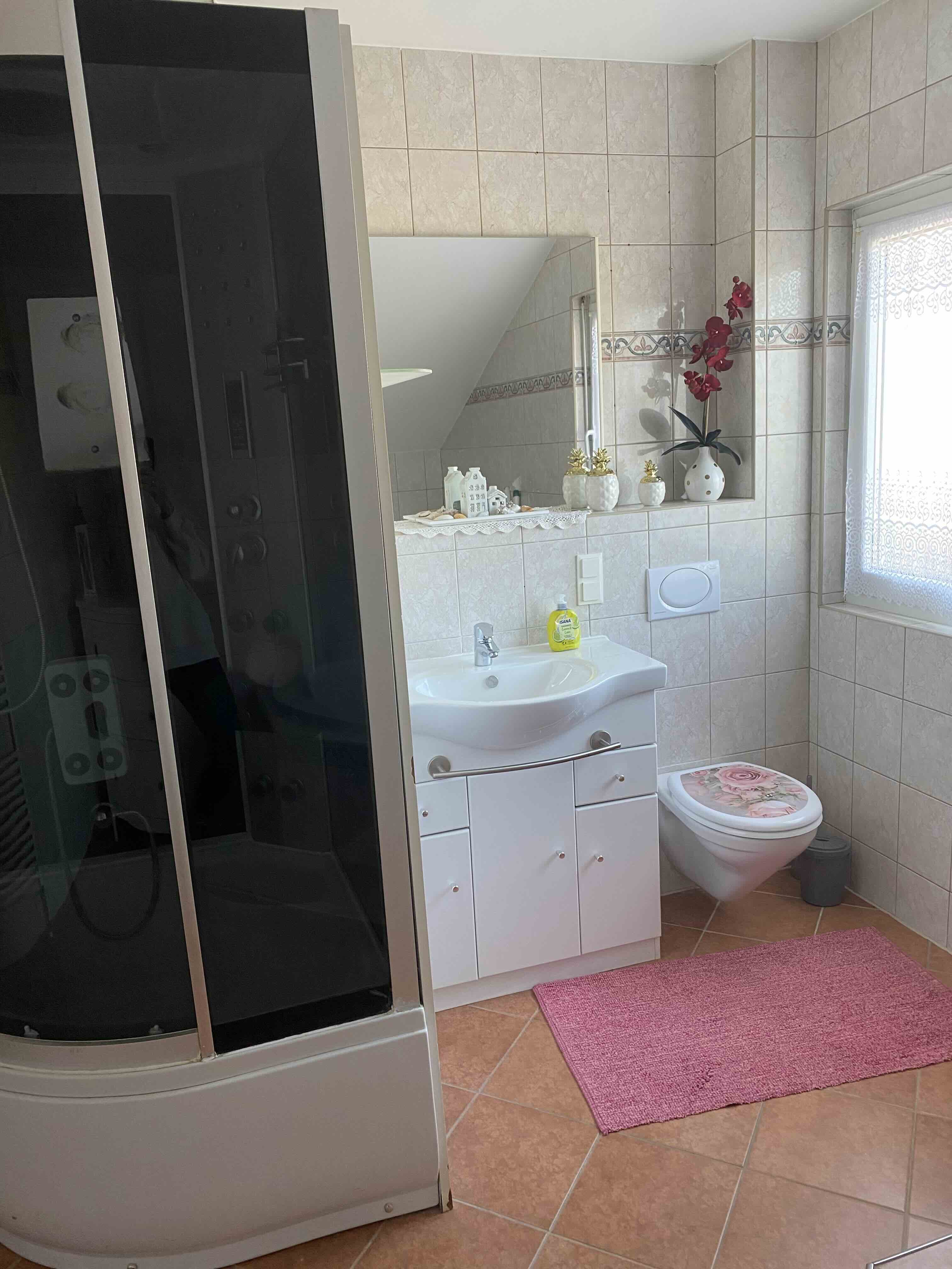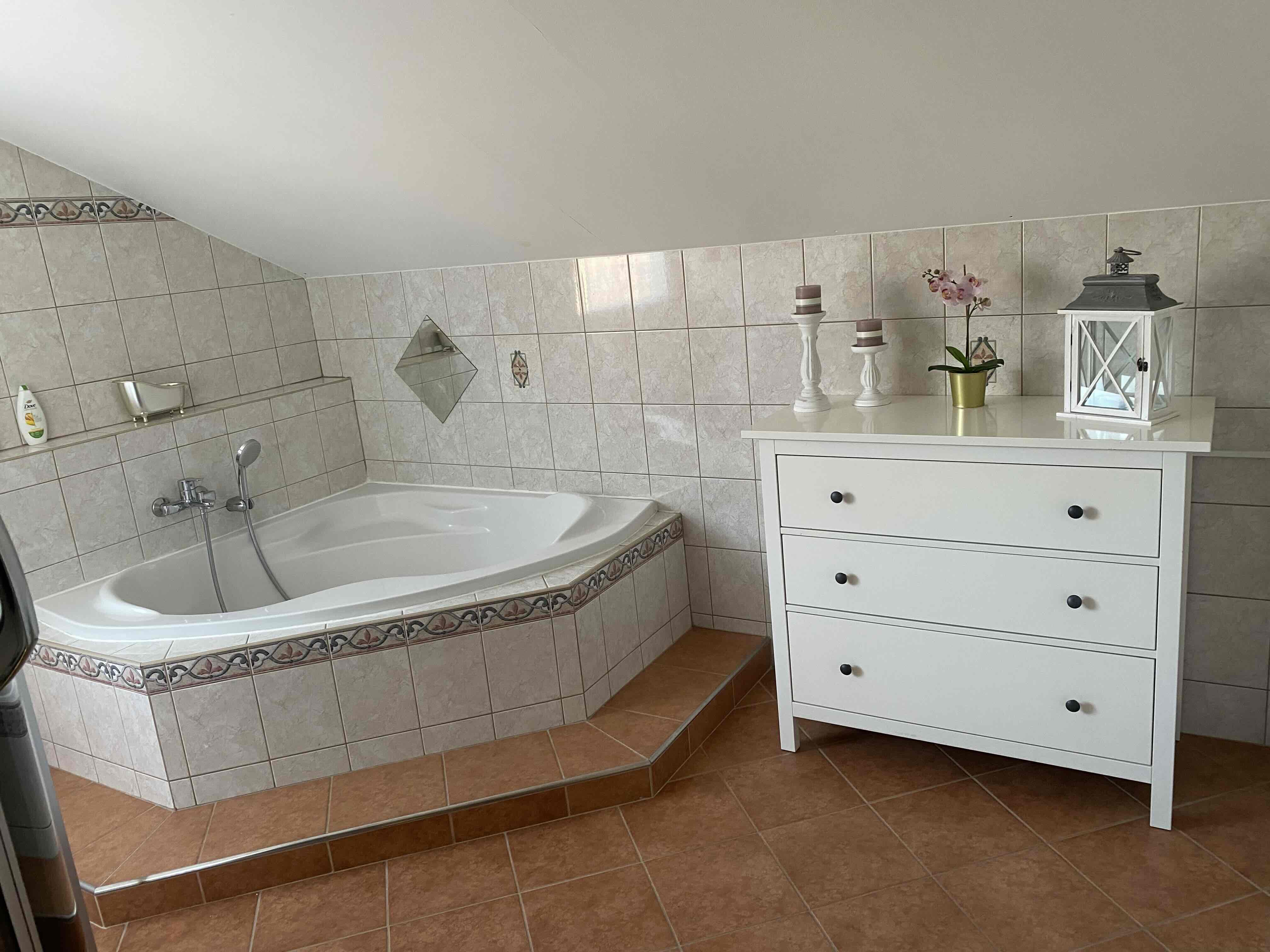 Im geschmackvoll eingerichteten Badezimmer können Sie sich nach einem aktiven Radlausflug entspannen. Genießen Sie ein erholsames Bad in der großen Badewanne oder nutzen Sie die praktische Dusche.