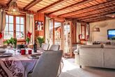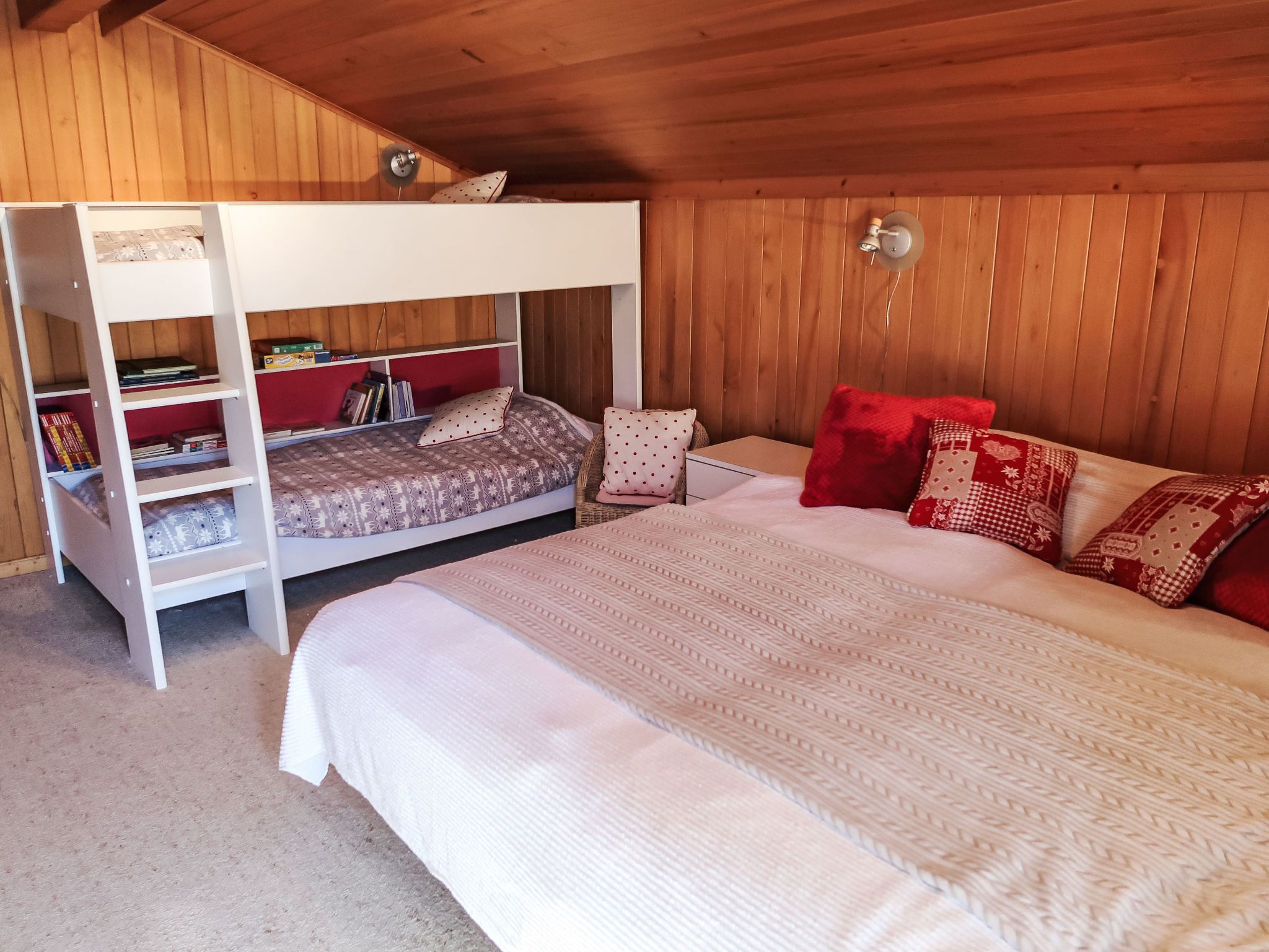 Chalet Tiptop, 4-Zimmer-Wohnung auf 2 Stockwerken, Südwestlage. Objekt geeignet für 6 Erwachsene + 2 Kinder. Komfortabel und geschmackvoll eingerichtet: Wohn-/Esszimmer mit offenem Kamin und Kabel-TV. Ausgang zum Balkon, Richtung Südwesten und Richtung Südosten. Küche (Backofen, Geschirrspüler, 4 Glaskeramikplatten, Tiefkühler, elektrische Kaffeemaschine, Kapseln für die Kaffeemaschine (Nespresso) extra, Racletteofen, Fondue Set (Käse)) mit Esstisch. Dusche/WC. E-Heizung. Obergeschoss: 1 Zimmer mit 1 Doppelbett (160 cm, Länge 200 cm). Ausgang zum Balkon. 1 Zimmer mit 1 Doppelbett (160 cm, Länge 200 cm). 1 Zimmer mit 2 Betten (90 cm, Länge 200 cm), 1 x 2 Etagenbetten (90 cm, Länge 190 cm). Ausgang zum Balkon. Bad/WC. 2 Balkone. Balkonmöbel, Liegestühle (2). Schöne Sicht auf die Berge, die Landschaft und die Ortschaft. Zur Verfügung: Haartrockner. Internet (Wireless LAN, gratis). Parkplatz (2 Autos), Garage beim Haus. Bitte beachten: Nichtraucher-Unterkunft.