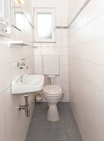 Im Anbau befinden sich Waschmaschine, Wäscheständer, Kinderhochstuhl, Staubsauger, Bügeleisen mit Brett sowie Ausstattung für Kleinkinder wie Töpfchen und Tritthocker.