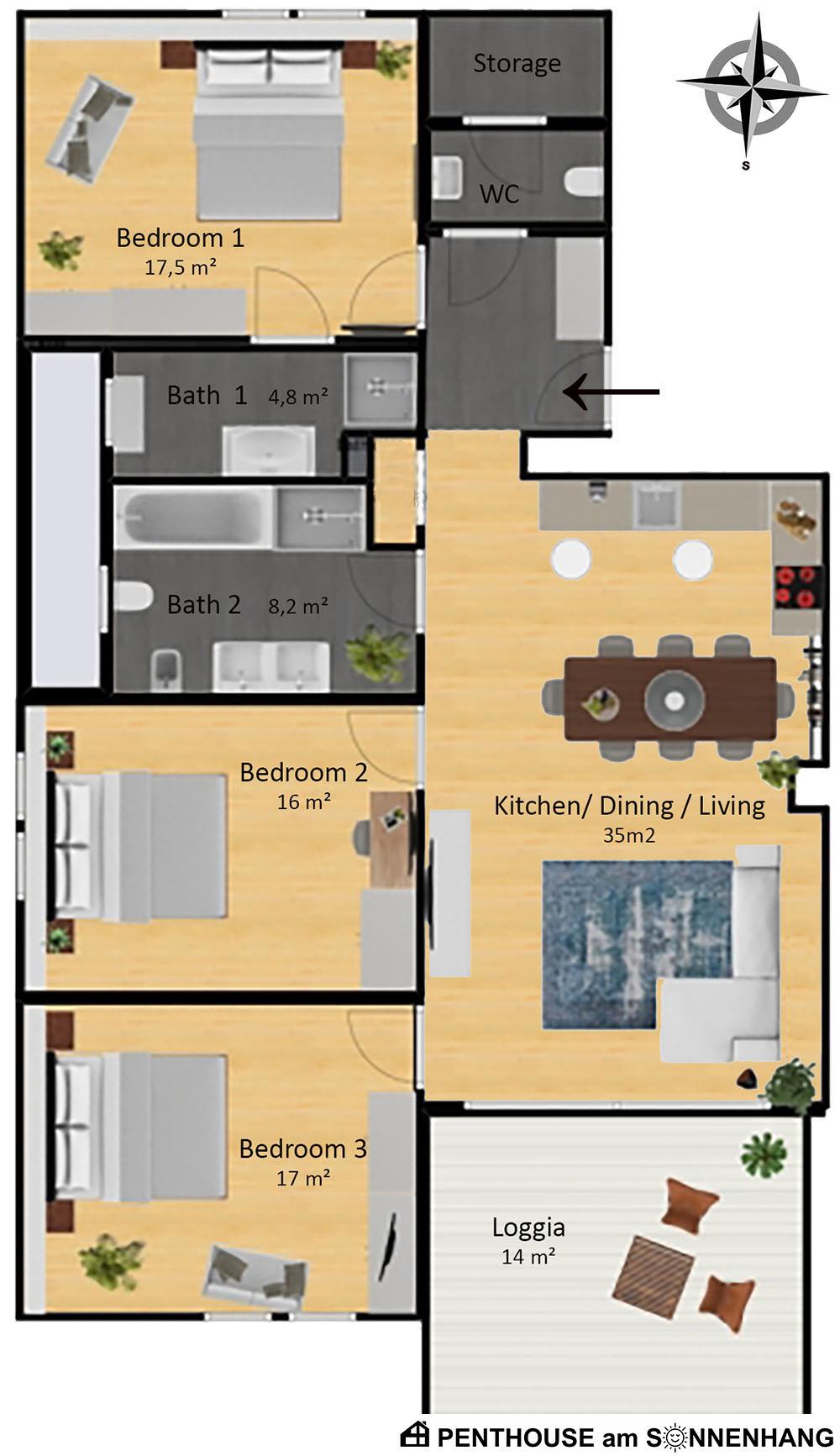 - 3 getrennte Schlafzimmer