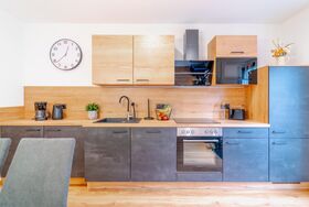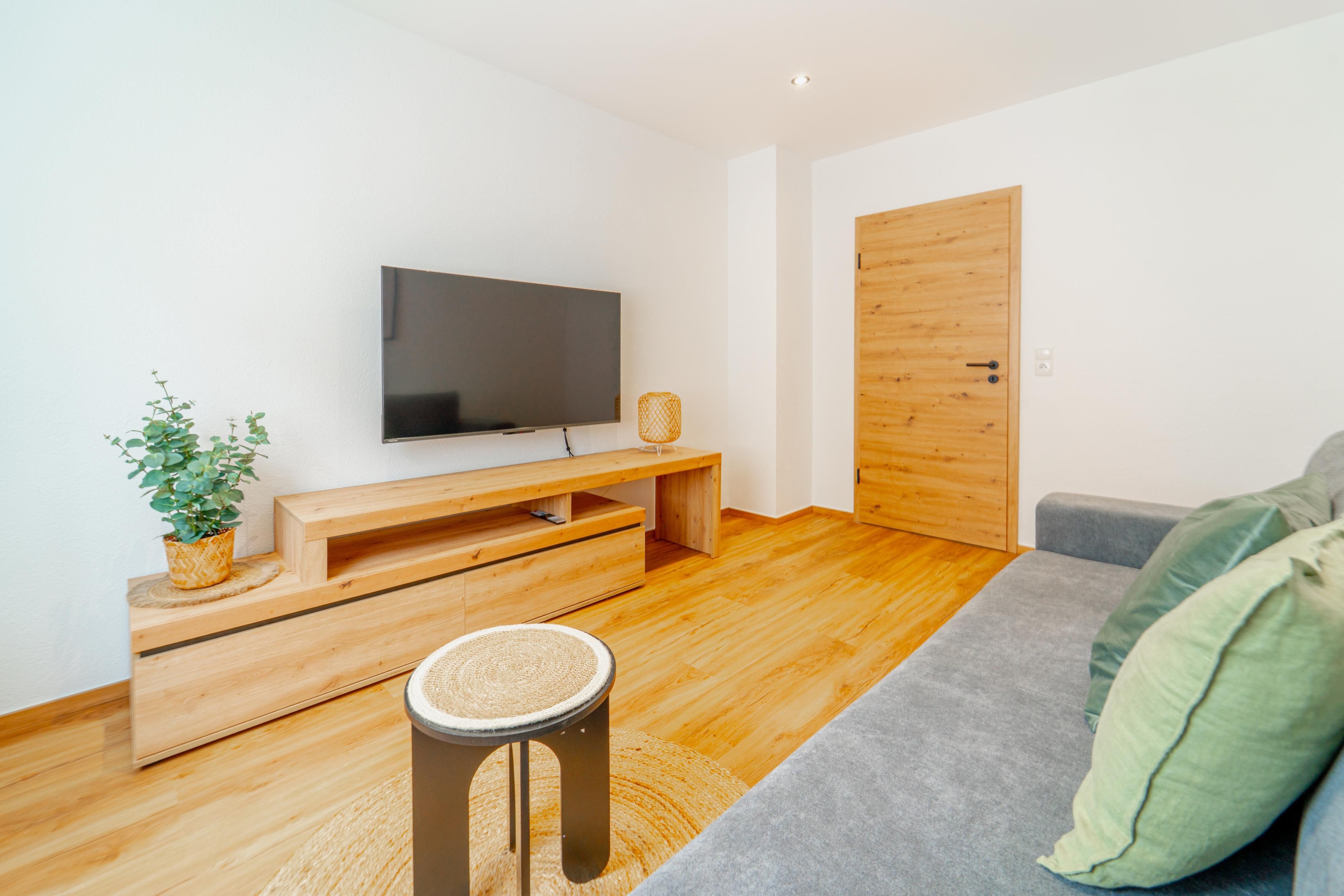 Das Appartement Max mit ca. 70 m² besteht aus: 2 Schlafzimmern mit Doppelbett; 1 Wohnzimmer mit ausziehbarem Sofa (Schlafmöglichkeit für 5. Person); 1 vollausgestatteten Küche mit Cerankochfeld, Backrohr, Kühlschrank, Spülmaschine, Kaffeemaschine, Toaster uvm.; 1 Badezimmer mit Dusche; 1 separates WC;