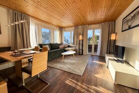 Geräumiges Wohn- und Esszimmer mit grosser Schlafcouch (für 2 Personen)