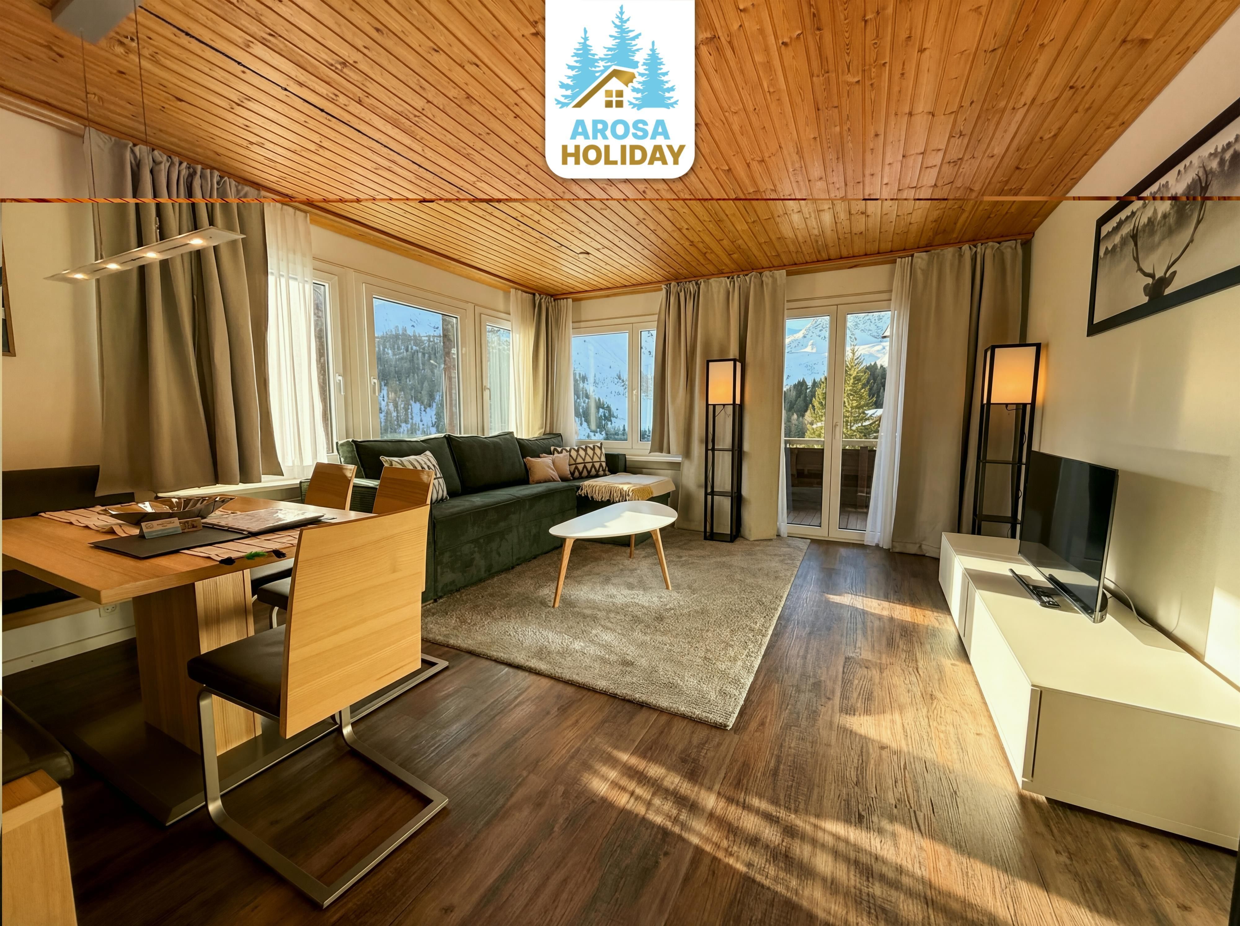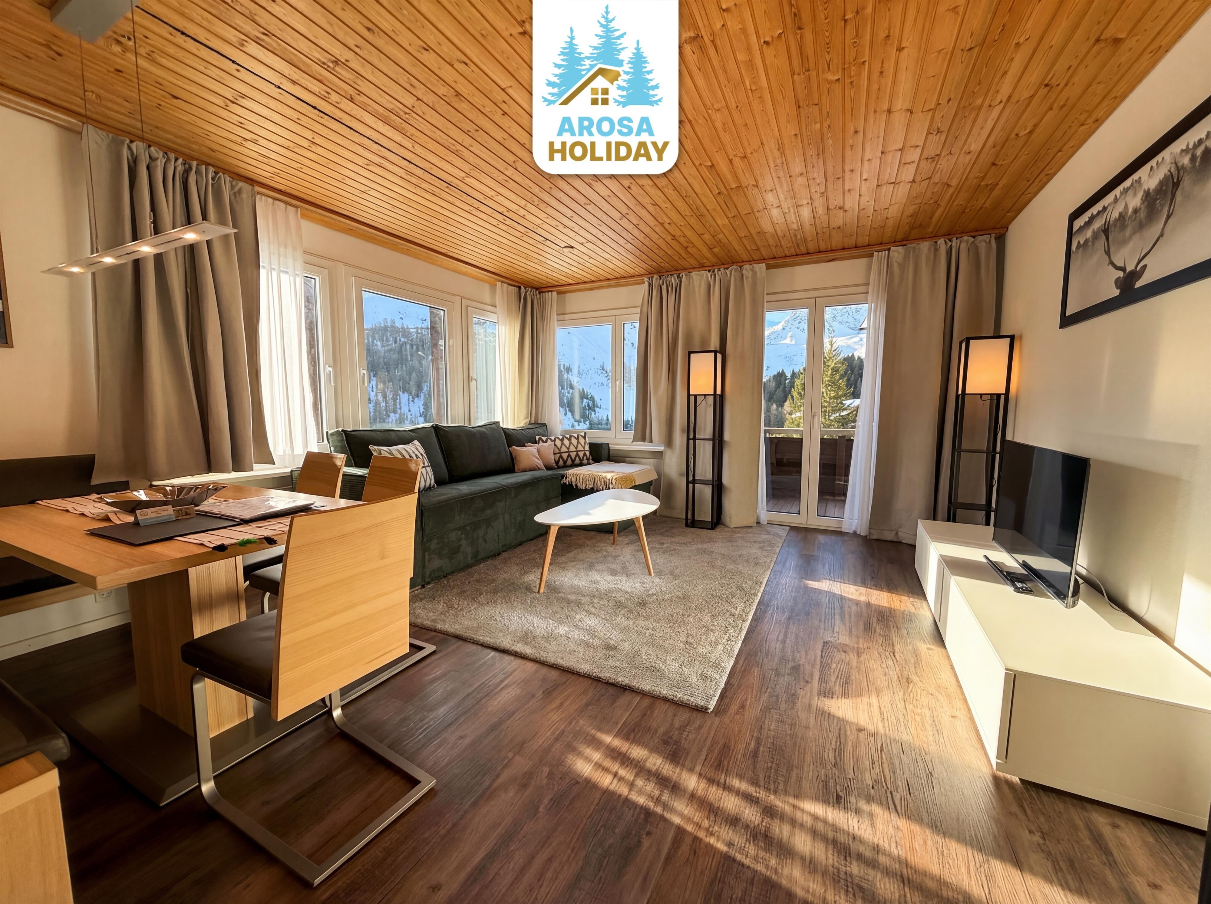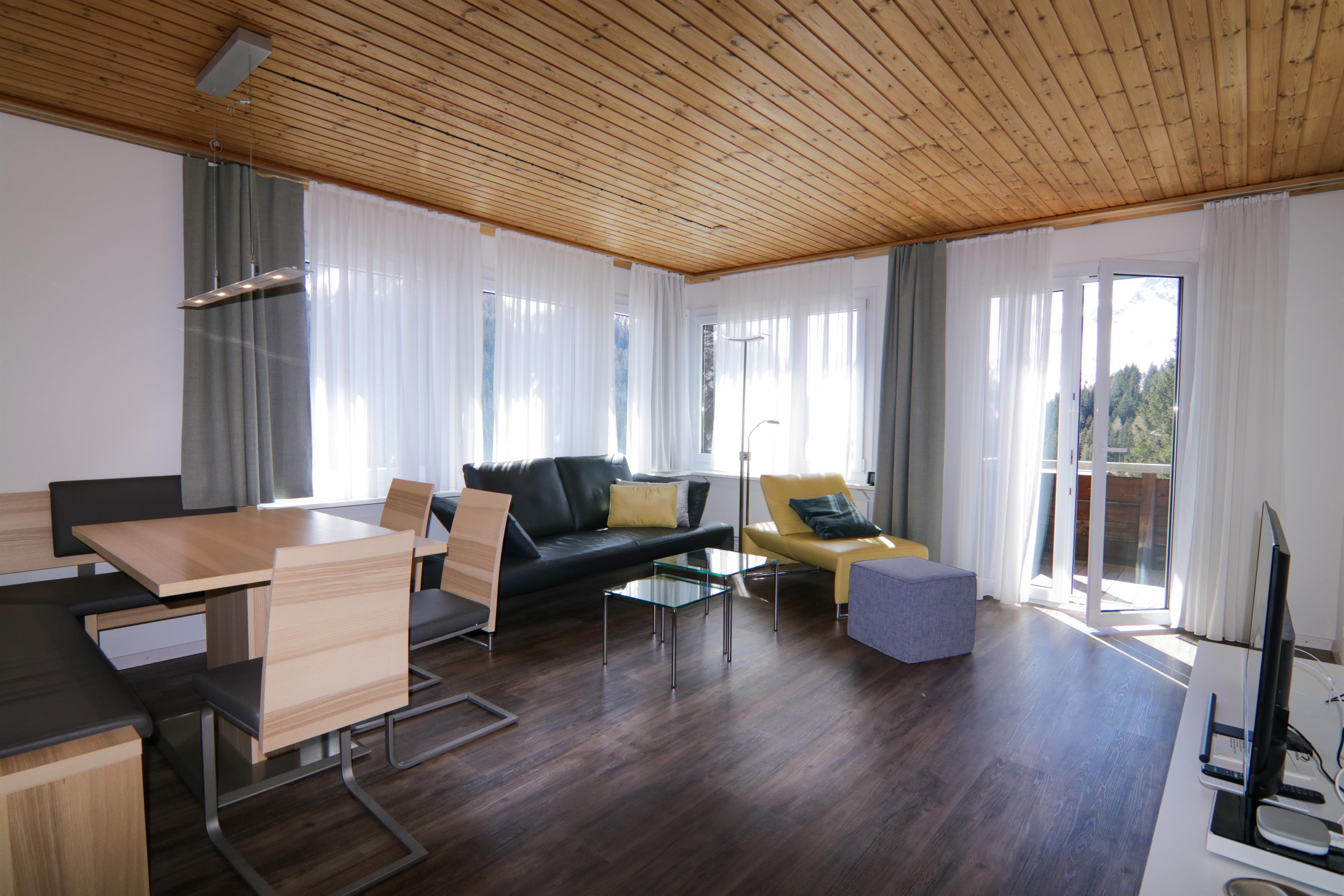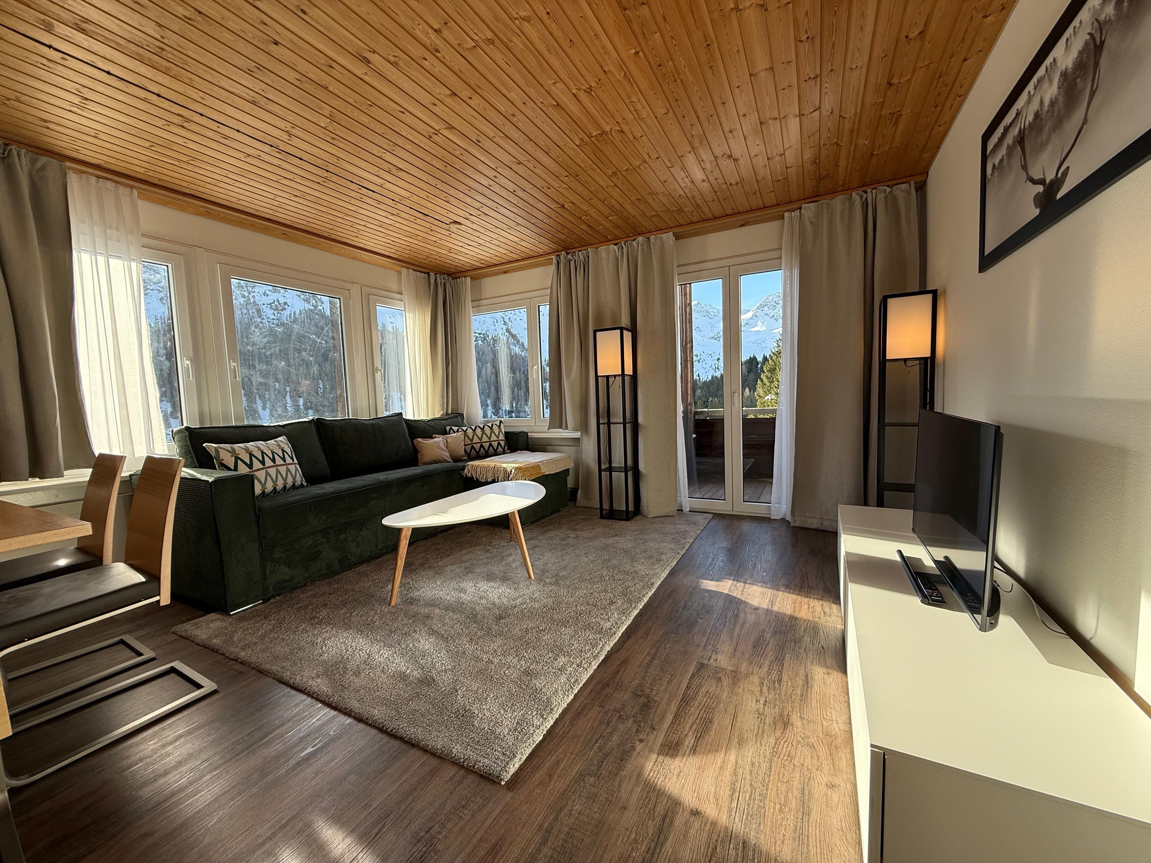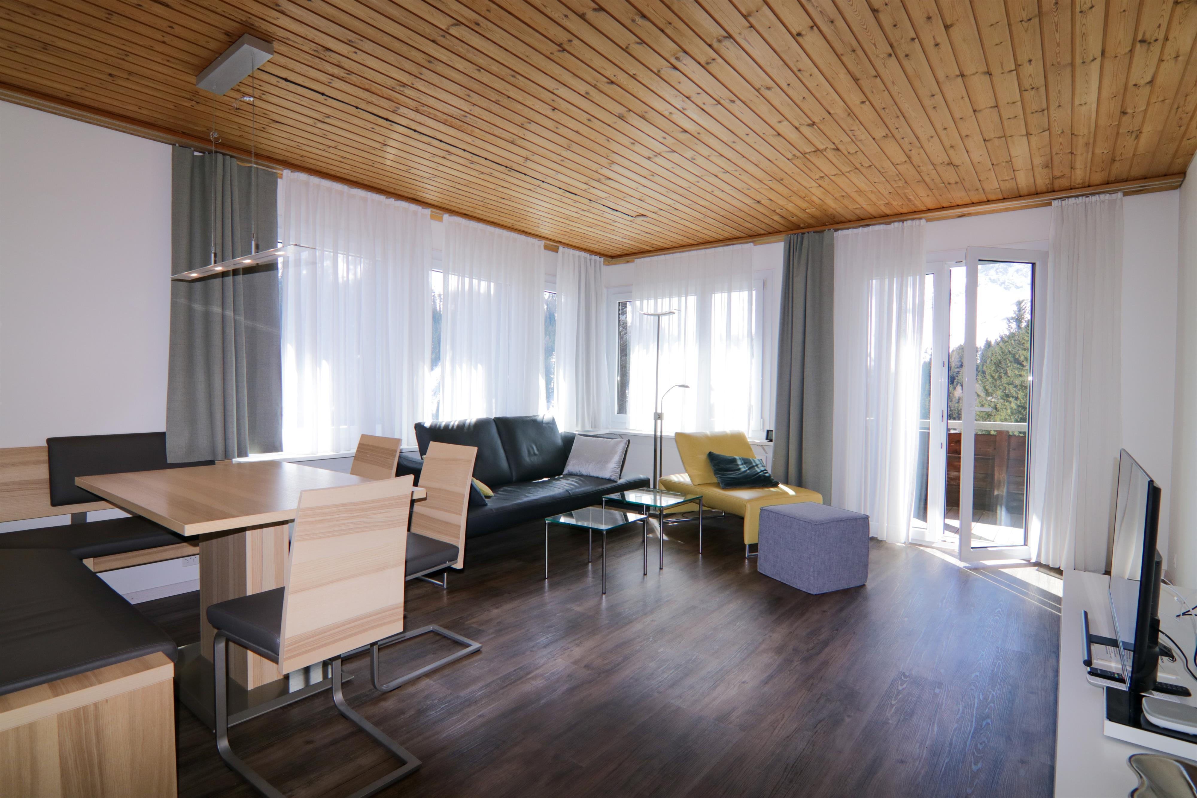Die geräumige und helle 3.5-Zimmer-Wohnung befindet sich auf der 1 Etage des Haus Miraflor ohne Lift, welches zentral an der Poststrasse liegt und nur wenige Meter von der nächsten Bushaltestelle entfernt ist. Geniesst den spektakulären Bergblick vom Balkon aus!