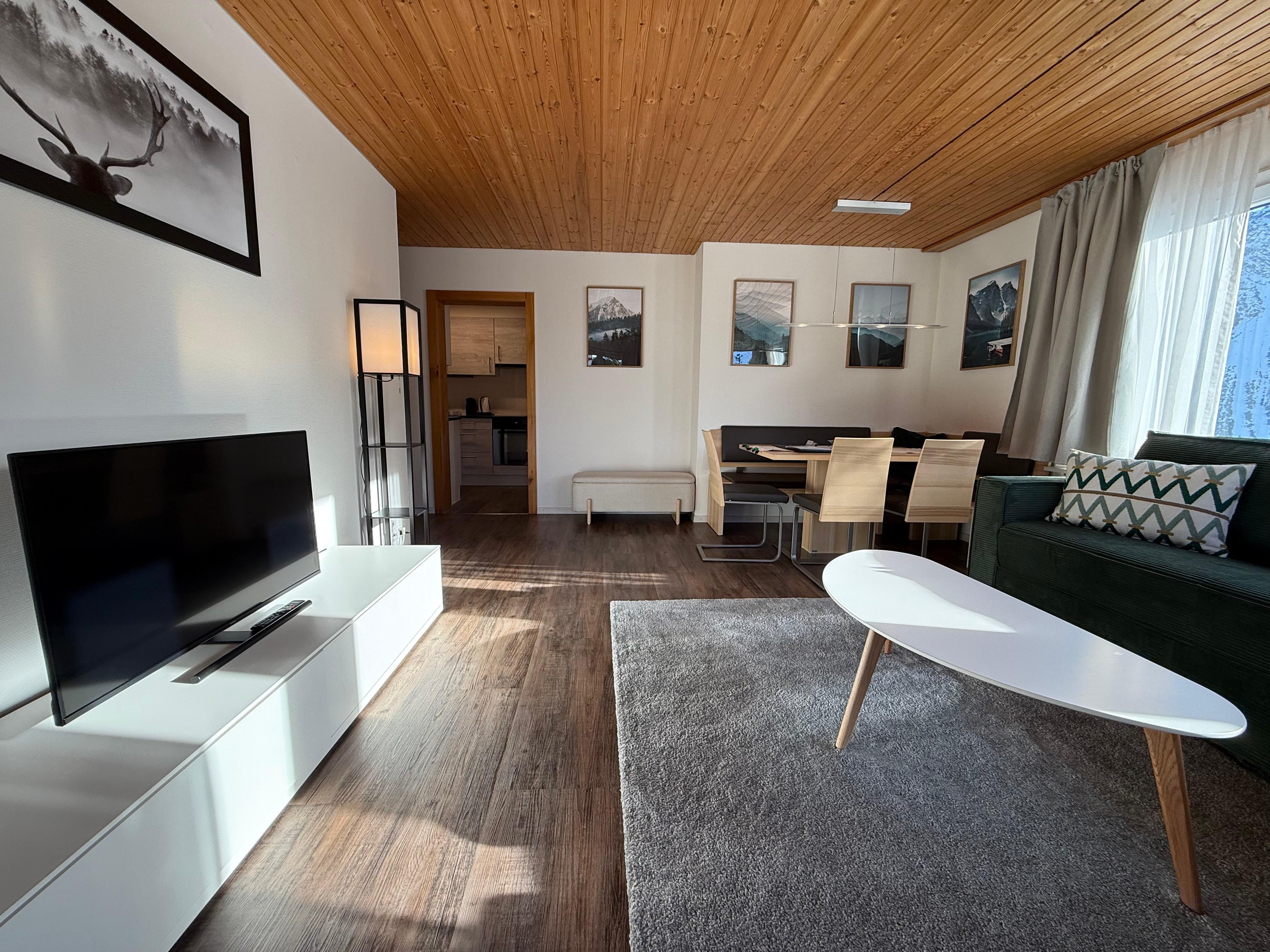 Geräumiges Wohn- und Esszimmer mit einer Schlafcouch für 2 Personen (140 x 190cm)