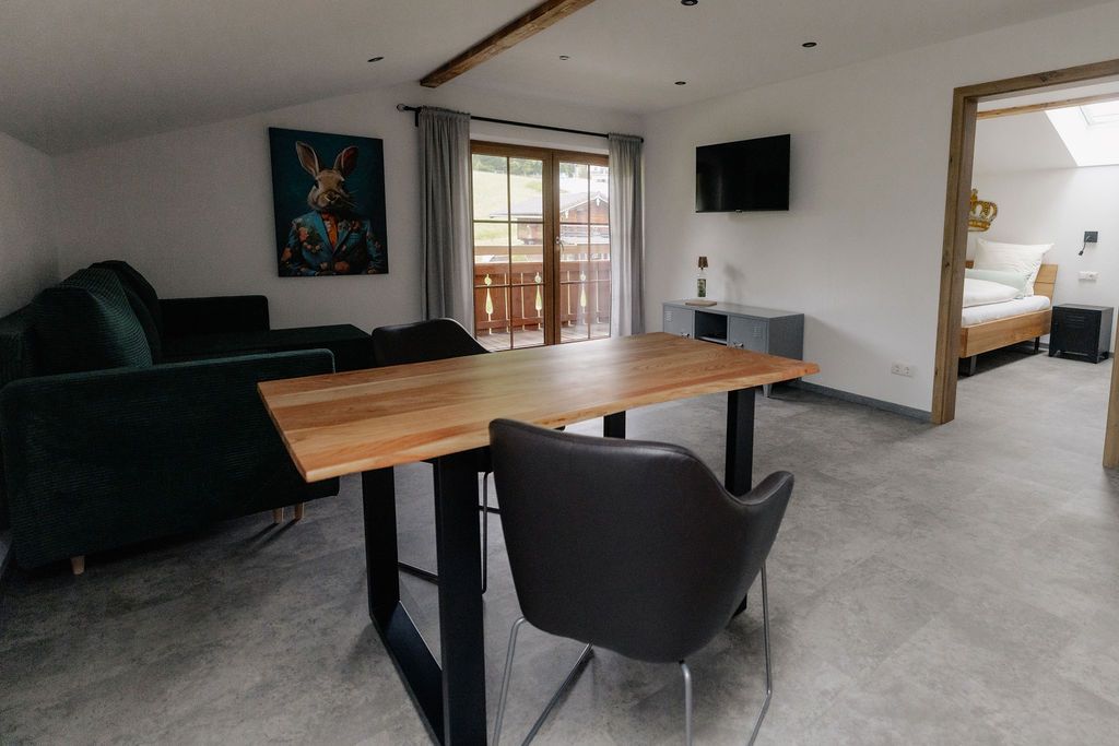 Unsere liebevoll kernsanierte Ferienwohnung im zweiten Stock eines traditionellen Bauernhauses bietet den idealen Rückzugsort für Naturfreunde und Erholungssuchende. Auf Sie warten eine großzügige Wohnessküche, zwei separate Schlafzimmer sowie ein modernes Badezimmer mit Dusche und WC – perfekt für Paare, Familien oder Freunde. WLAN und TV stehen selbstverständlich zur Verfügung.