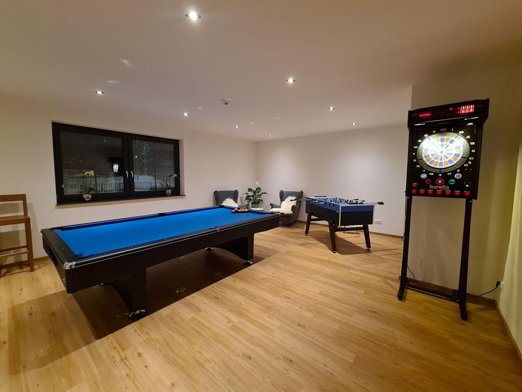 Unsere Angebote: Pool, Sauna, Billard- u. Kickerraum, Fitnessraum.