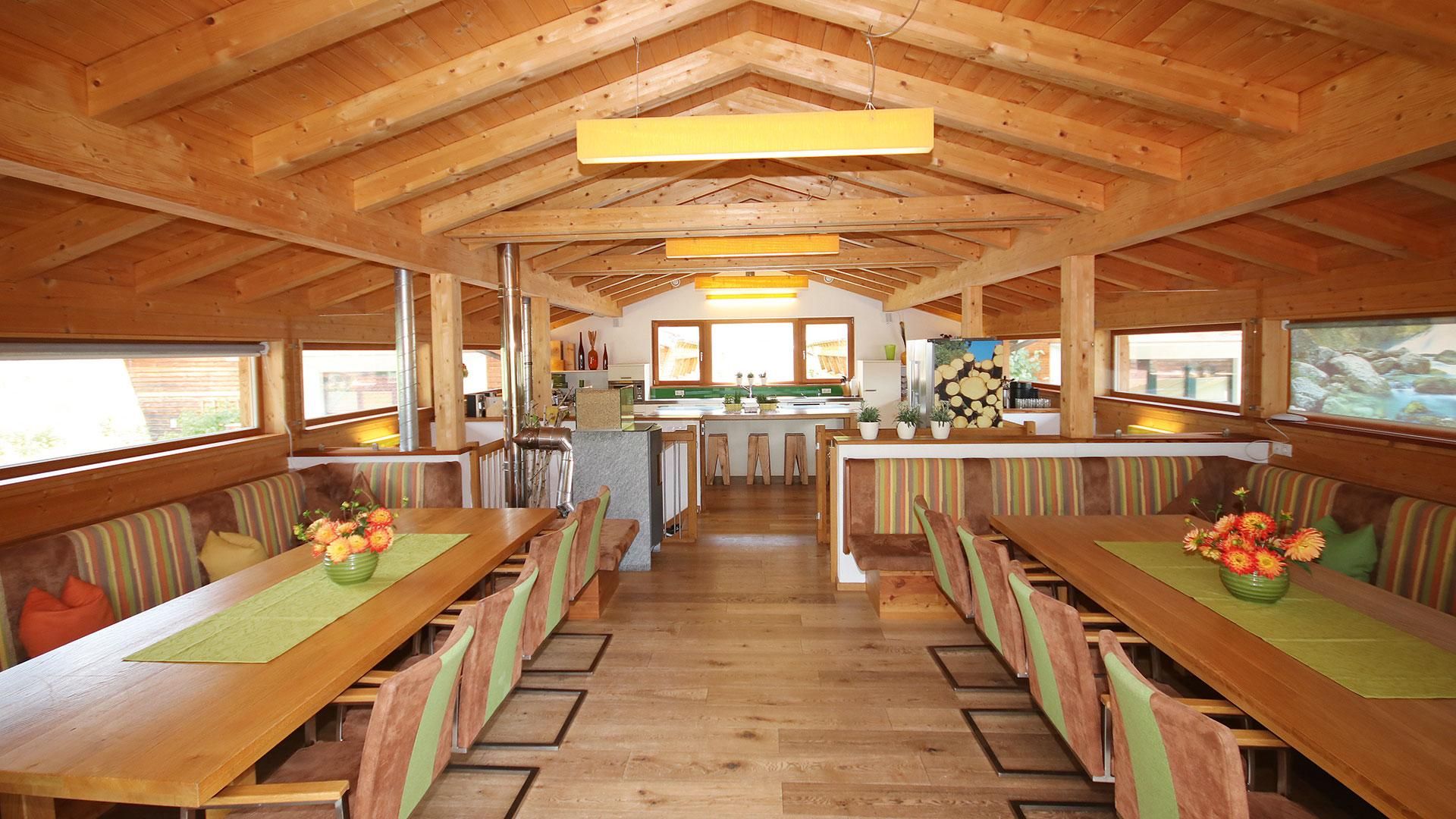 220m2, Alpin Loft mit Küche, Alpin Atrium, 4 Schlafnester mit Dusche/WC, Sonnenraum mit Sauna und Doppelbett. Basismietpreis bei Belegung bis 12 Personen, Maximalbelegung 18 Personen mit Extrazimmer bis 24 Personen. Die Küche ist großzügig mit Porzellan, Gläsern und Besteck für 24 Personen ausgestattet. Hobbyköche finden alles gängigen Küchengeräte und eine breite Palette an Pfannen und Töpfen.