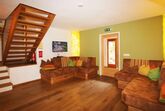 Geplant und ausgestattet für Cliquen von 12 bis 24 Personen, räumlich und preislich ideal fuer 3 bis 4 Familien mit Kindern, für 4 bis 6 befreundete Paare, für 12 bis 18 bunt gemischte Freunde. Mit dem Charme und der Gemütlichkeit einer Hütte und dem Komfort eines modernen großen Ferienhauses. 220 m2 ganz für euch. Mit privater Sauna, eigener großer Terrasse und Grillplatz.