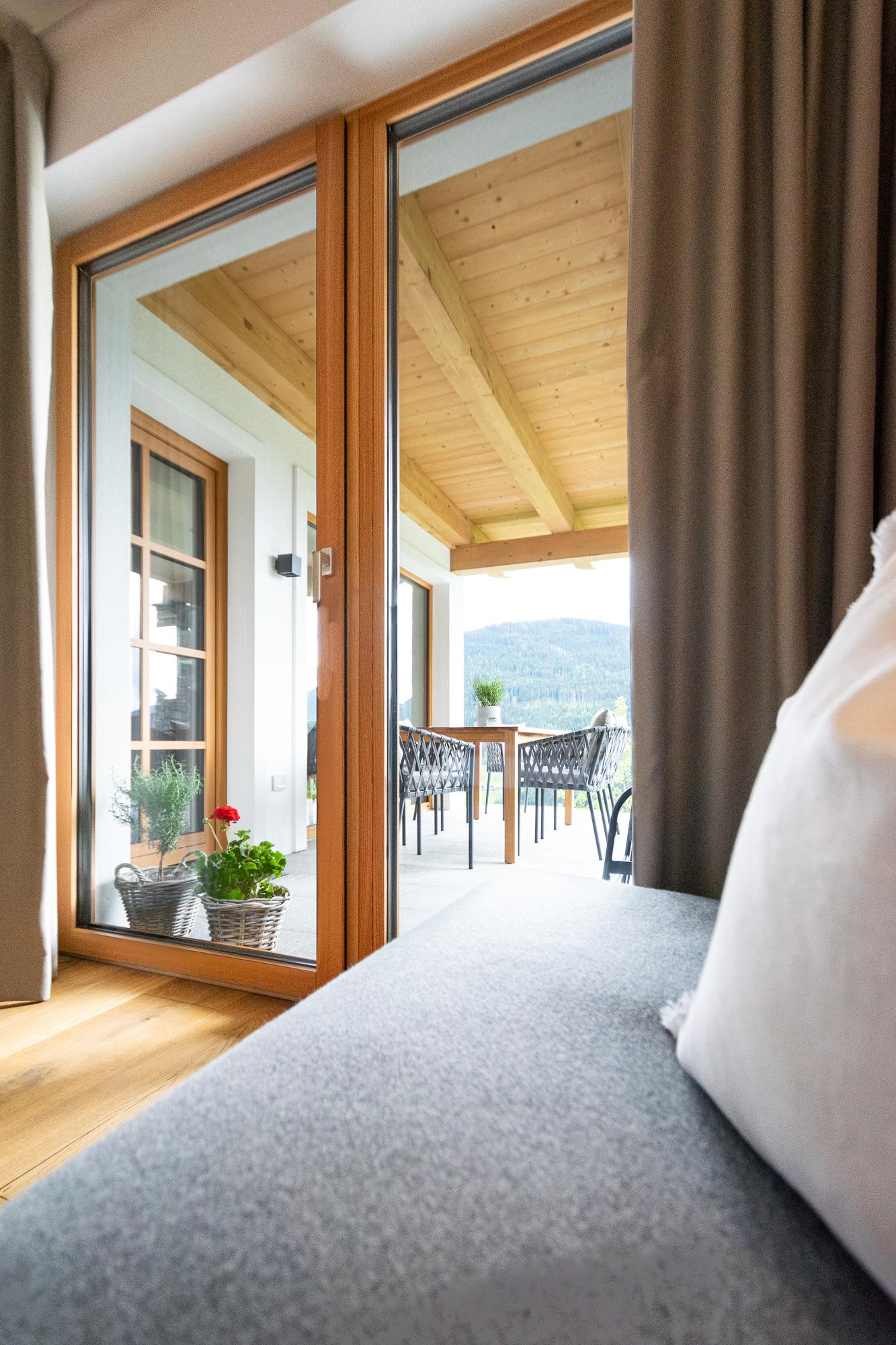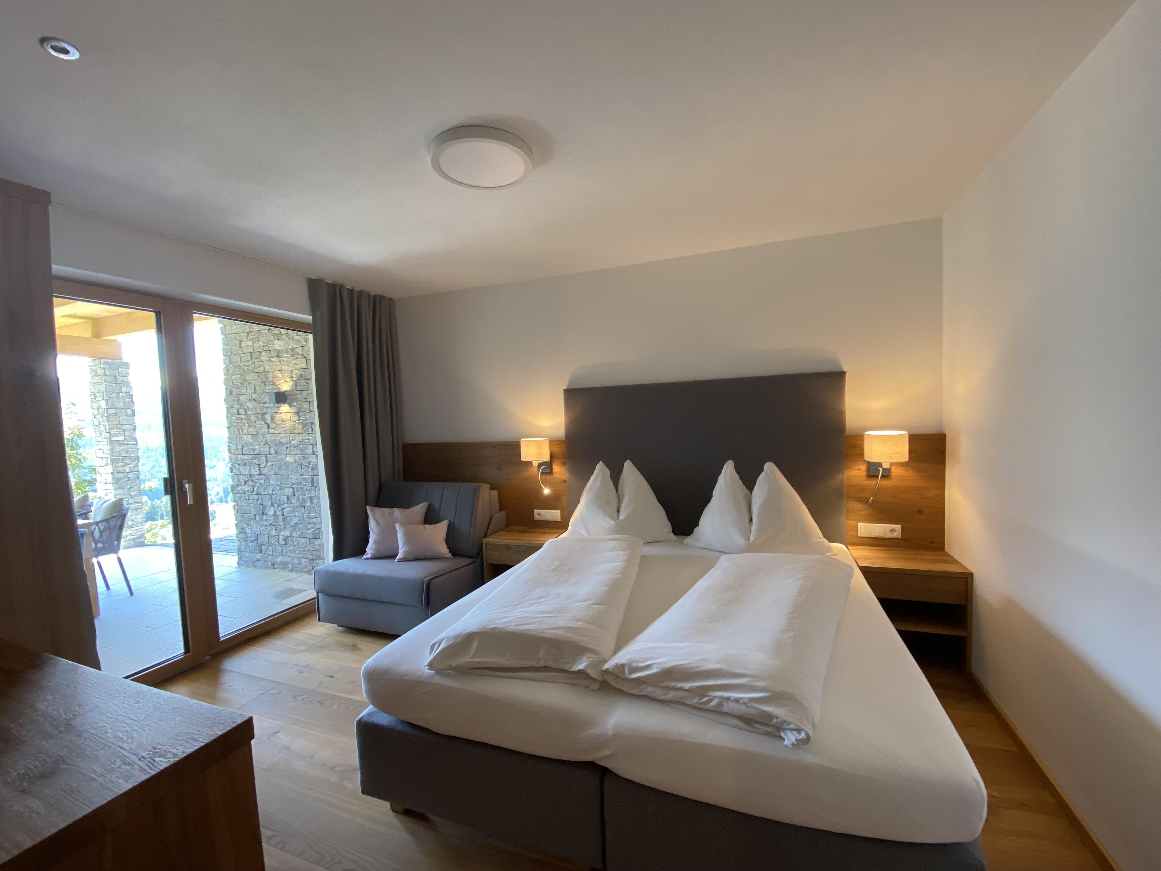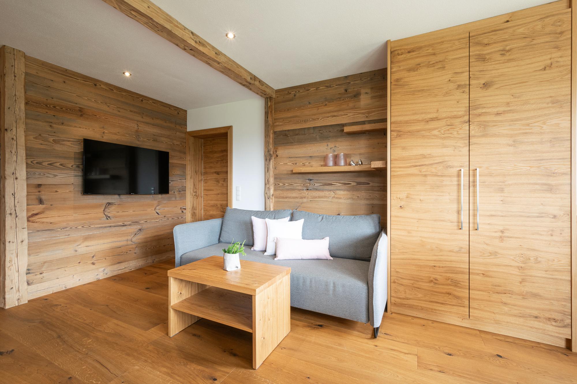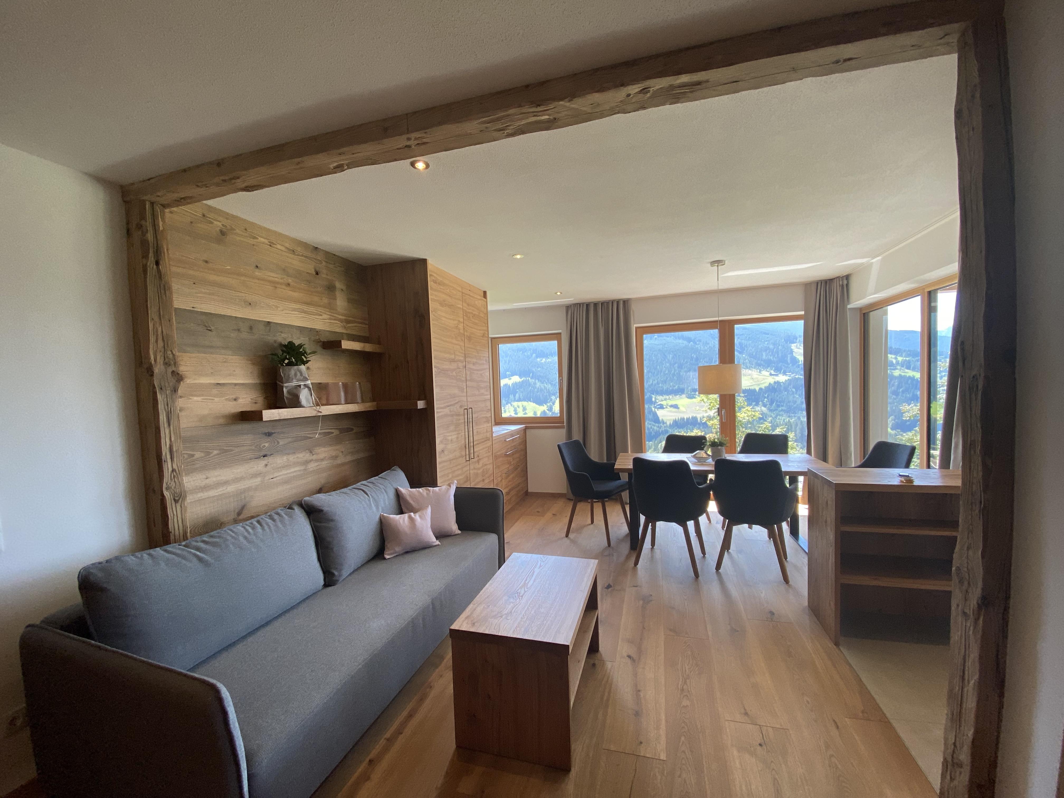 Unser großzügiges Appartement Josef im Nebenhaus des Untersüßguts bietet Platz für 1 bis 6 Personen und überzeugt mit viel Raum zum Wohlfühlen – eigene Sonnenterasse, inklusive privater Zirbensauna und Infrarotkabine für entspannte Stunden.