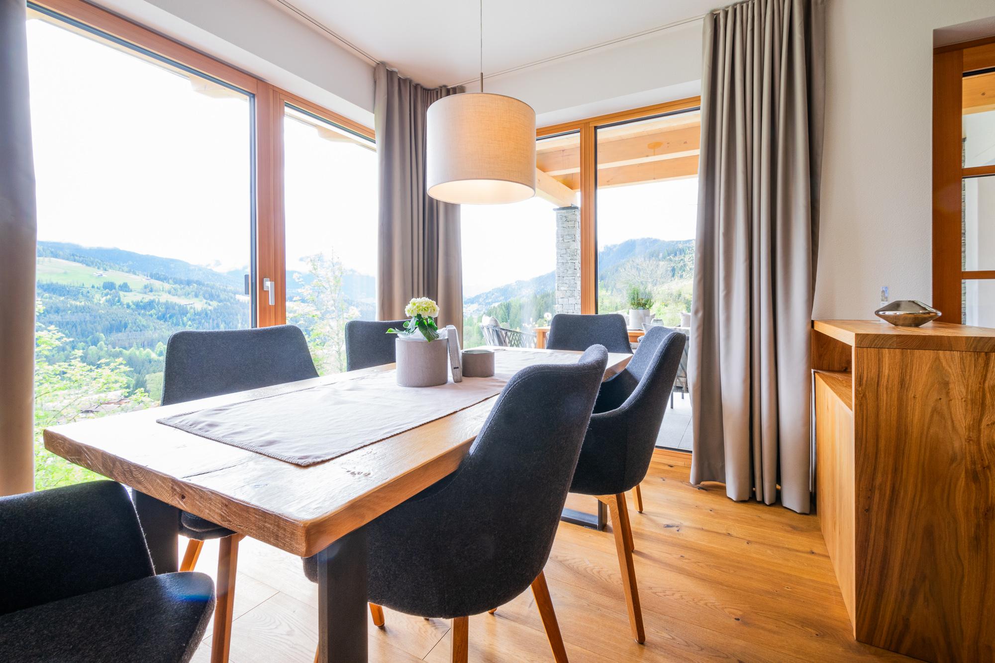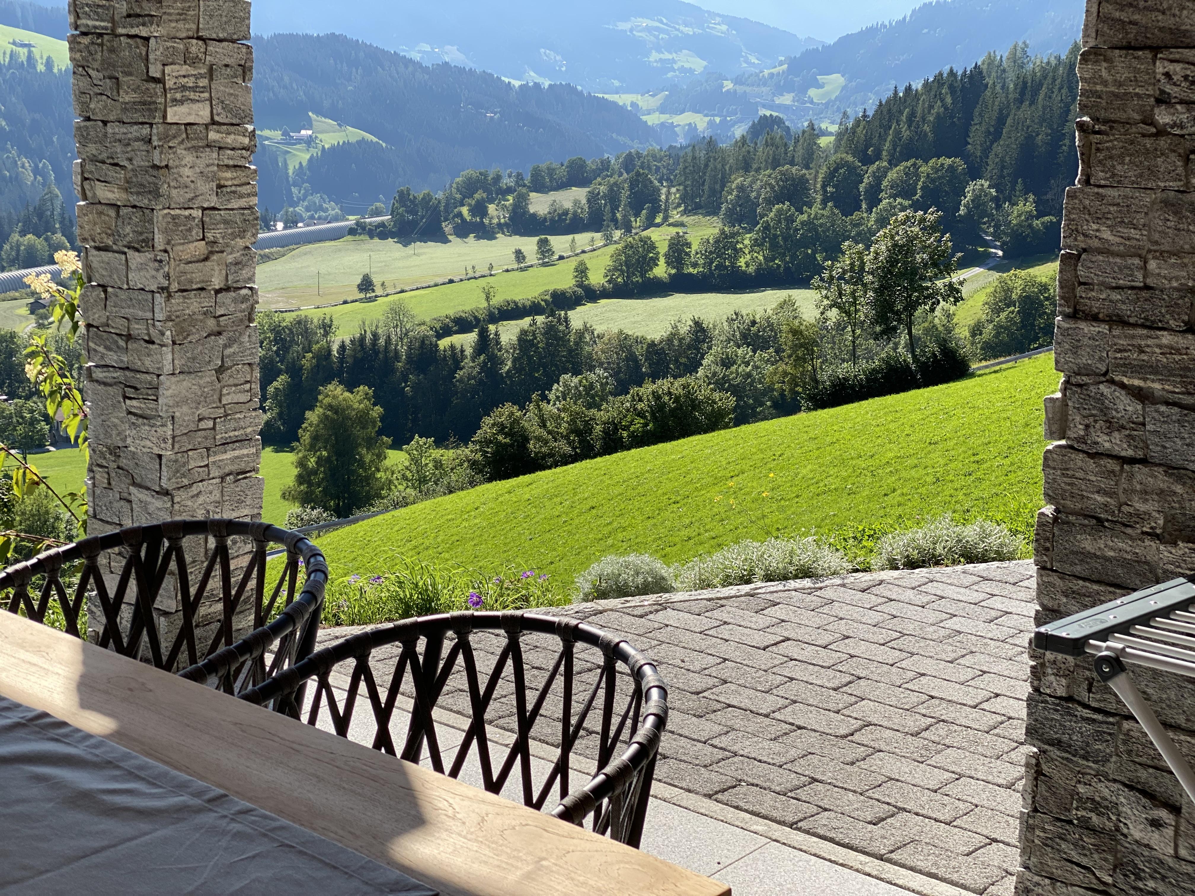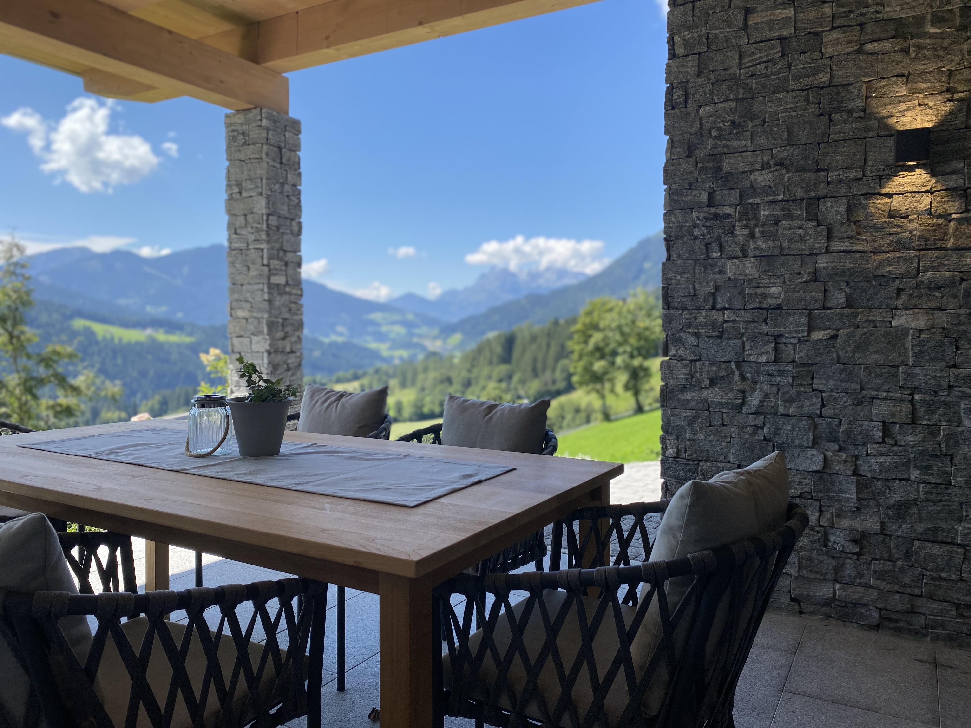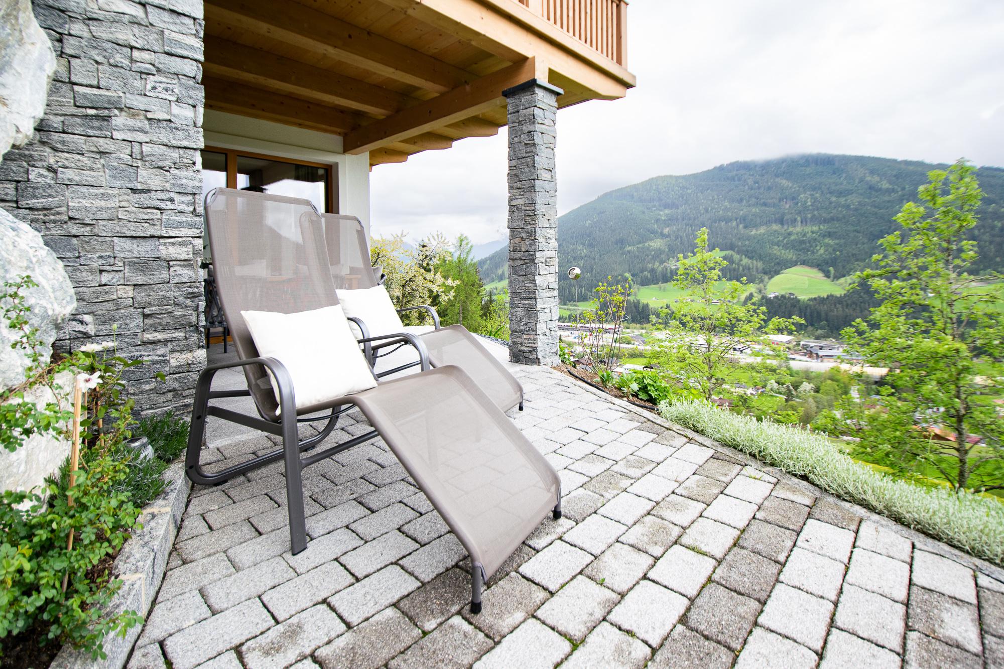 Nach einem aktiven Tag wartet Ihre private Terrasse mit einem einmaligen Blick auf den Hochkönig auf Sie. Machen Sie es sich gemütlich und genießen Sie die letzten Sonnenstrahlen des Tages – ein Sonnenuntergang zum Träumen.